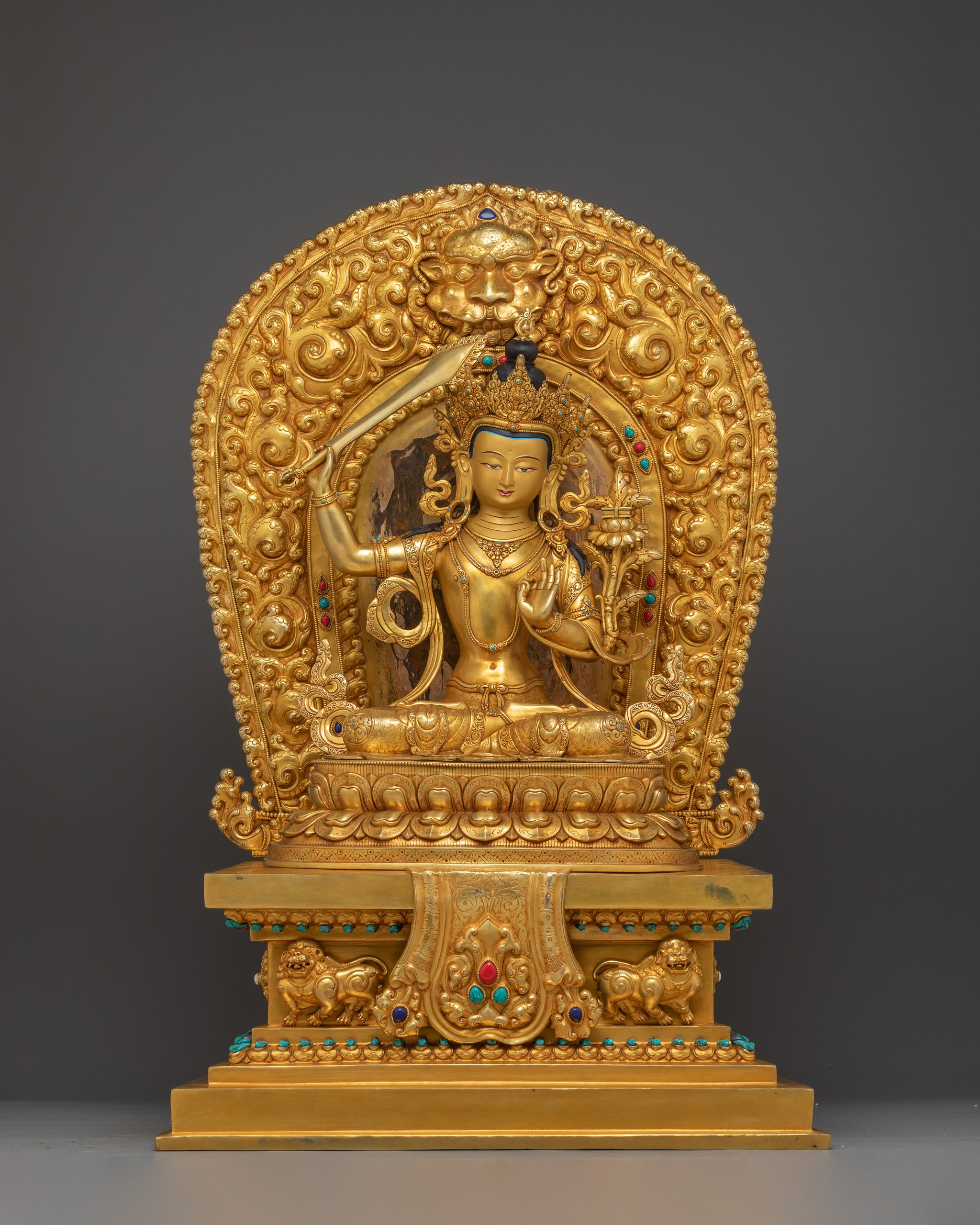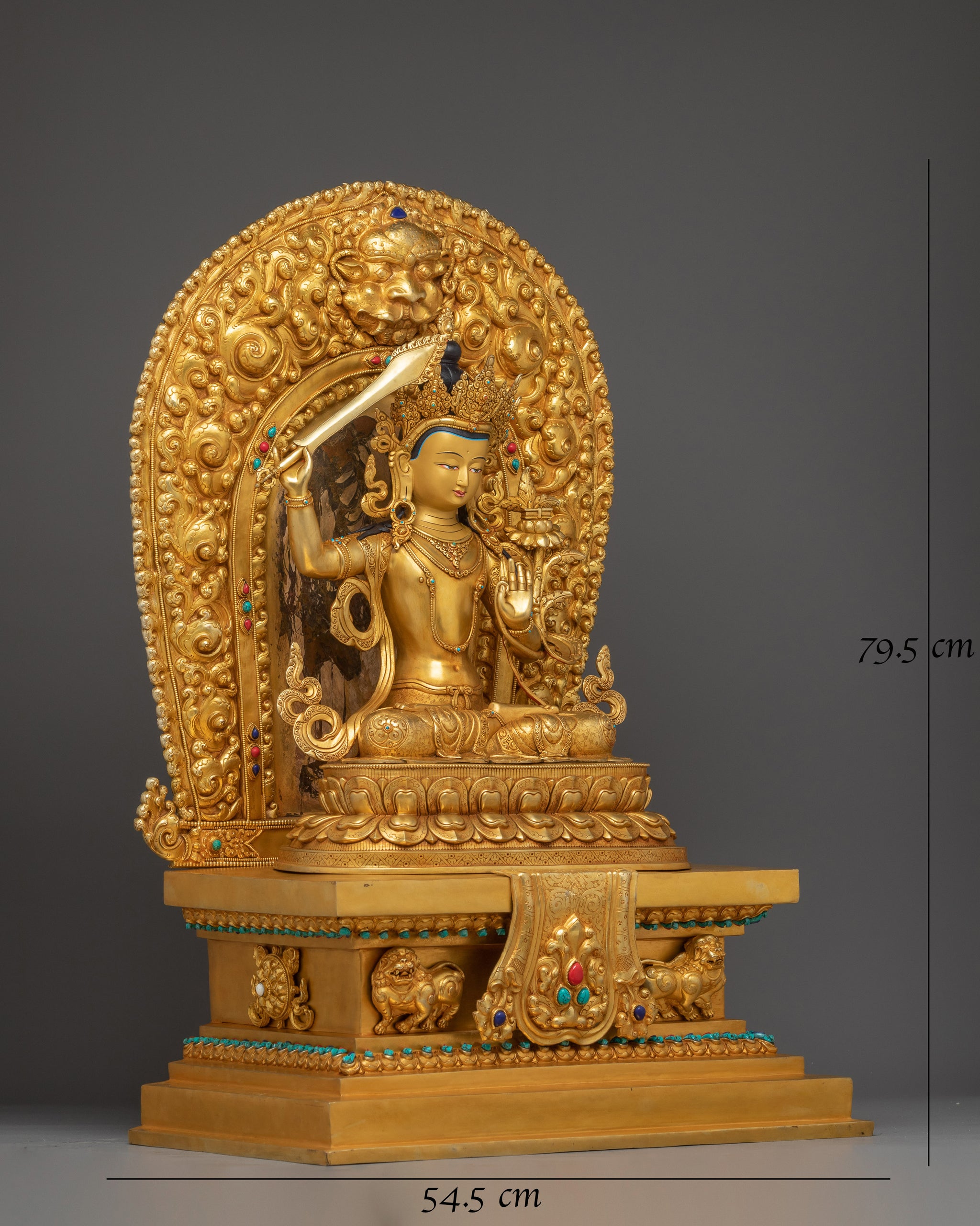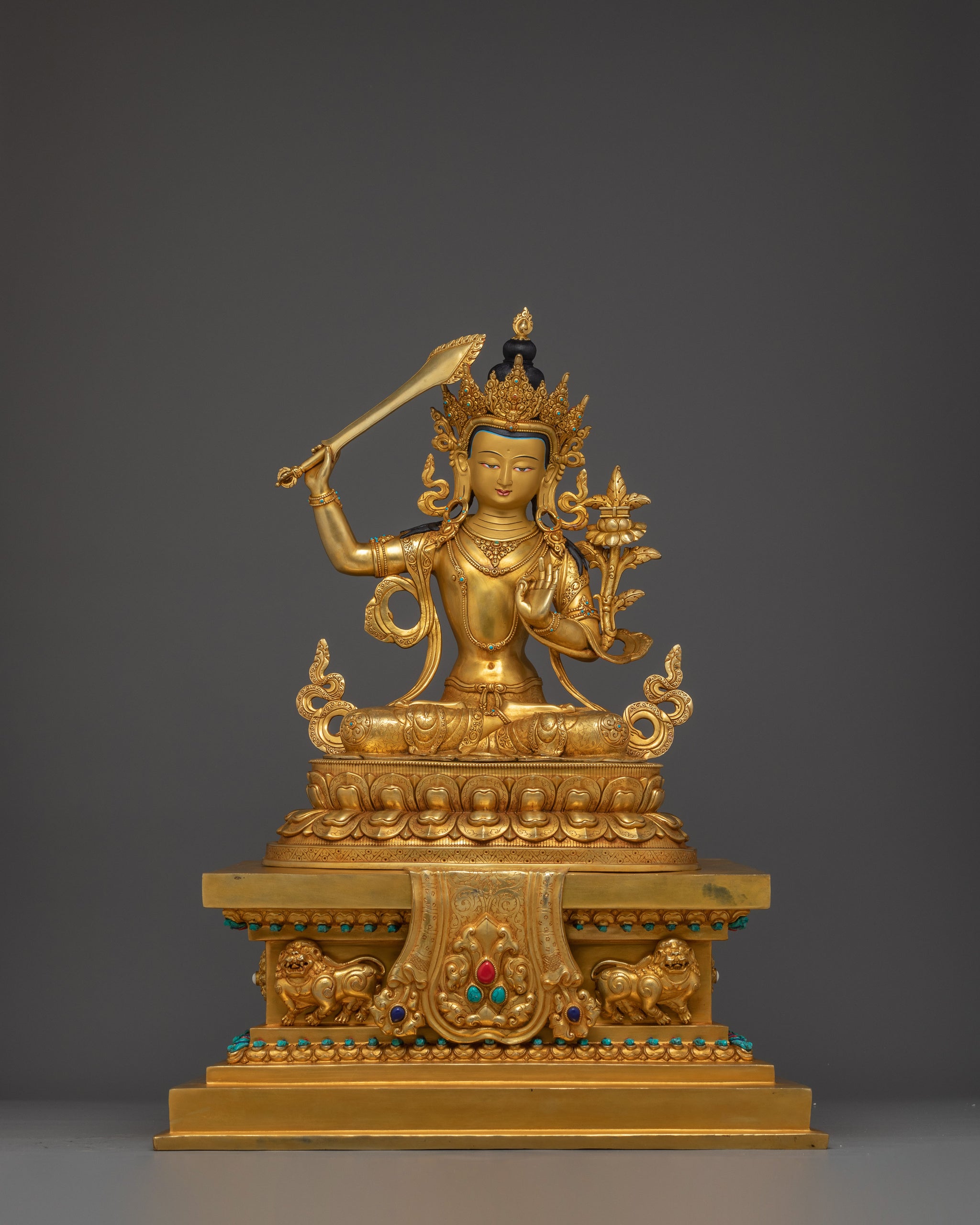 Radiant Manjushri on Throne Statue: Wisdom Bodhisattva