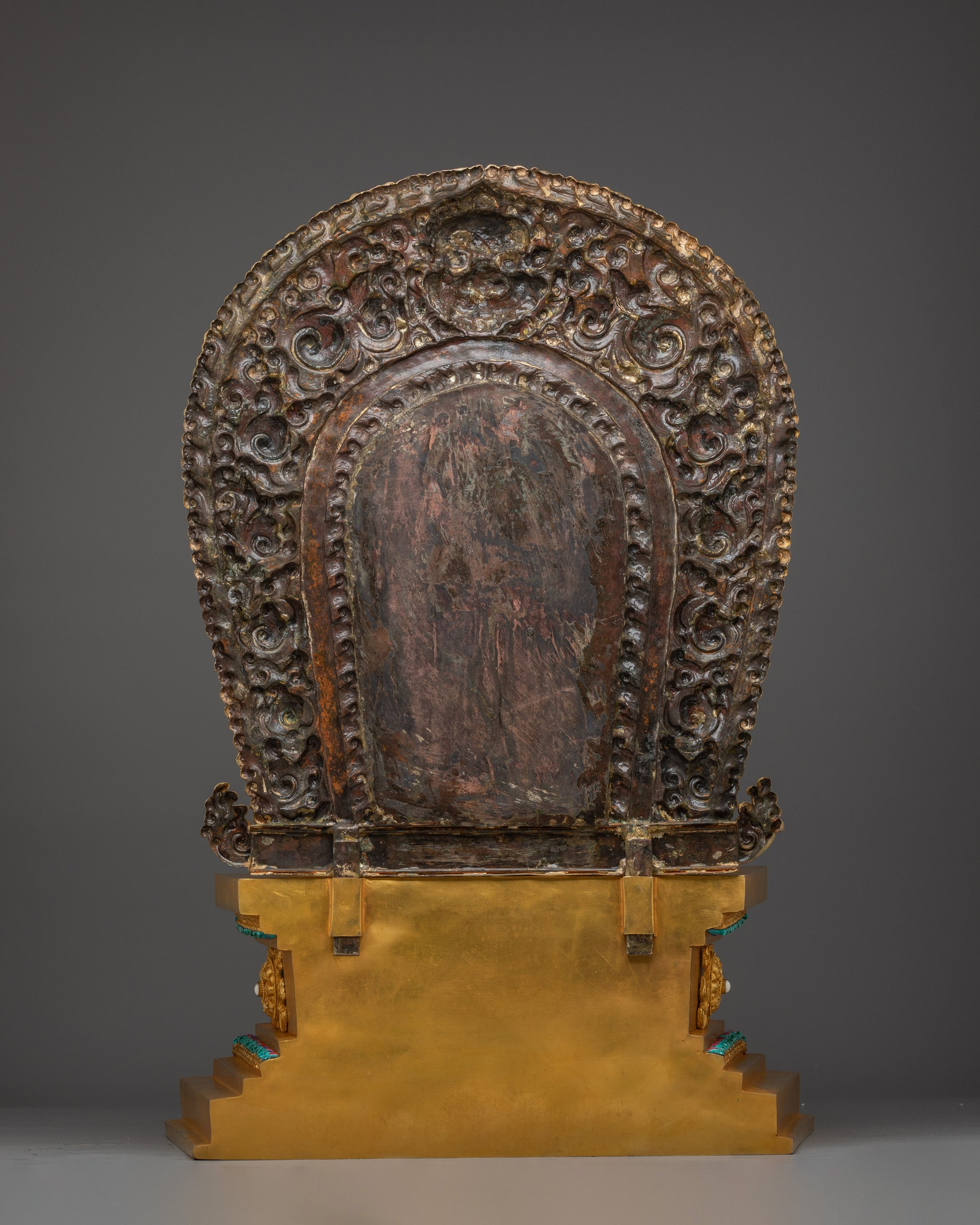 Vajrayogini is stunning. The details are amazing. It's easy to make out her facial expressions, skulls, feet, and the ring of fire around her. You can tell she's handmade. There is a consecration hole in her back.