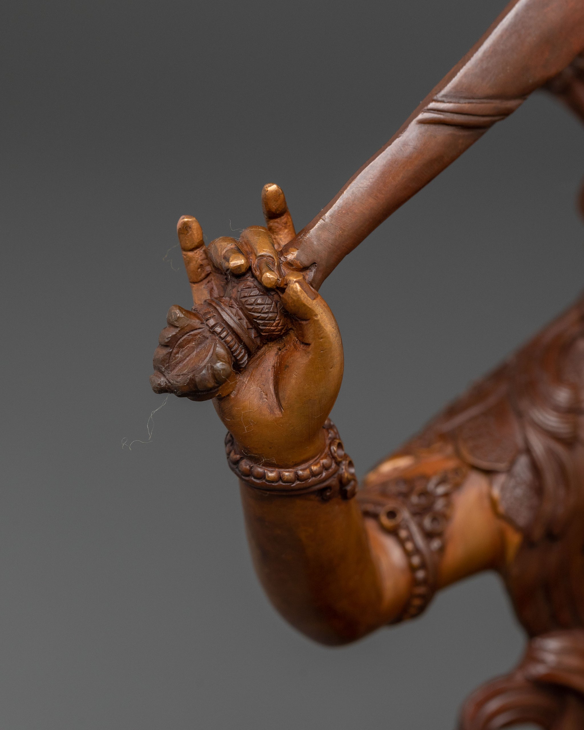 Manjushri's iconic raised sword symbolizes the powerful severing of ignorance and delusion with the sharp edge of wisdom. At the same time, the Prajnaparamita sutra at his heart represents the ultimate truth and transcendental knowledge. This exquisite piece of spiritual decor inspires a clear mind, promoting discernment, profound insight, and understanding on one's personal spiritual path.