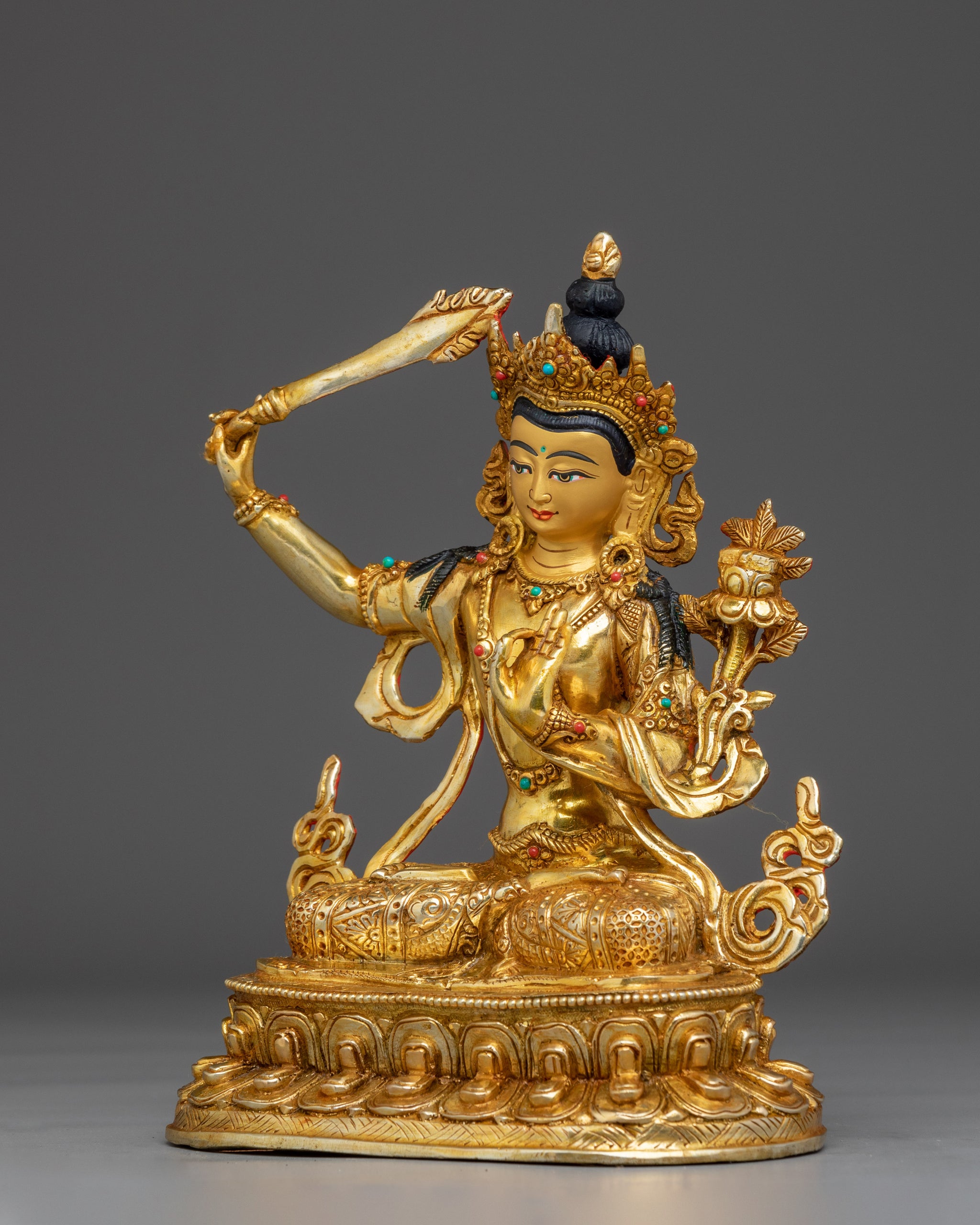 Manjushri, Tibetan Wisdom Deity | Gold Gilded Icon