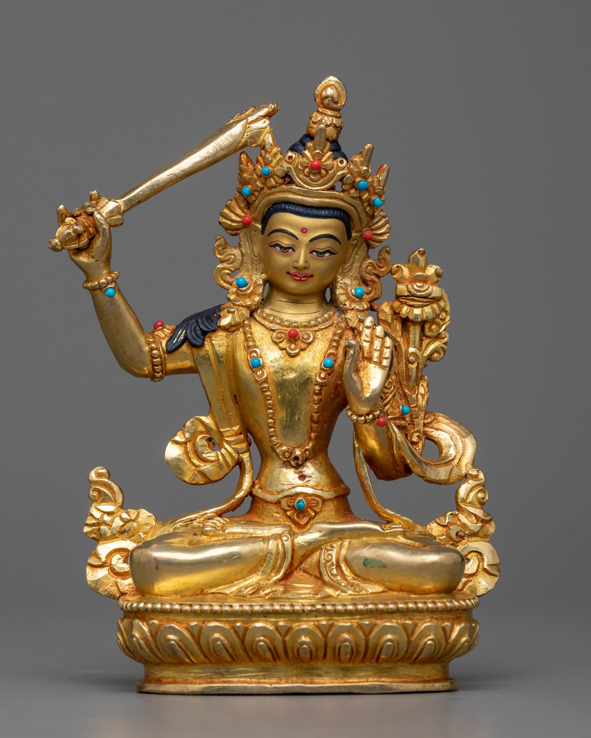 Manjushri Wisdom Bodhisattva Sculpture | Luminous 24K Gold Gilded Icon