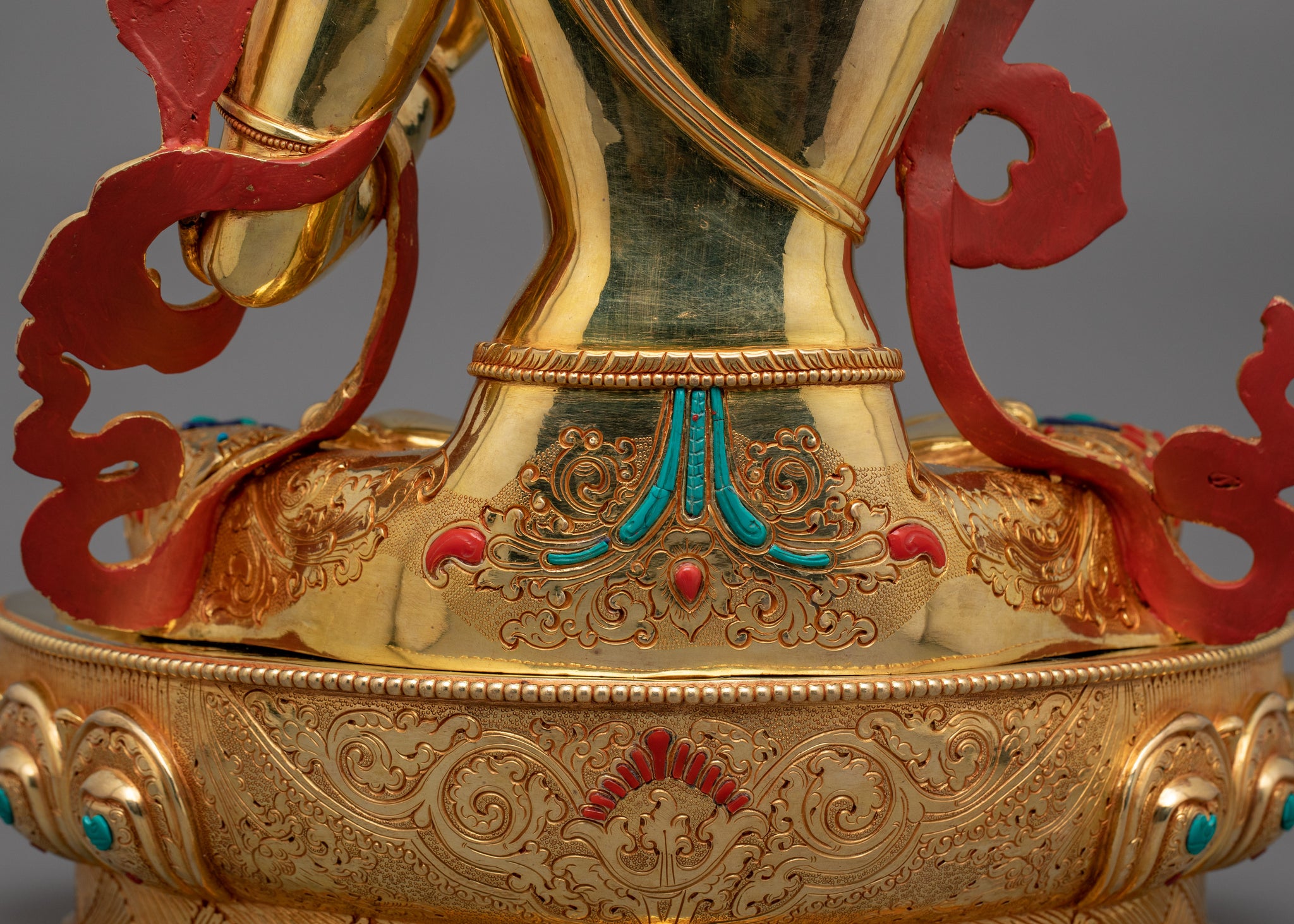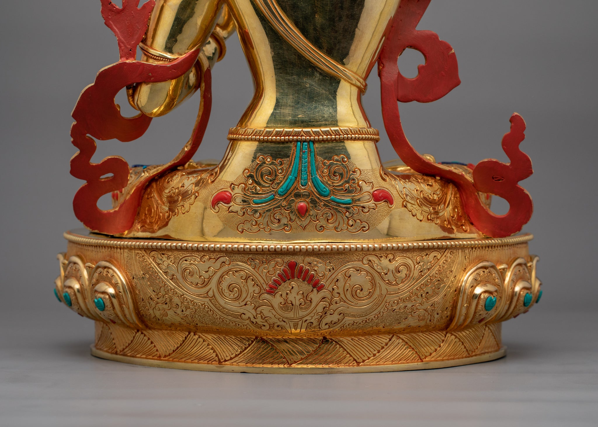 The statue is very beautiful. The craftsman who crafted it clearly shows the care and heart he put into it. It is a true dharma jewel on the altar. Shipping was quick, considering the recent events in Nepal. It was carefully packed and filled in a wooden box. If you're buying for shipping to the European Union, please note that customs duties on items from outside the EU are as high as 23 percent of the value.