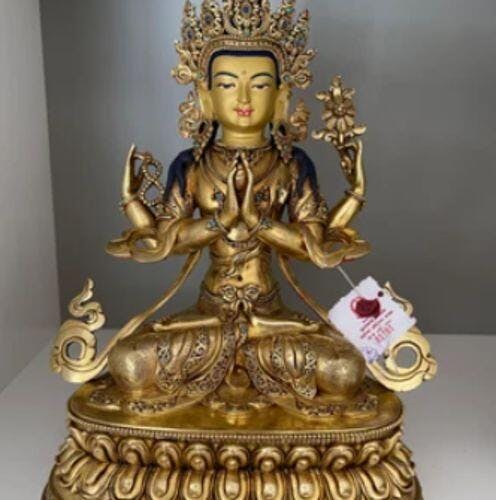 24k Gold Gilded Mantra de Chenrezig Statue, Hand-Crafted Figure of compassion