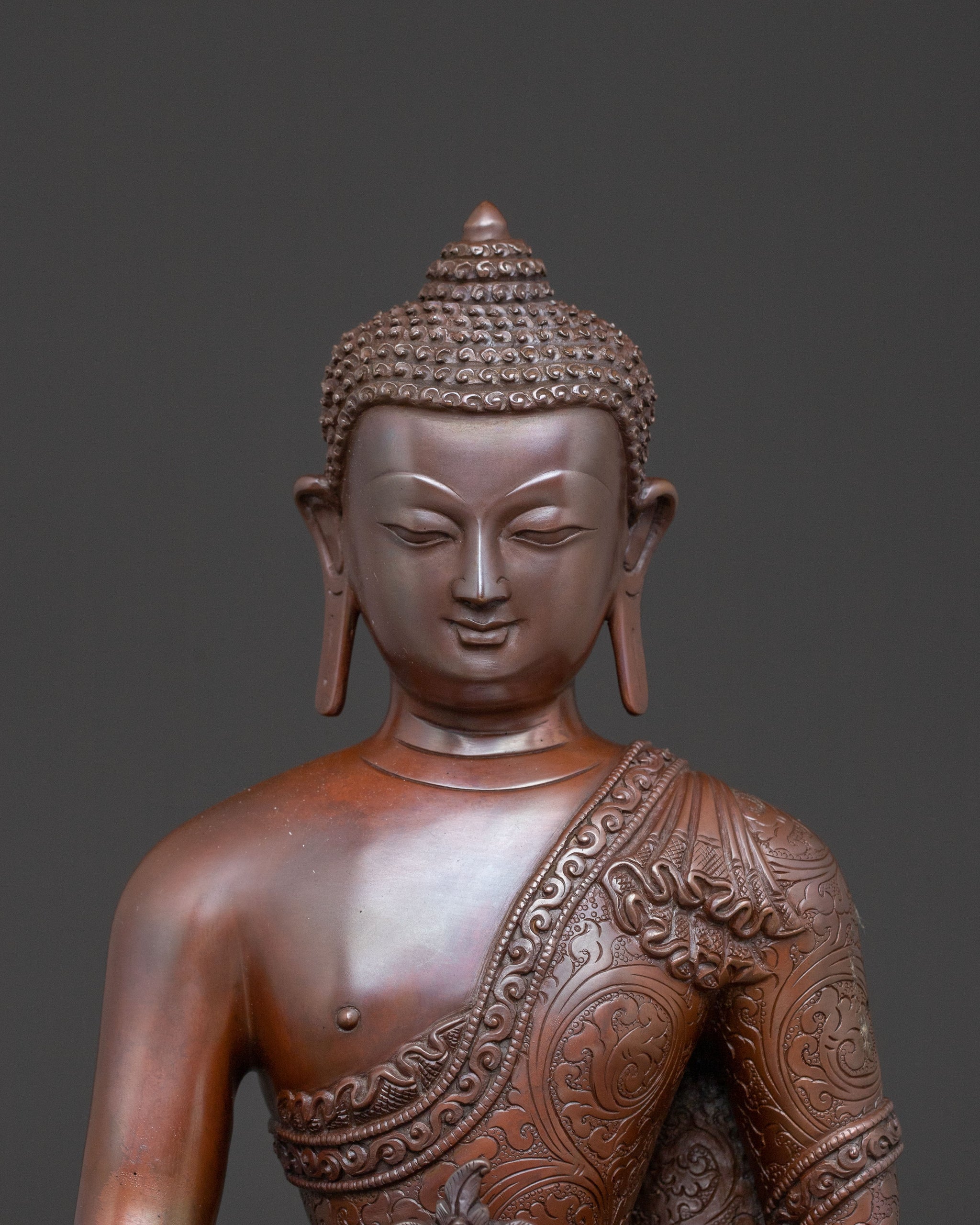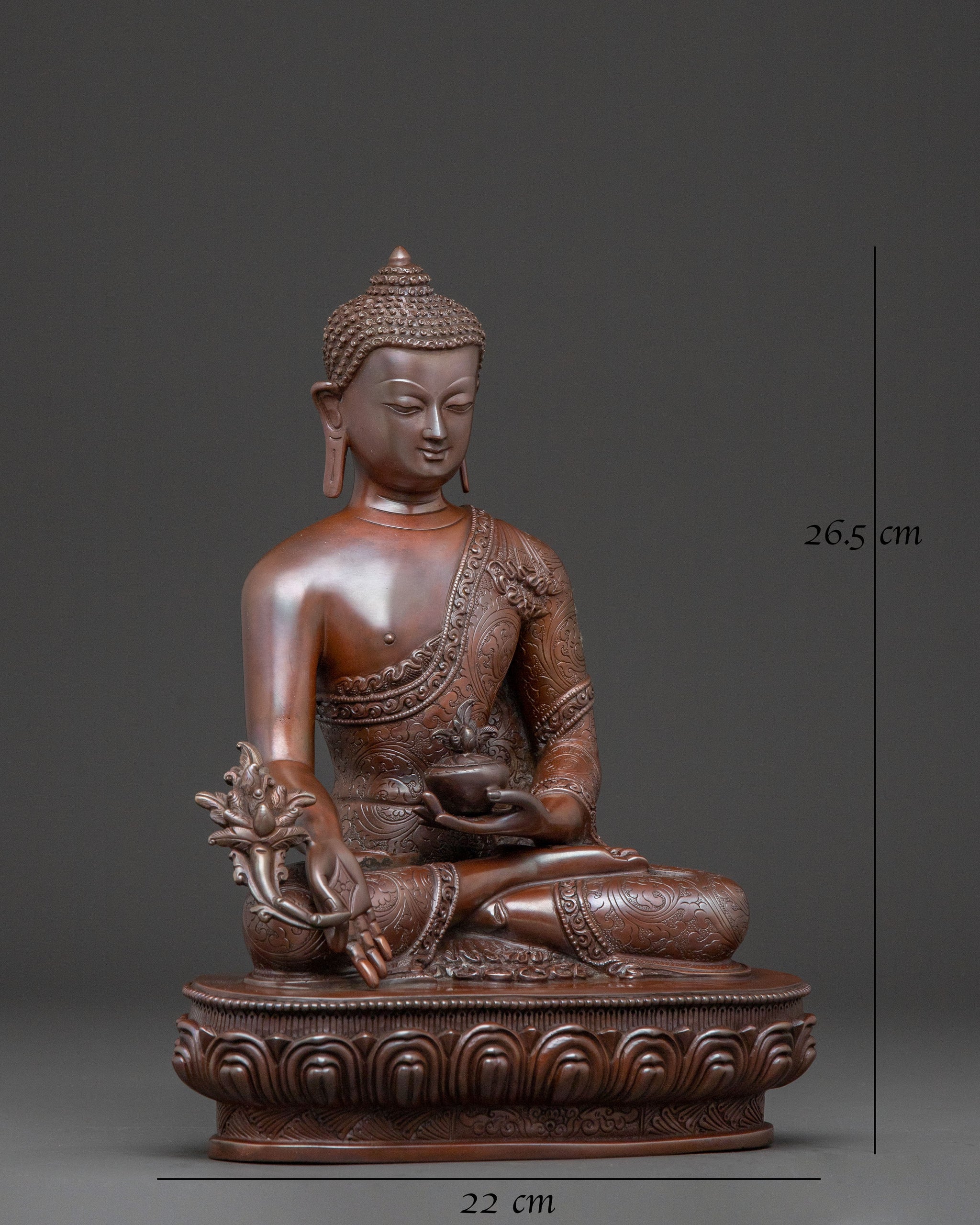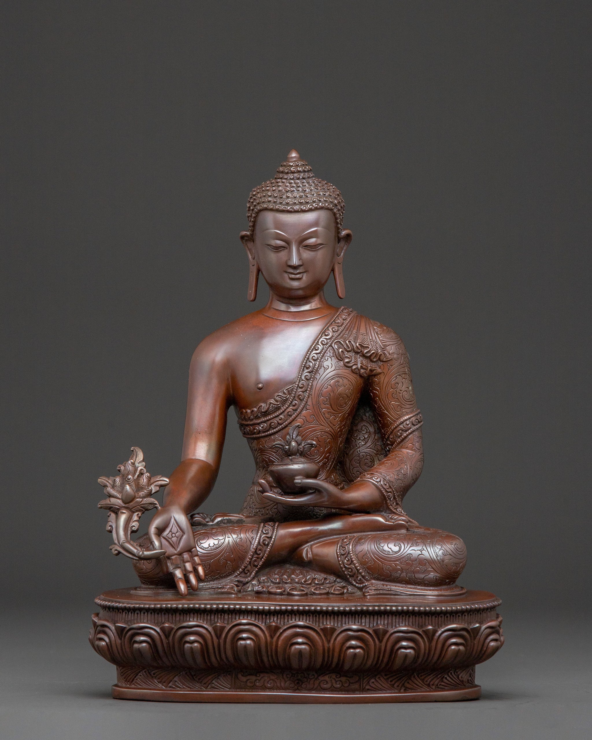 Medicine Buddha Altar Decor Statue - Oxidized Copper Bhaisajyaguru