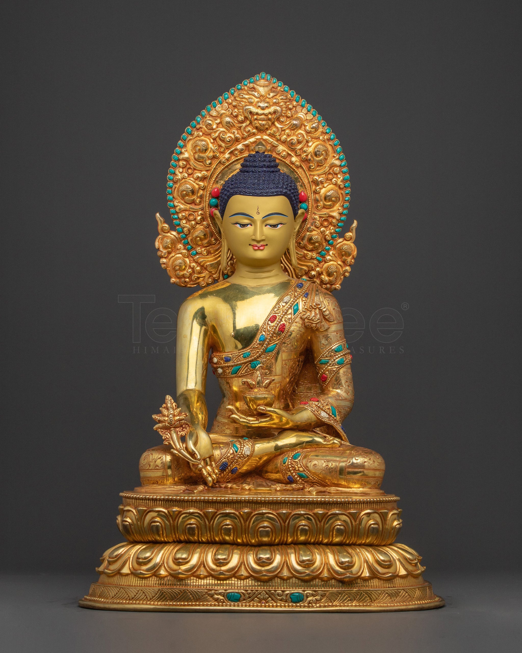 Medicine Buddha Sacred Altar Statue: 24K Gold Gilded