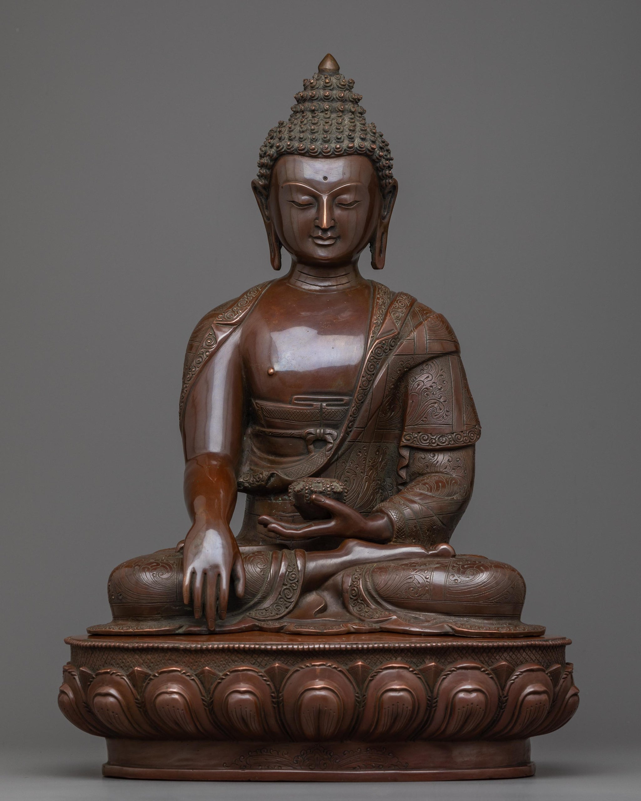 Each statue is meticulously handcrafted by our talented Nepalese artisans, who use oxidized copper to give them a vintage, time-honored look. The complex decorations and soft shine of the copper reflect a rich story of Buddhist tradition and Nepalese culture. Wouldn't it be wonderful to acquire a work of art that contains a wealth of narratives in addition to being purely decorative?