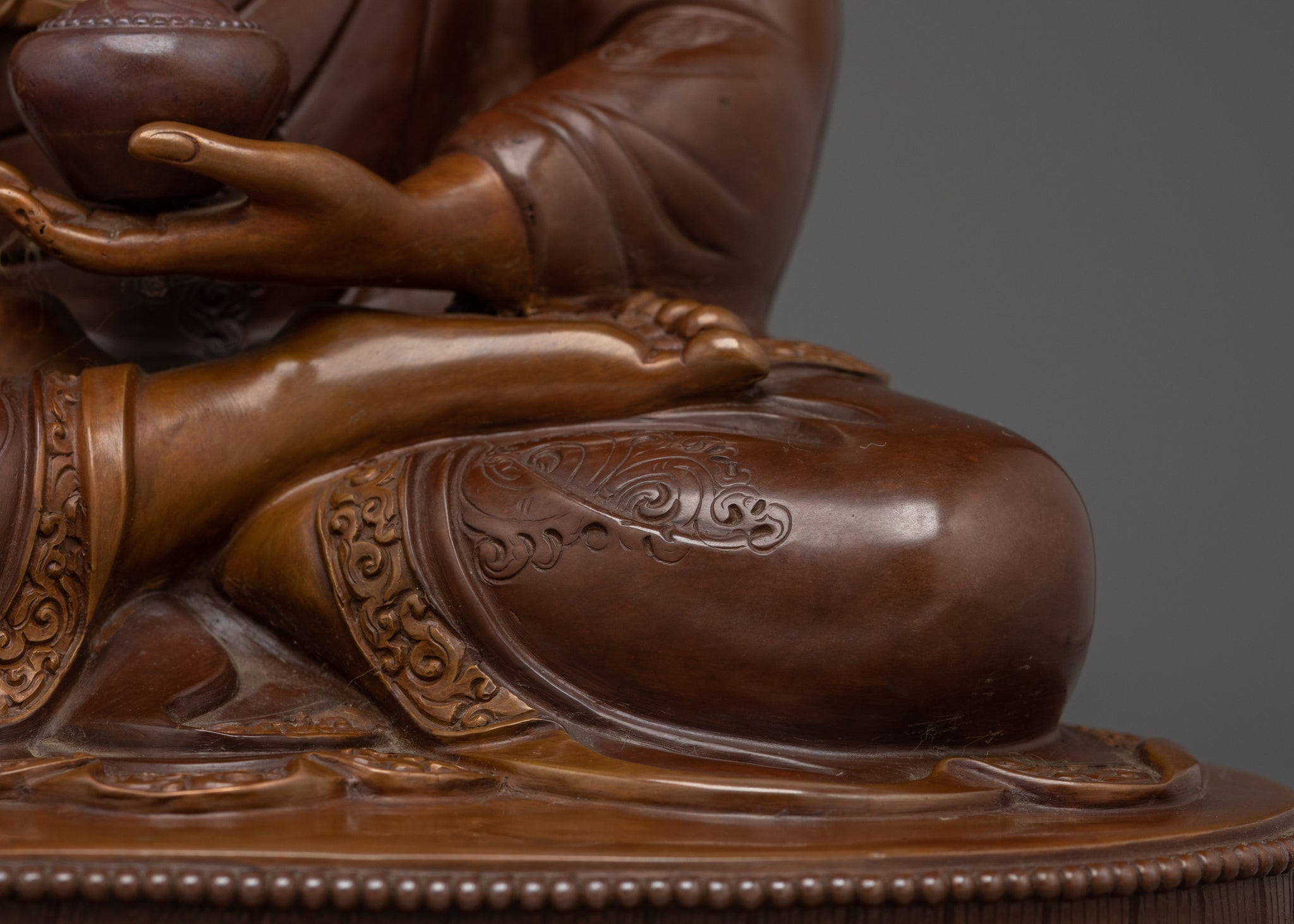Vajrayogini is stunning. The details are amazing. It's easy to make out her facial expressions, skulls, feet, and the ring of fire around her. You can tell she's handmade. There is a consecration hole in her back.