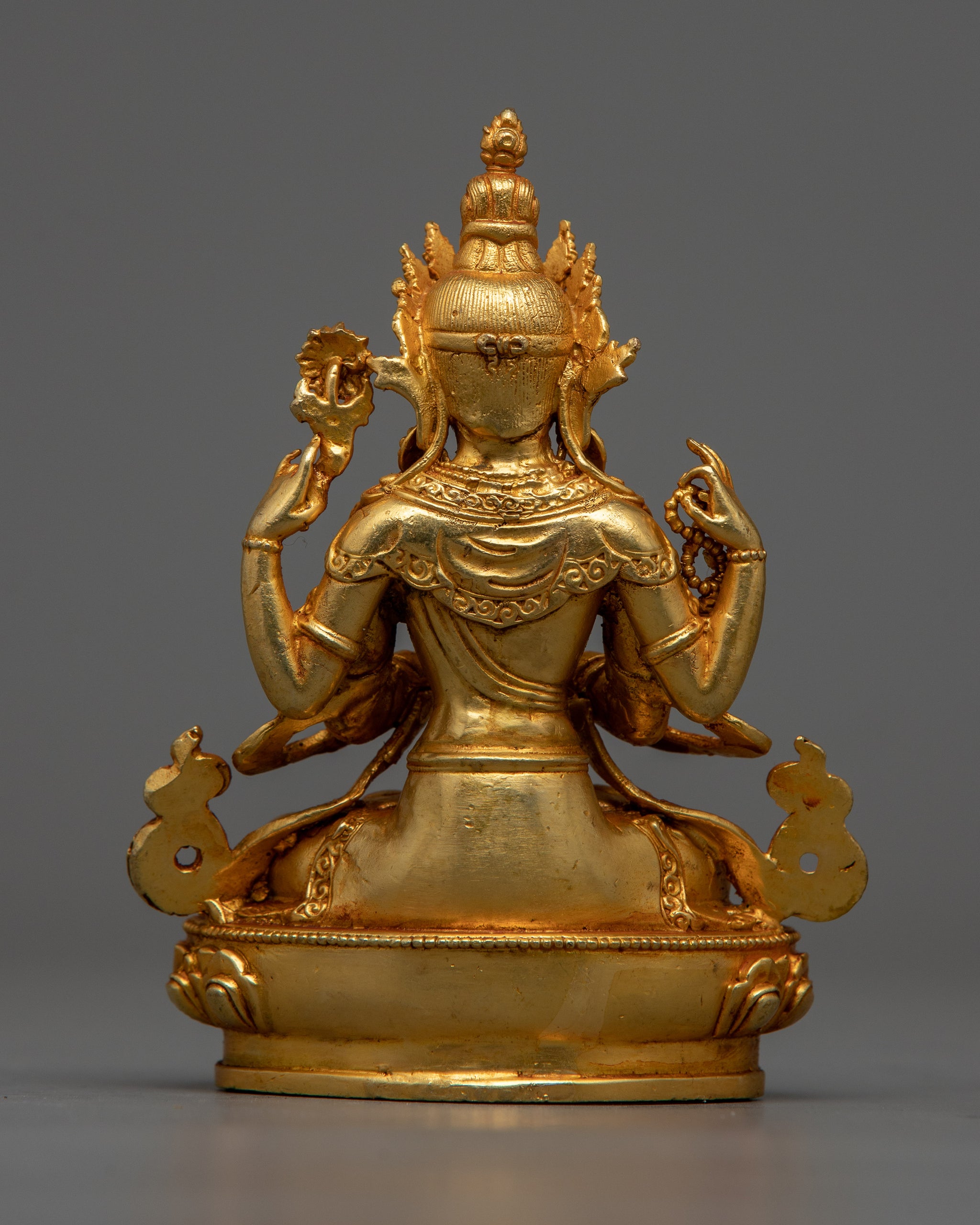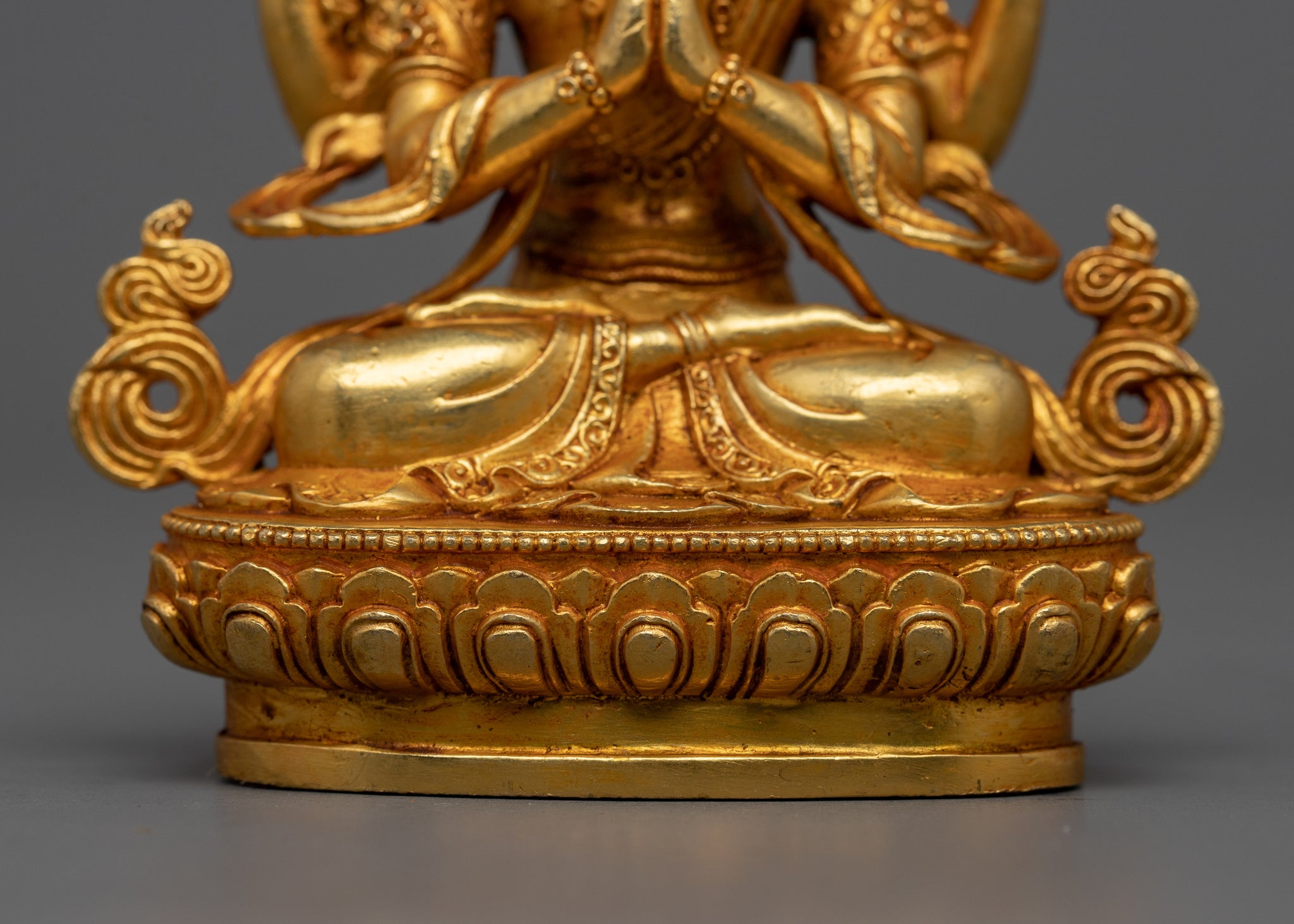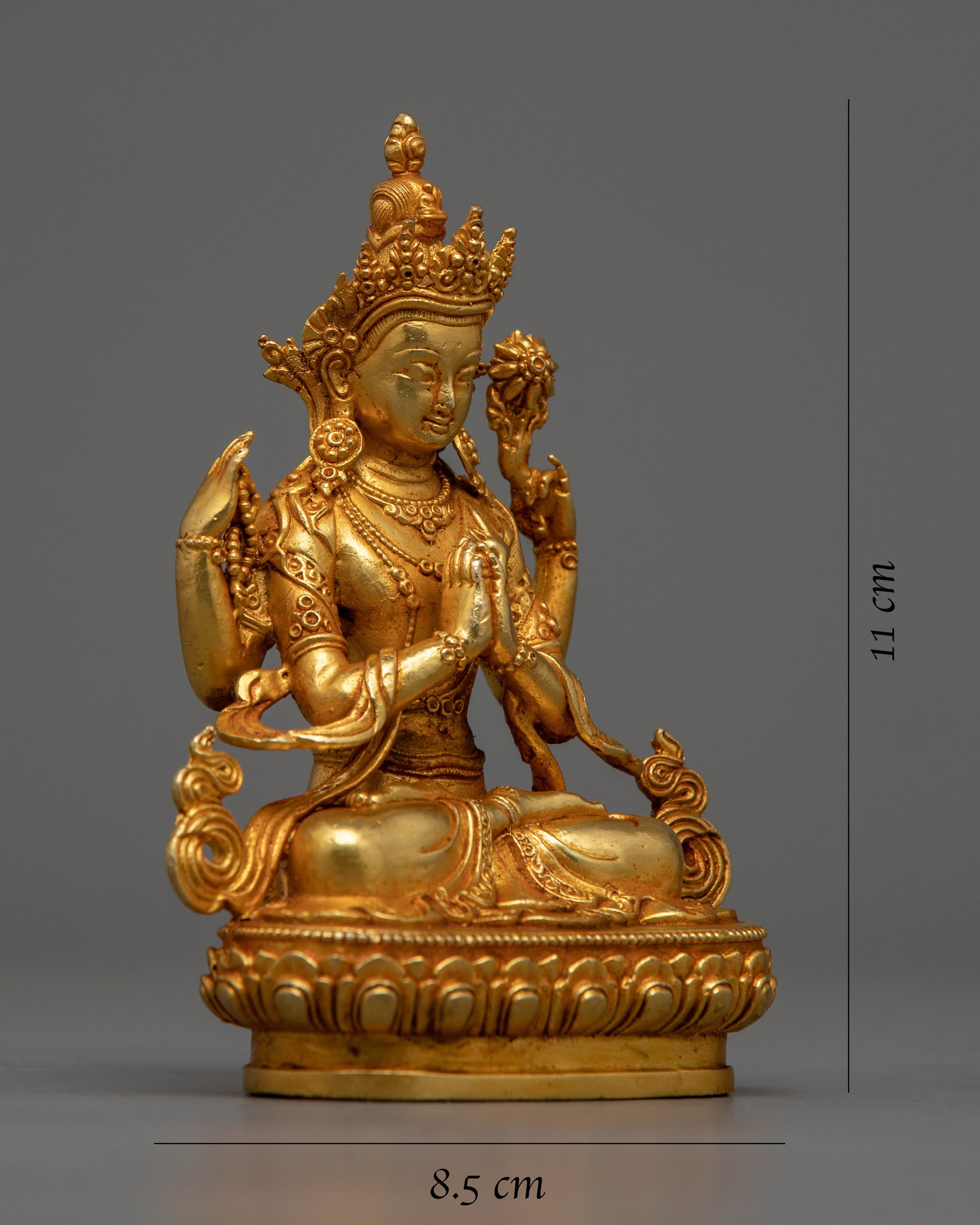 Miniature Chenrezig Statuette | 24K Gold Electroplated Symbol of Compassion