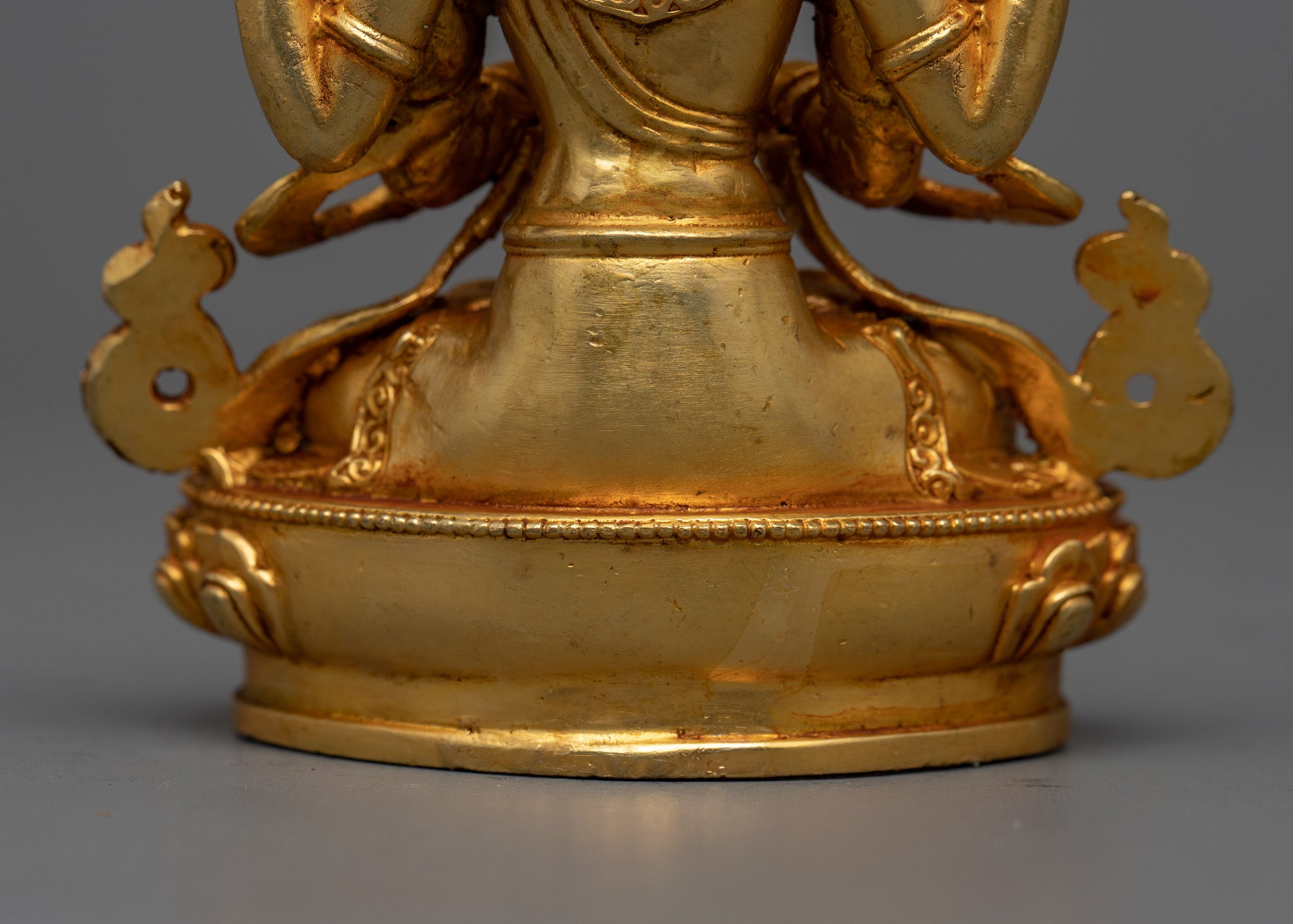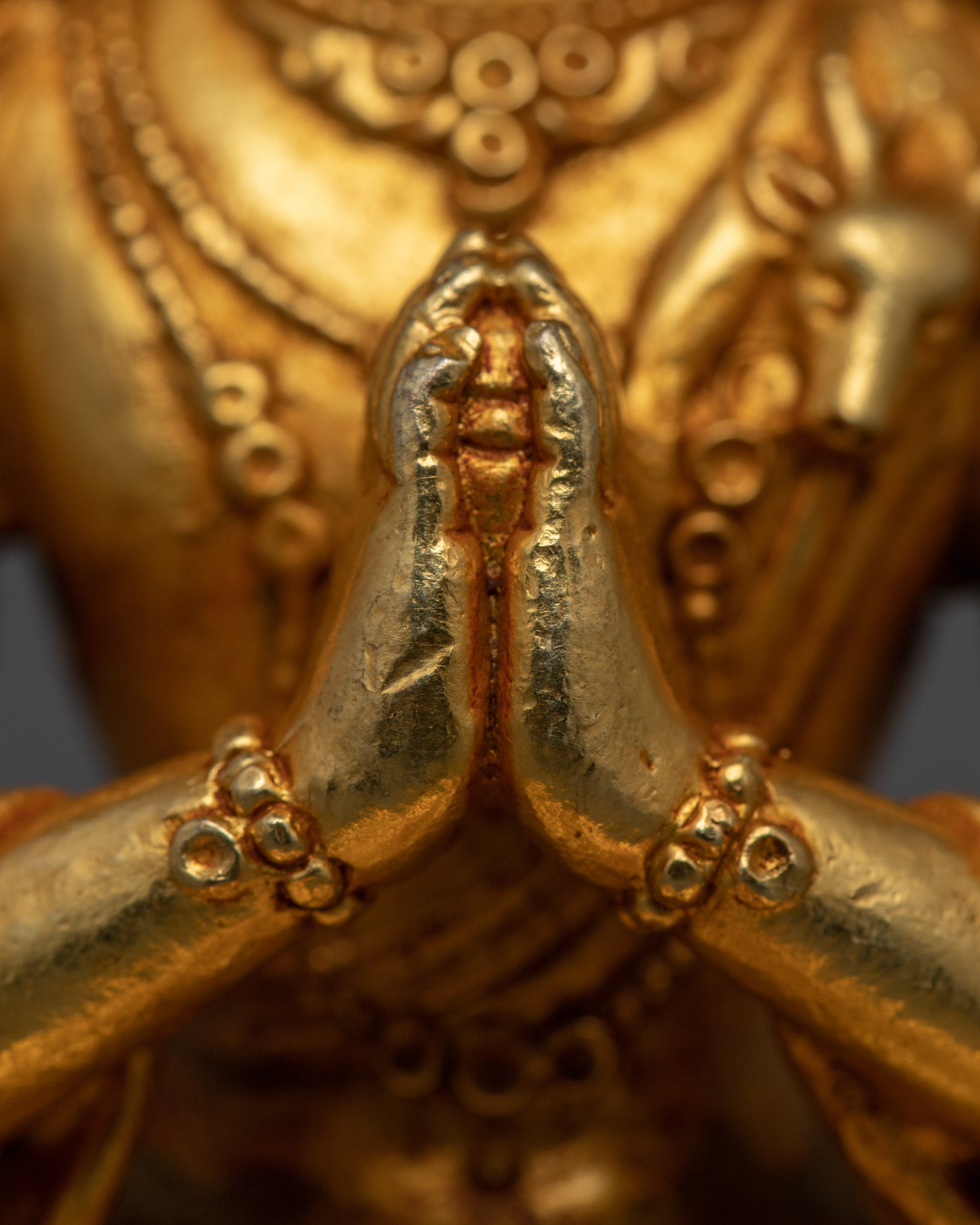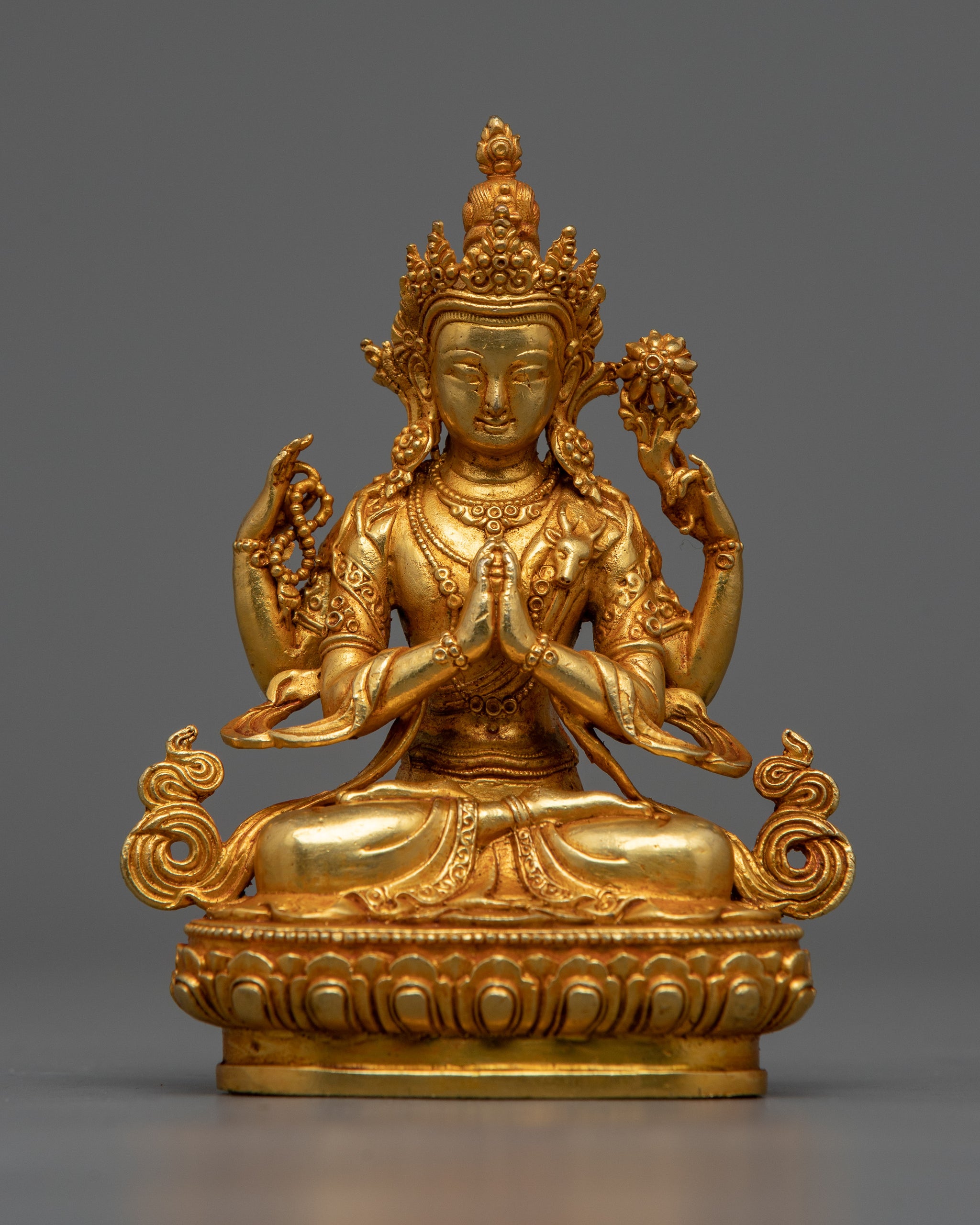 Miniature Chenrezig Statuette | 24K Gold Electroplated Symbol of Compassion
