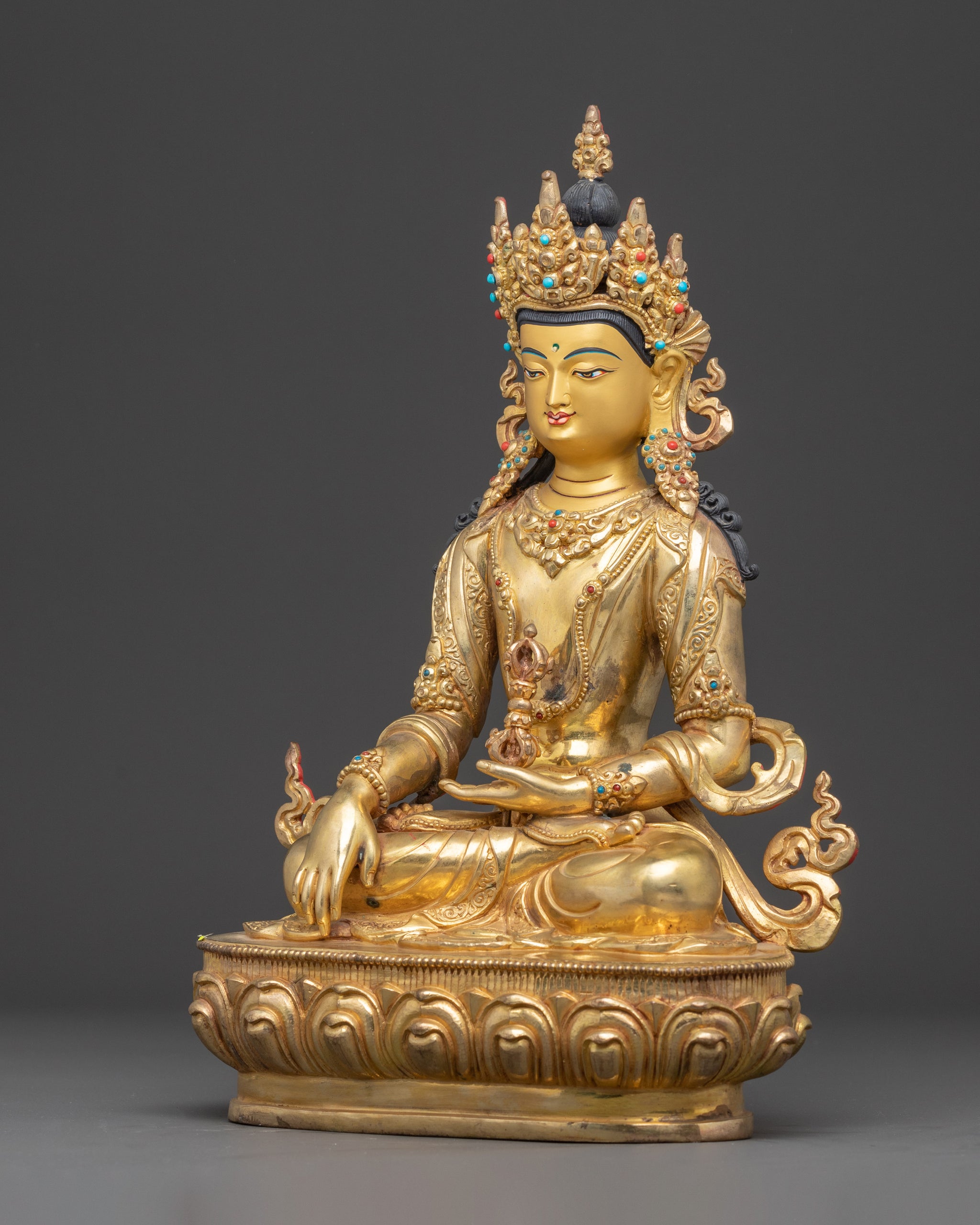 Very beautiful and perfect statue of the Dhyani-Buddha Amogasiddhi representing the wisdom of fulfillment, accomplishment and spiritual success.