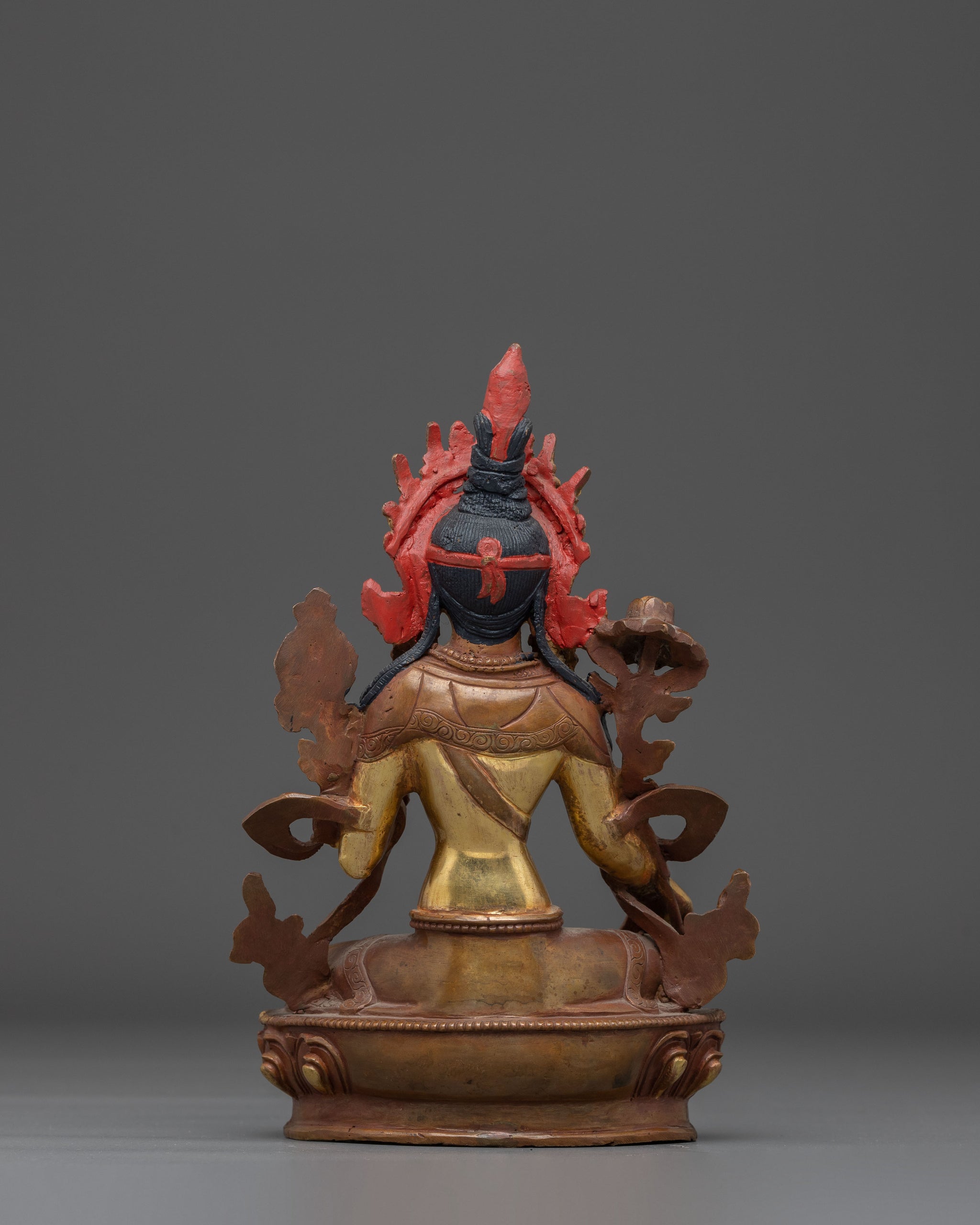 Spiritually, Green Tara embodies protection, compassion, and swift assistance. Her presence inspires courage, mindfulness, and devotion, making this statue a powerful aid for meditation, spiritual practice, and fostering inner peace. It serves as a reminder to cultivate compassion and actively help others in their journey toward liberation.