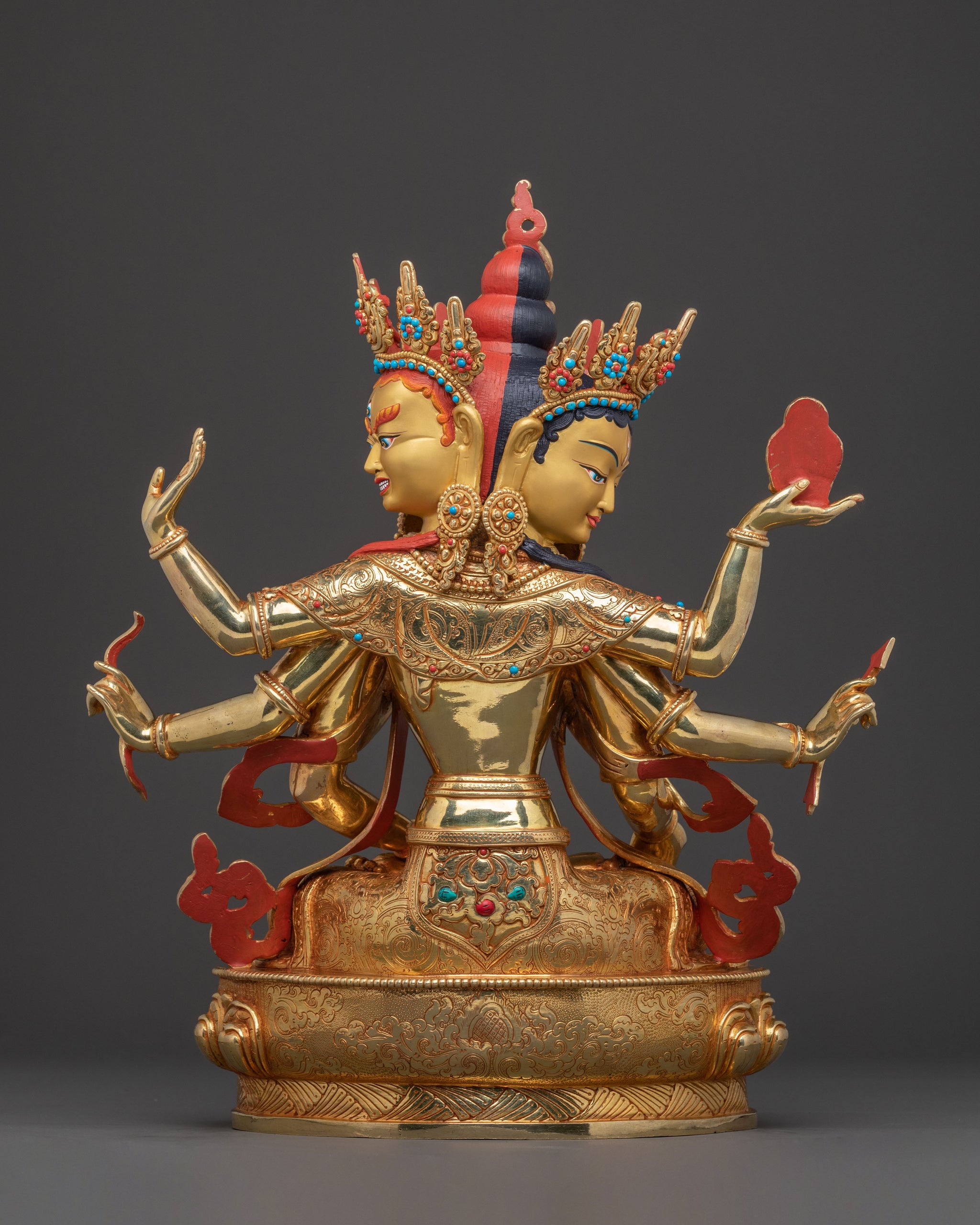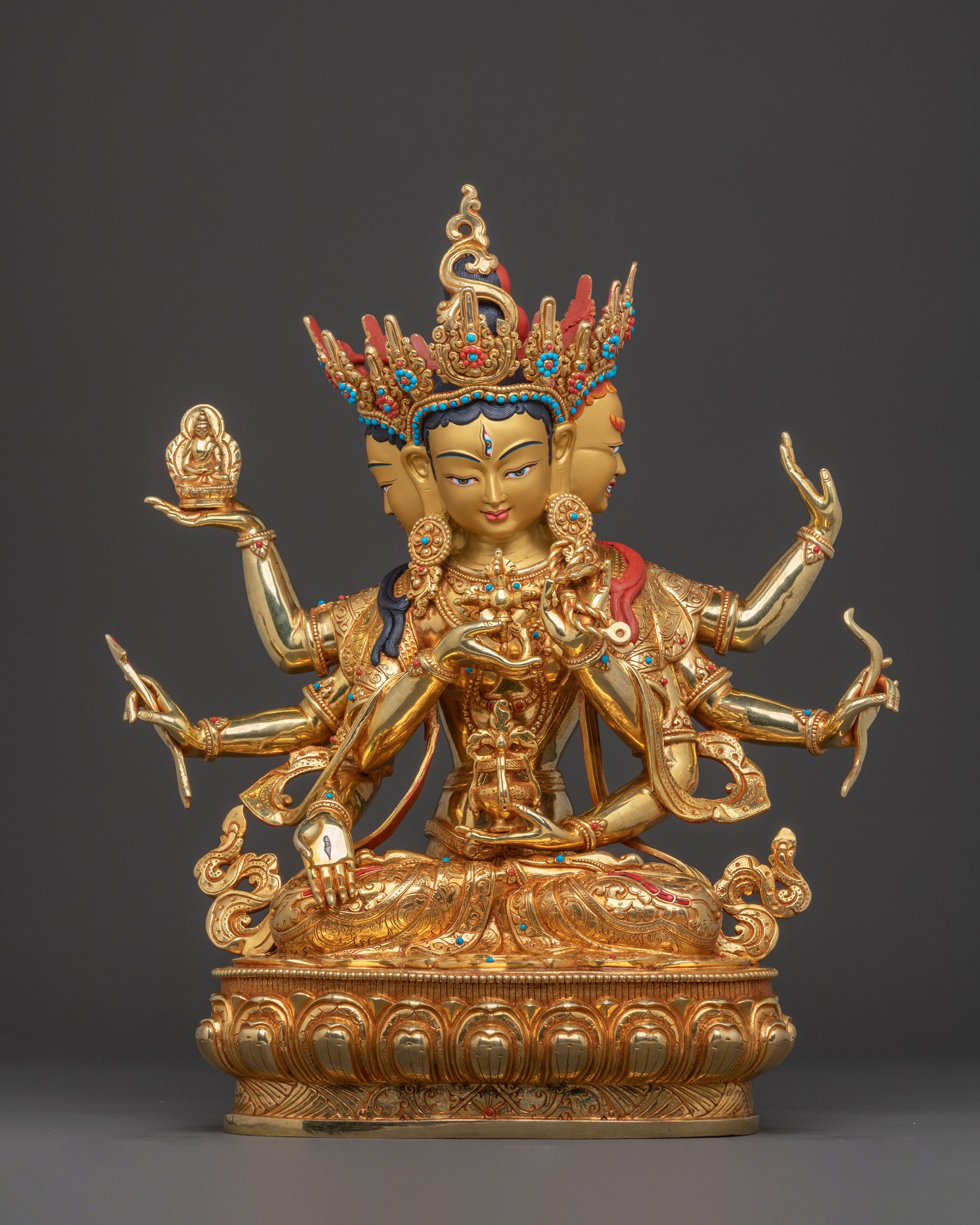 The three-headed Hayagriva is a rare find, especially the one with color. I was actually very glad to see that all the dharma implements are all mounted on hands so they won't fall off.