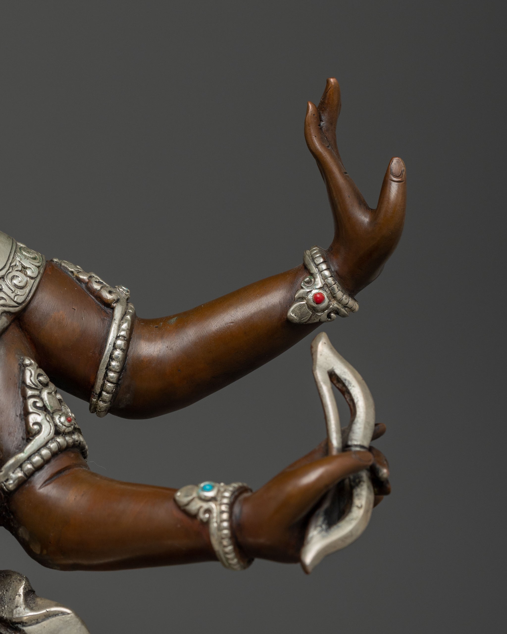 Vajrayogini is stunning. The details are amazing. It's easy to make out her facial expressions, skulls, feet, and the ring of fire around her. You can tell she's handmade. There is a consecration hole in her back.