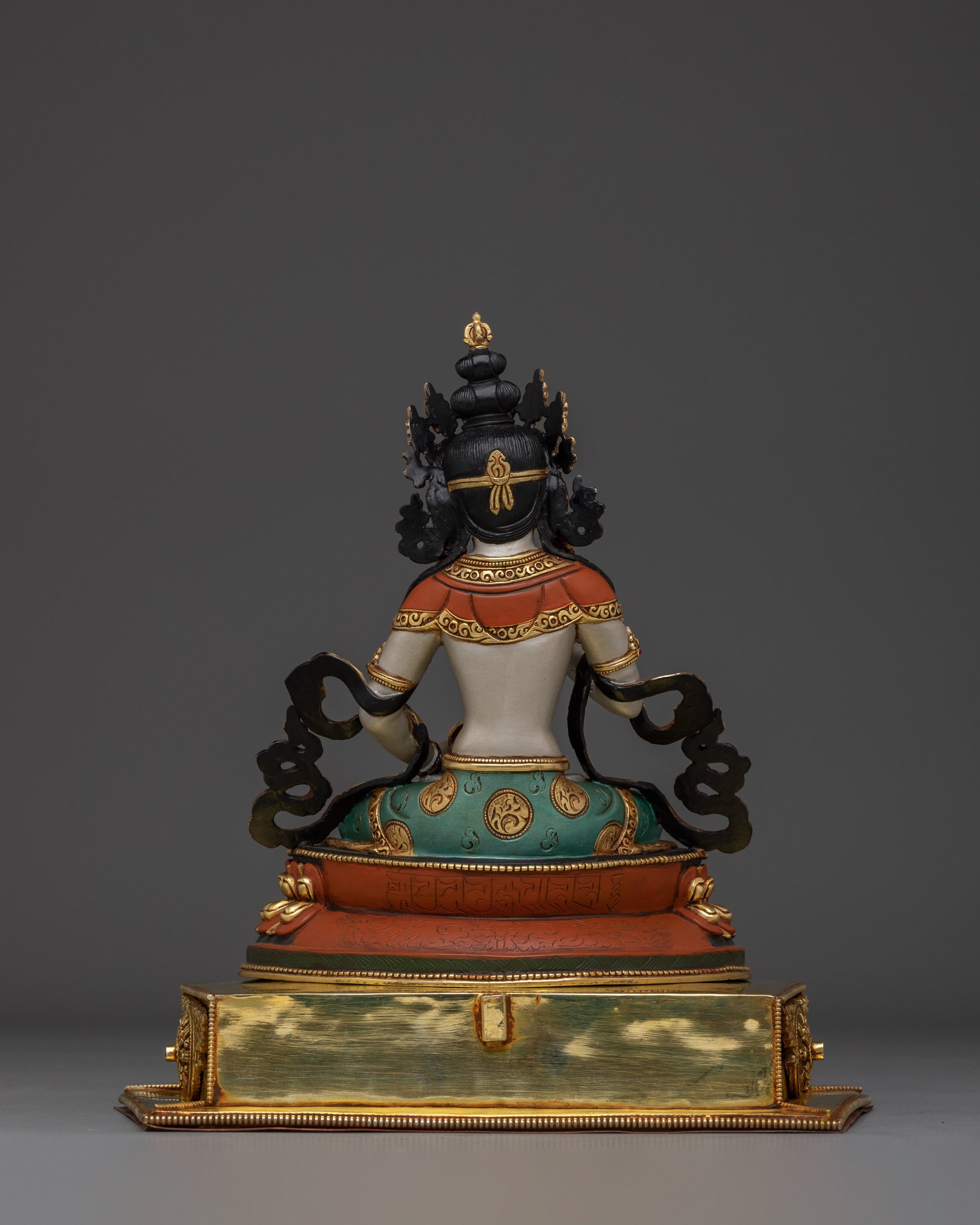 The statue is very beautiful. The craftsman who crafted it clearly shows the care and heart he put into it. It is a true dharma jewel on the altar. Shipping was quick, considering the recent events in Nepal. It was carefully packed and filled in a wooden box. If you're buying for shipping to the European Union, please note that customs duties on items from outside the EU are as high as 23 percent of the value.