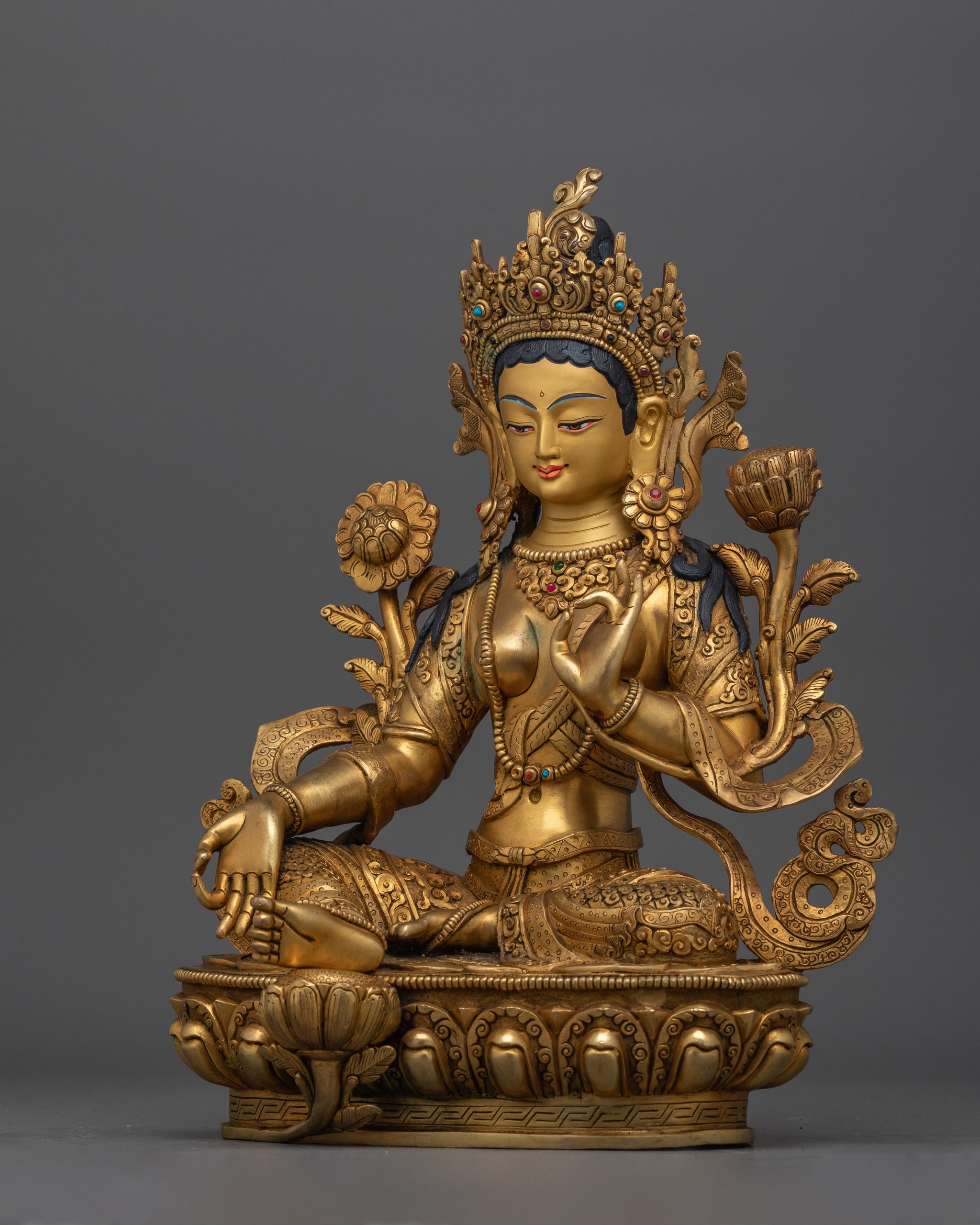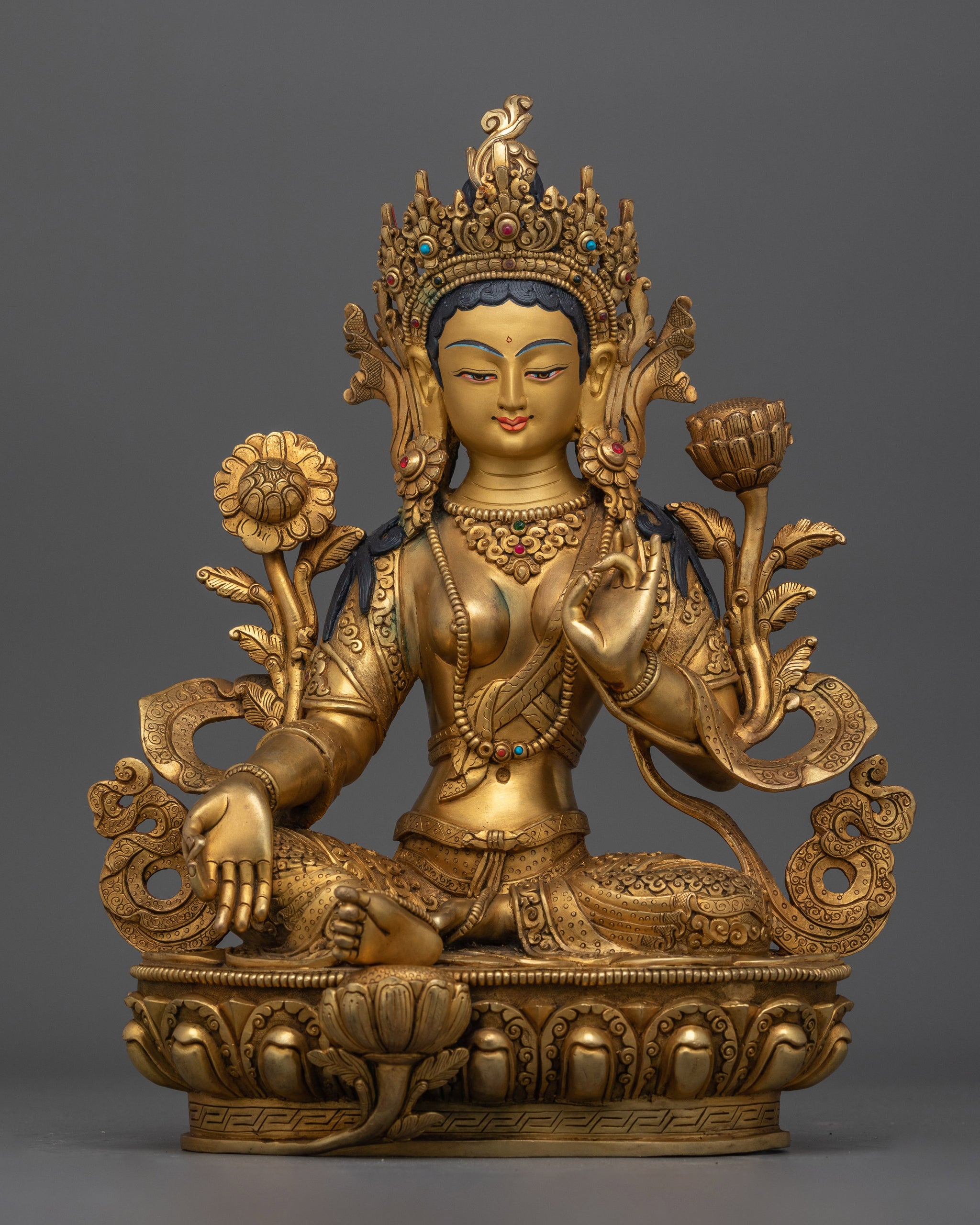Nepalese Handmade Green Tara Statue | Embodiment of Compassion and Swift Action