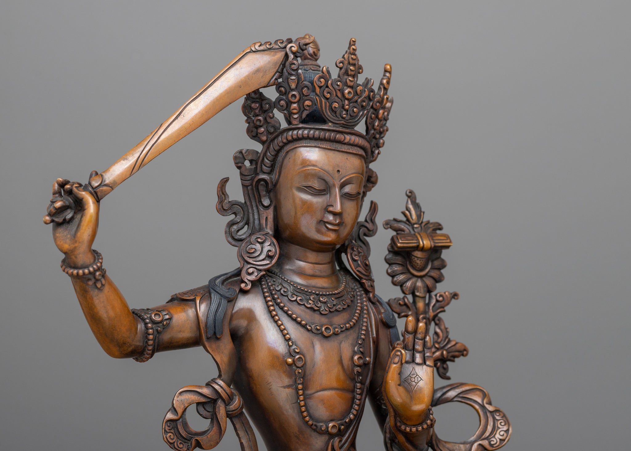 Noble Manjushri Buddhism Statue | A Reverence in Oxidized Copper Craftsmanship