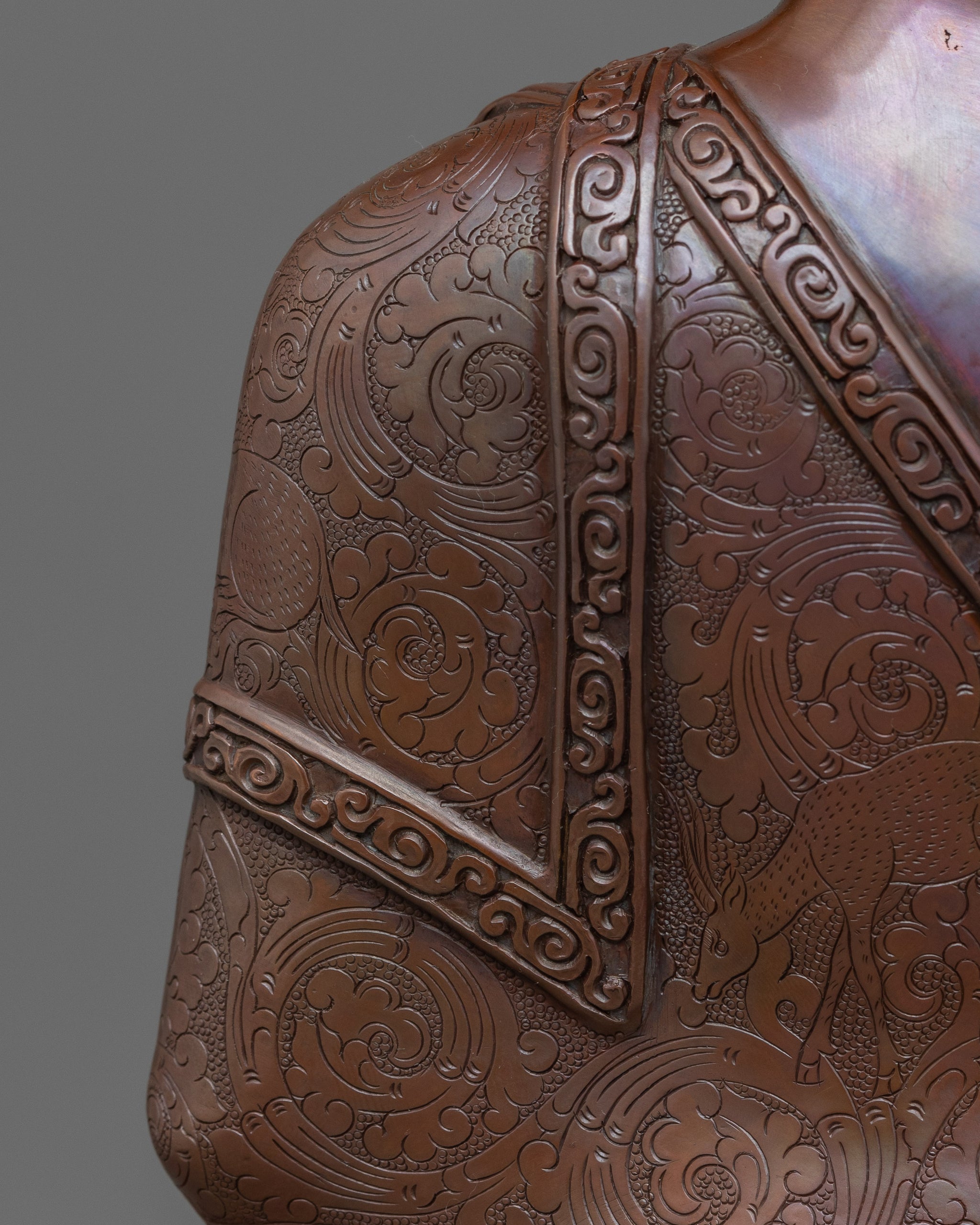 Invite the boundless compassion and wisdom of Oxidized Amitabha Buddha into your sacred space with this 14.2-inch handcrafted statue. Made from an Oxidized copper body, this radiant masterpiece embodies the Buddha of Infinite Light, guiding beings toward enlightenment and liberation. Seated in lotus, this sacred item embodies the rich traditions of Himalayan Buddhism, making it an important addition to altars, meditation areas, and sacred collections.