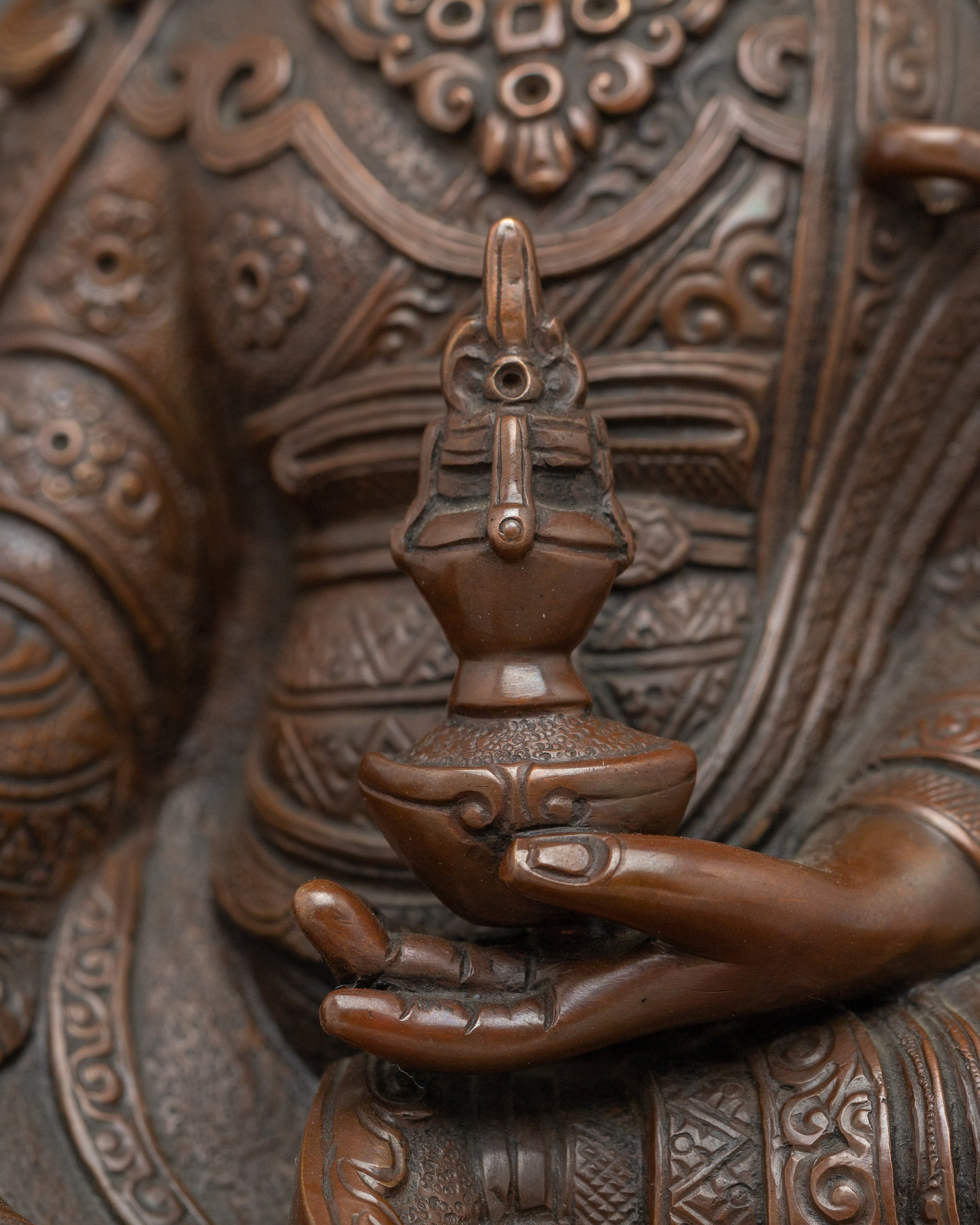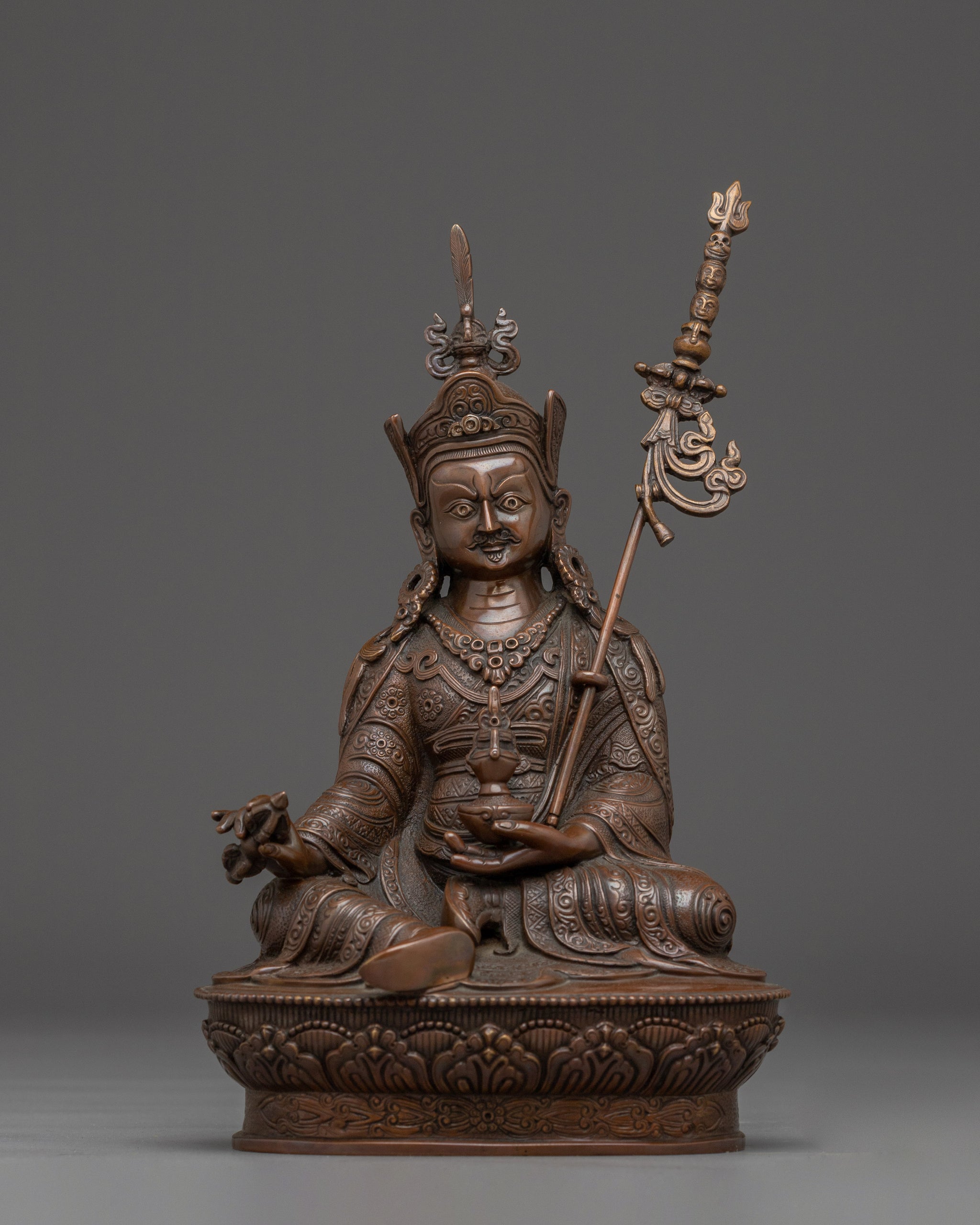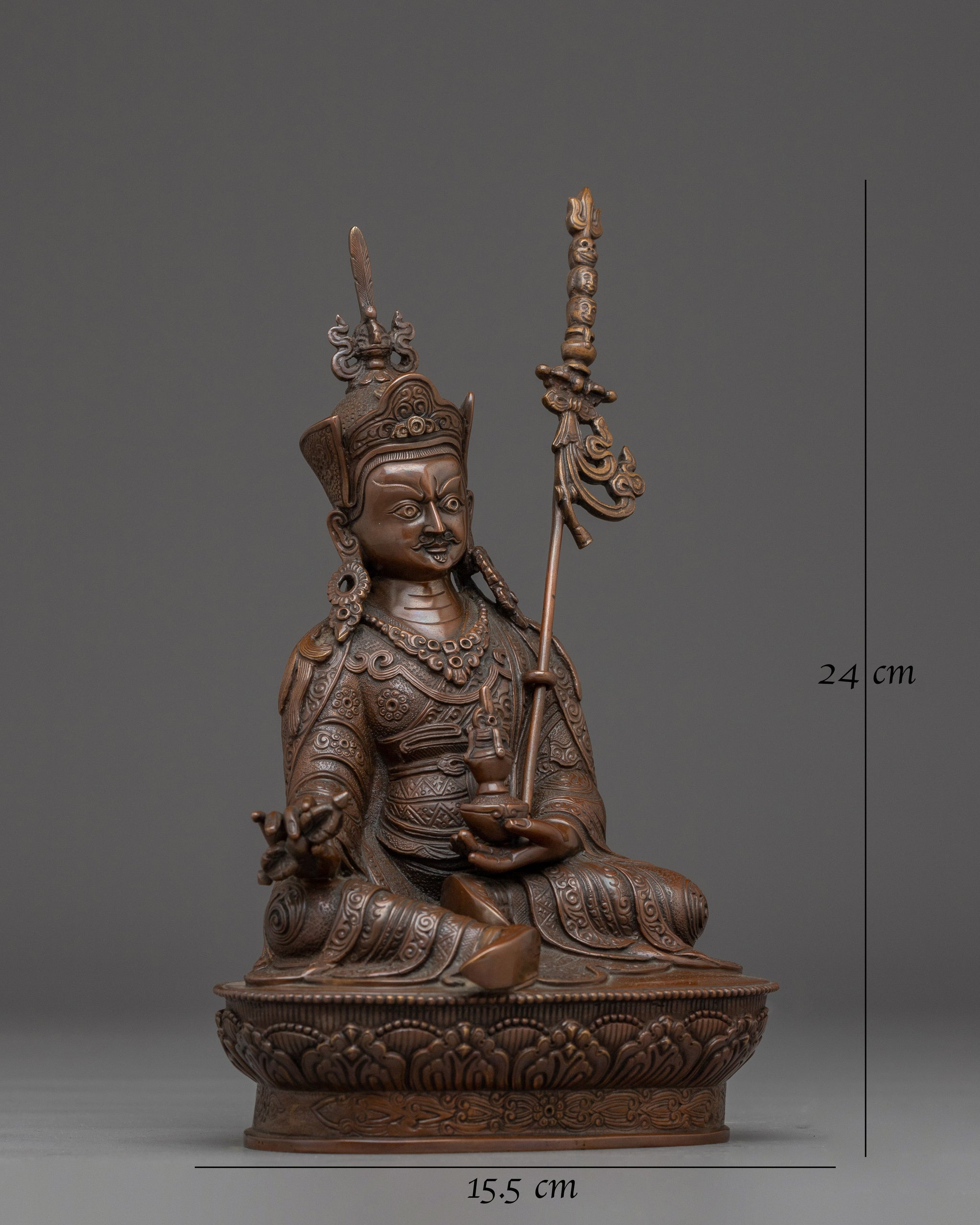Oxidized Copper Guru Rinpoche Buddhist Statue | Sacred Padmasambhava for Shrine or Altar