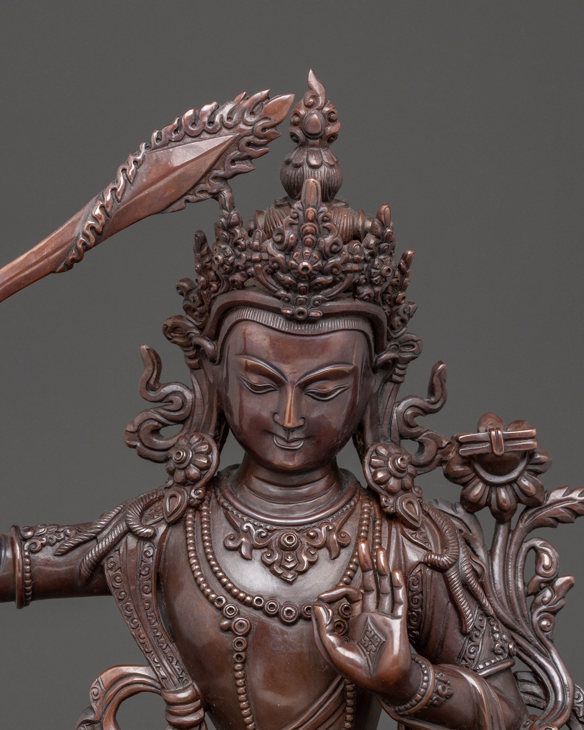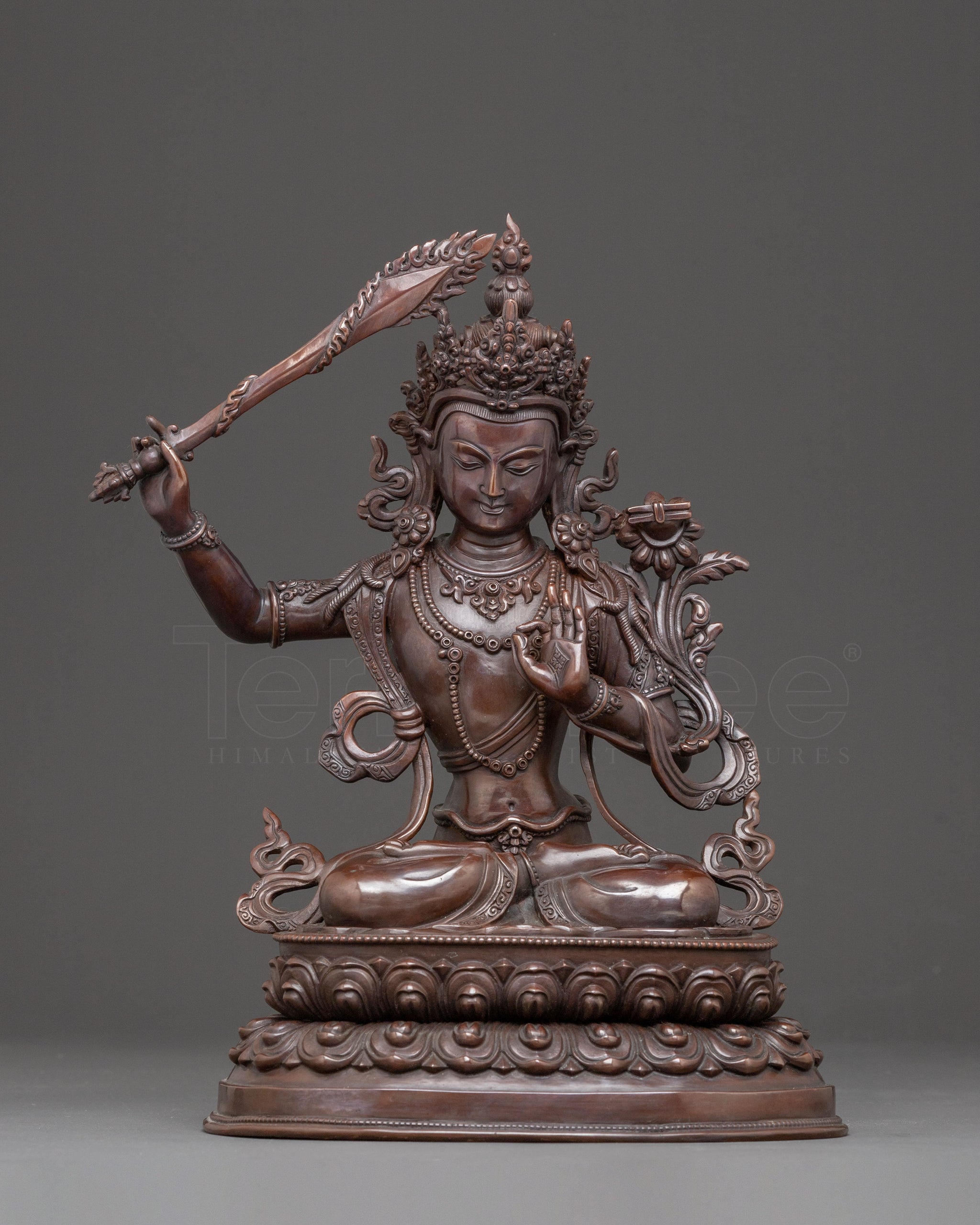 Oxidized Copper Manjushri Bodhisattva Statue | Wisdom Deity