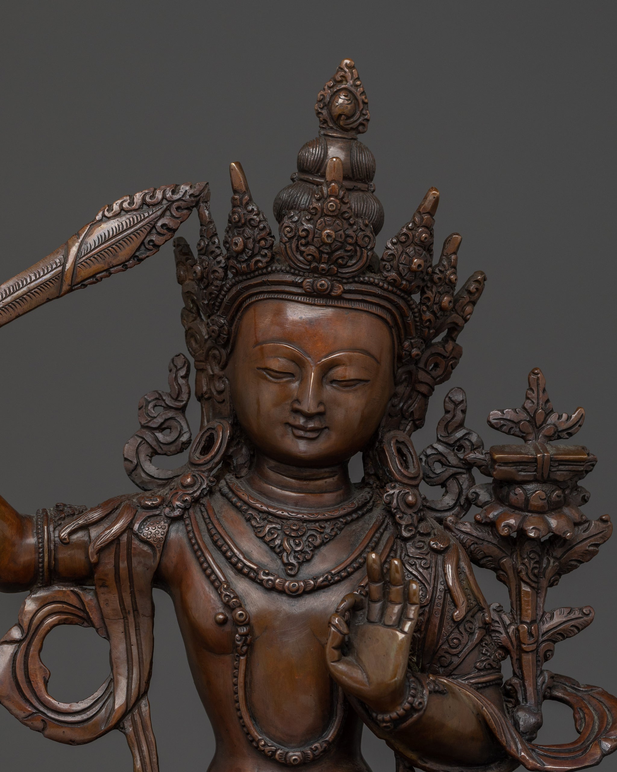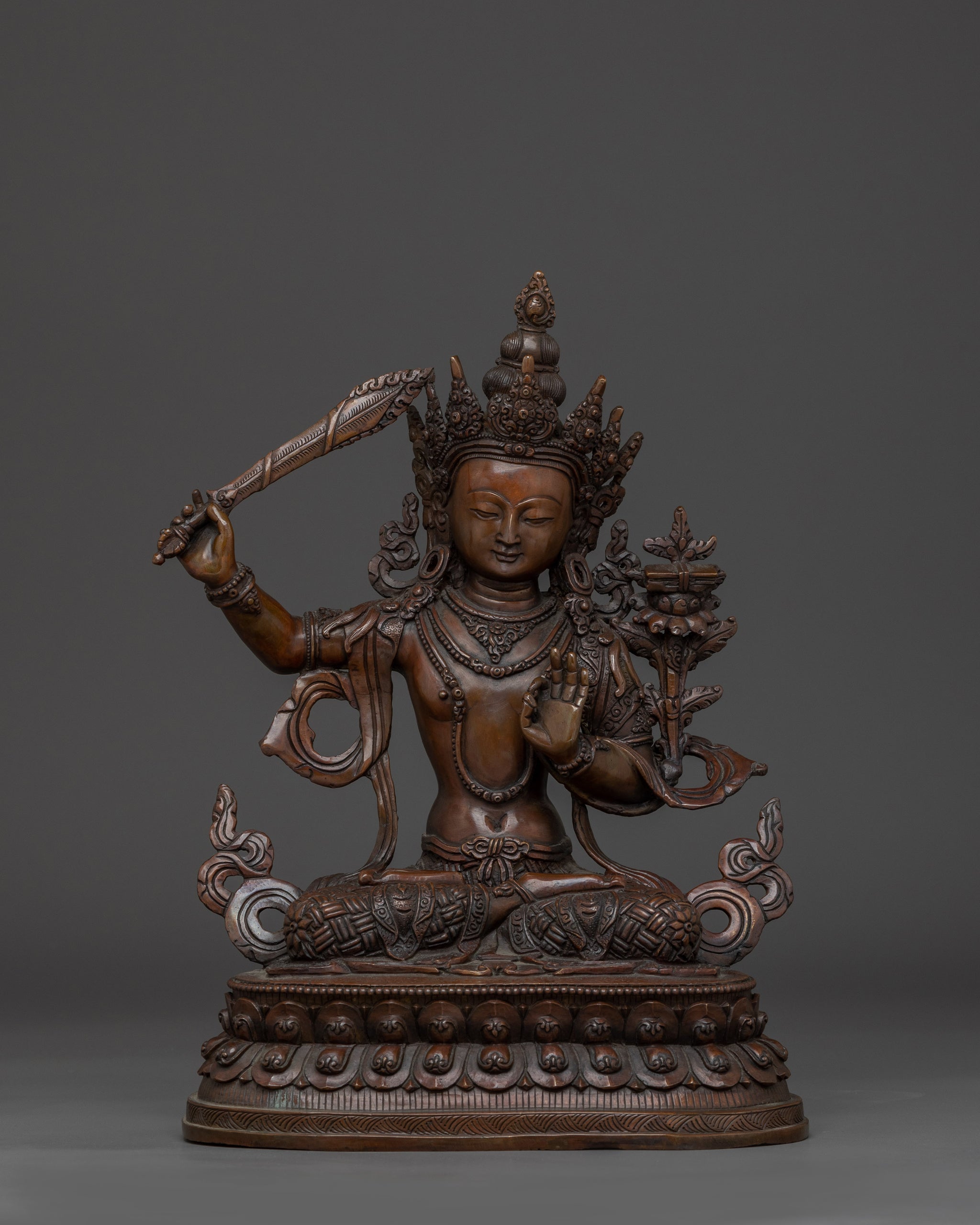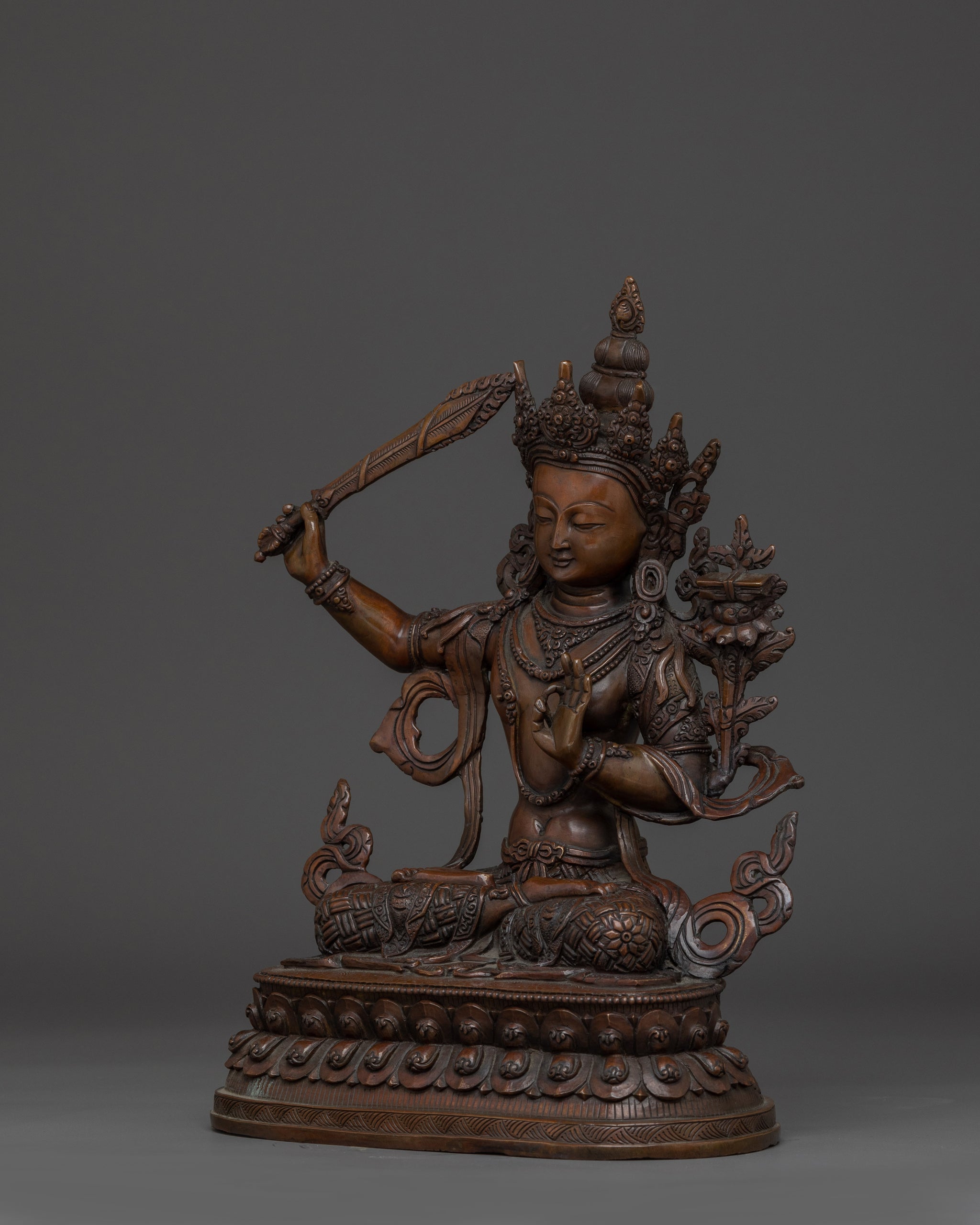 Handcrafted Oxidized copper Manjushri statue | Sculpture of the Bodhisattva of Wisdom