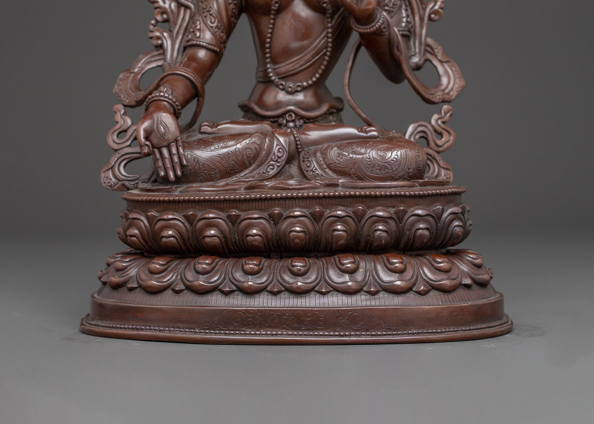 I just received my Amitayus copper statue, and I couldn't be more pleased. My appreciation goes out to the skilled artists at Termatree, and to Nima in particular, who helped me with the ordering process, taking care of a few special requests of mine. She was such a pleasure to work with. It was packaged with care, and arrived sooner than expected. He occupies a prominent position in my home, instilling a sense of peace within me. I couldn't be happier. Thanks again, Termatree!