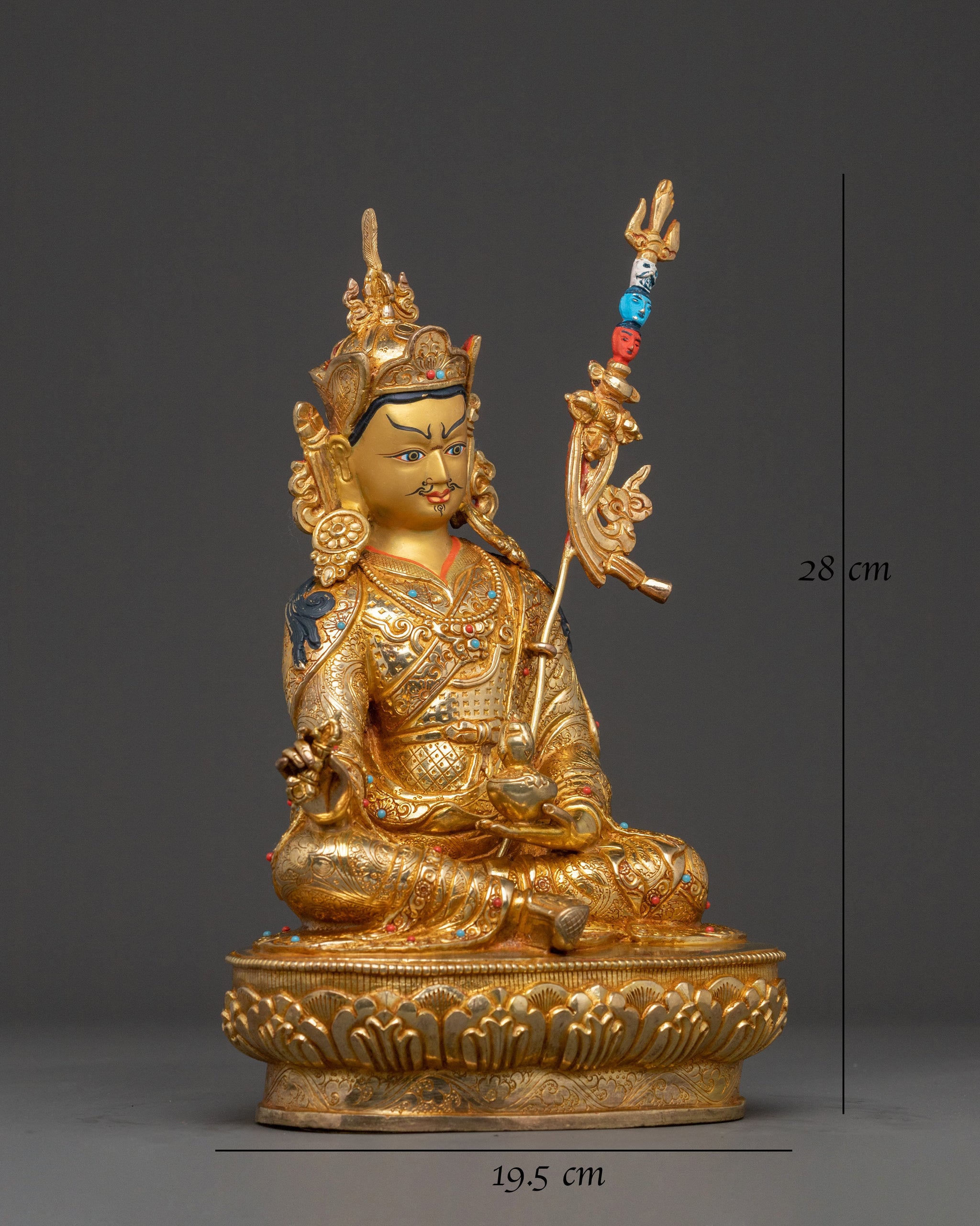Padmasambhava Mystic Master Statue: 24K Gold Gilded Copper
