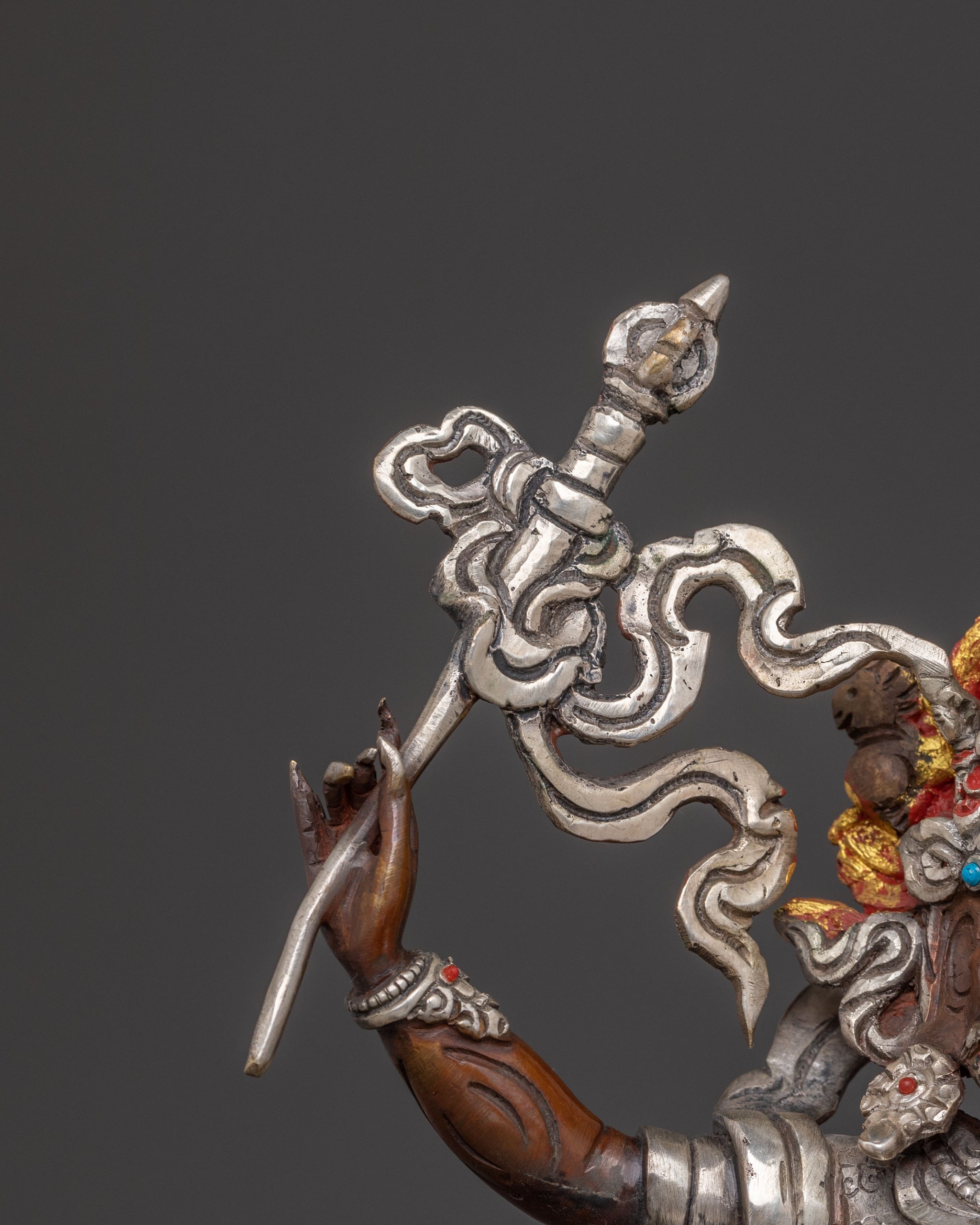 Mahakala Statue for Ritual and Meditation | Consort of Mahakali, the Fearsome God Mahakala Gerard Huber The statue of six-armed Mahakala is beautiful beyond my wildest imaginings for beauty, quality of craftsmanship, artistic insight, and overall presence in my life. I have given it "pride of place" in my artist studio and office.