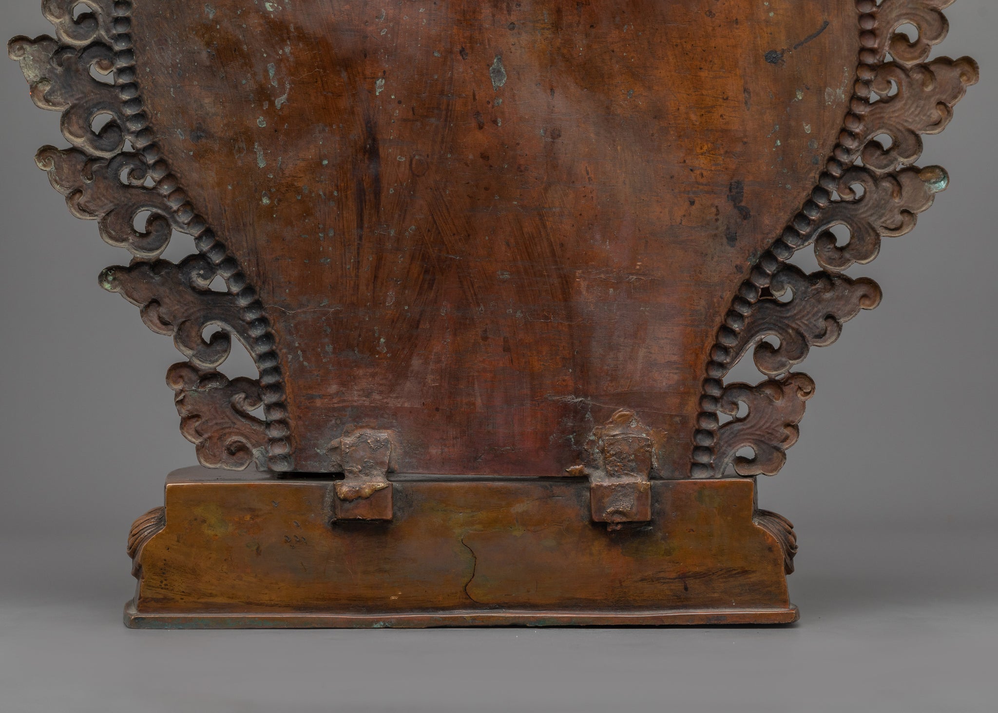 Vajrayogini is stunning. The details are amazing. It's easy to make out her facial expressions, skulls, feet, and the ring of fire around her. You can tell she's handmade. There is a consecration hole in her back.