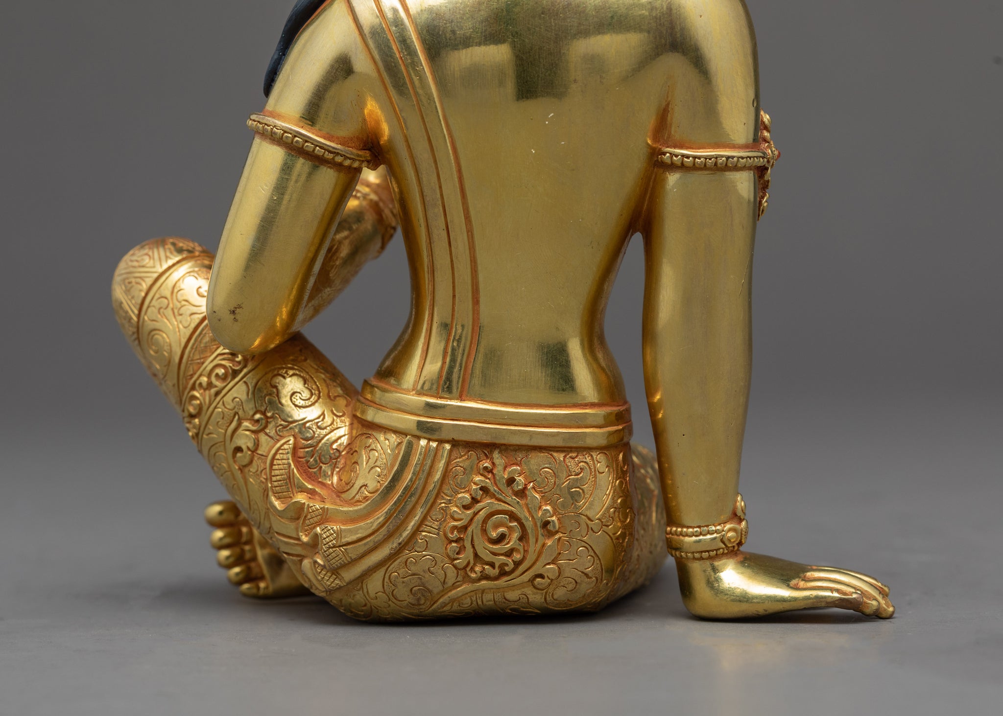 The Goddess Parvati Devi Statue was expertly carved by us in our studio from a body of pure copper, then painted with acrylic colors to highlight the statue's details. It was created by the most talented artisans in Kathmandu. The goddess is shown sitting with her legs crossed while her left leg is raised over her right and her right arm resting on on the ground. She has a serene and calm facial expression gilded with a pure 24k gold leaf. She wears hand-carved body ornaments with embedded gemstones. We can assure you that the statue was made from the best materials, will last for many years, and will make the ideal present for you.