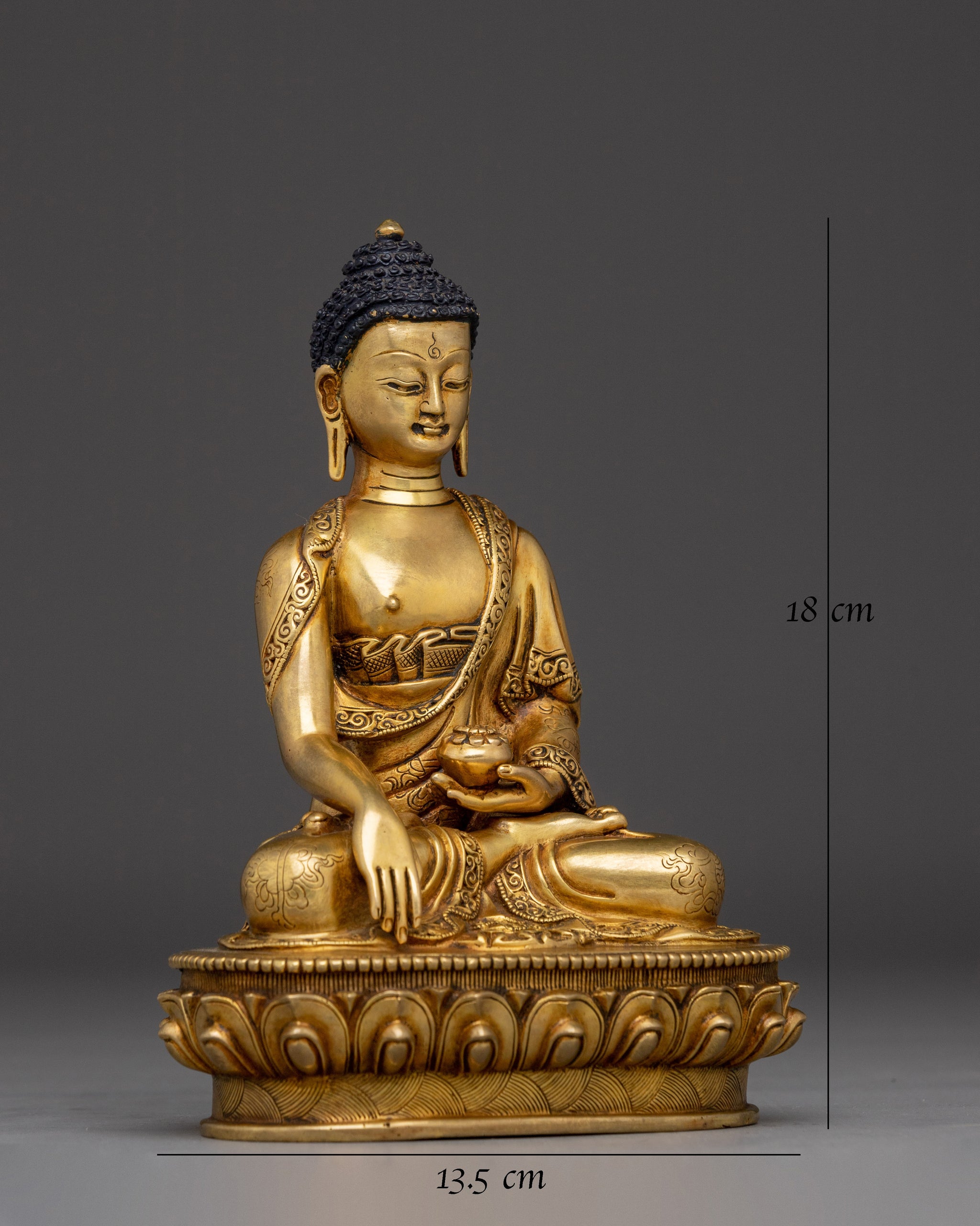 Peaceful Golden Shakyamuni Buddha Art | Himalayan Sculpture