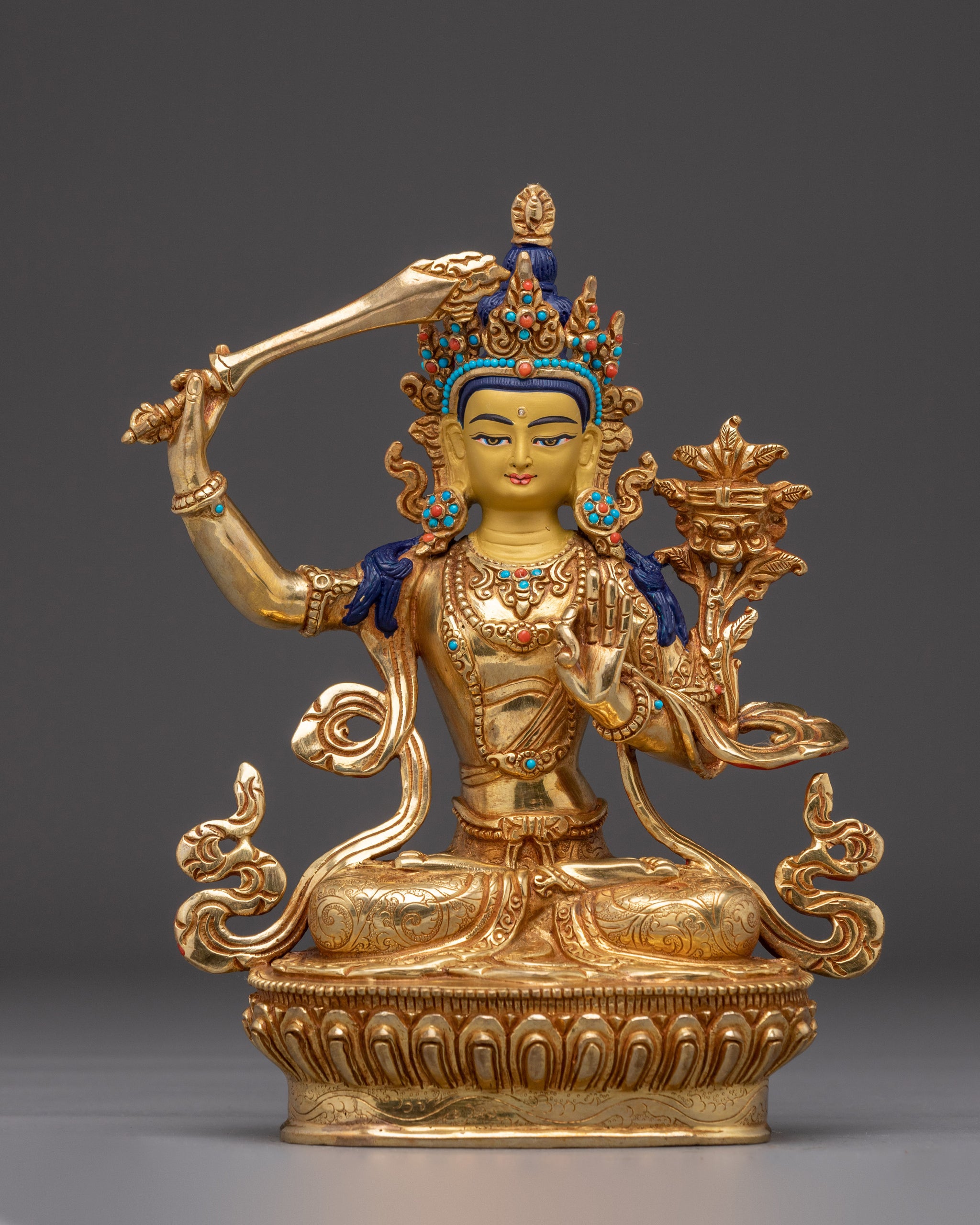 Prajna Bodhisattva Manjushri Sculpture | Wielder of the Flaming Sword