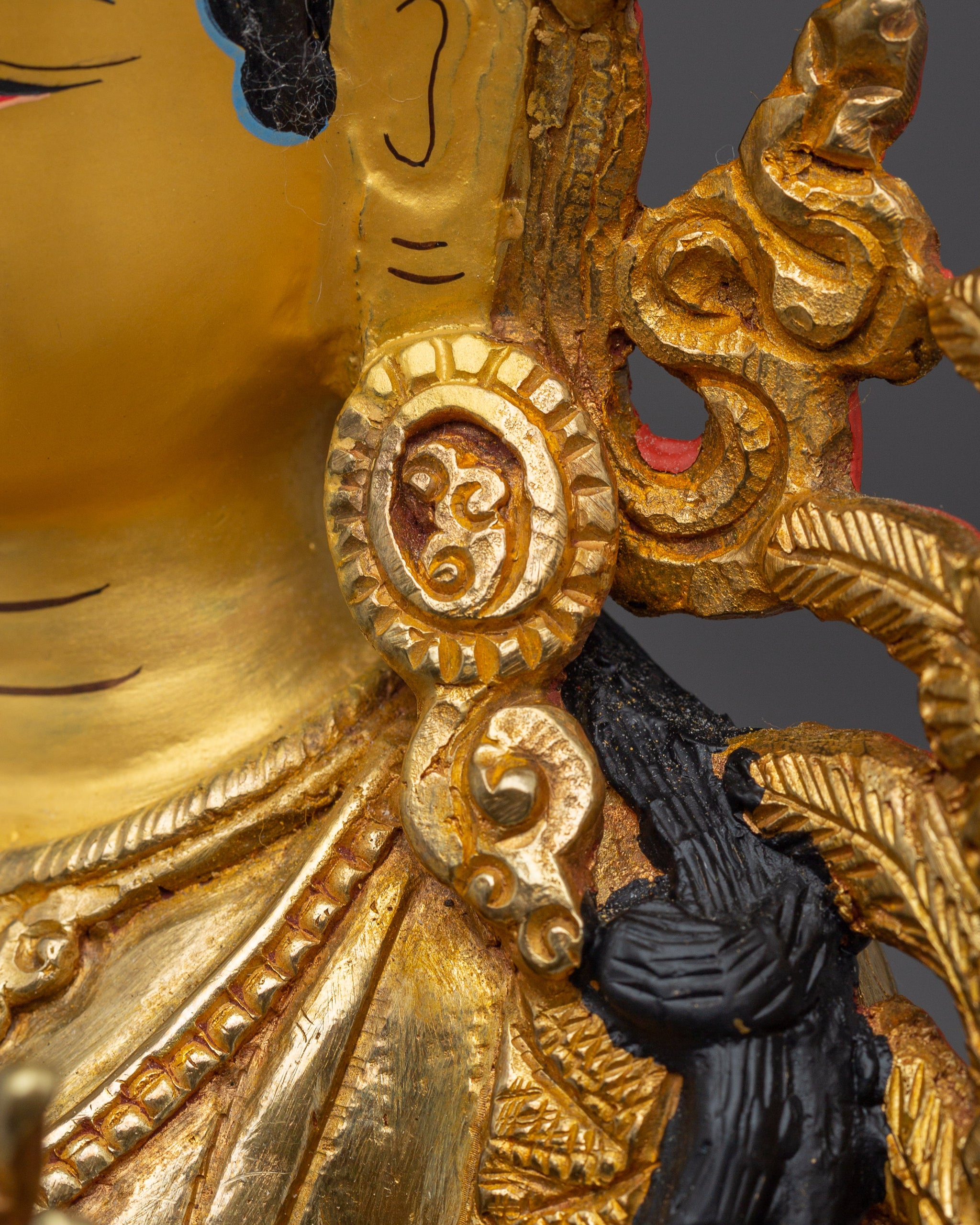 Vajrayogini is stunning. The details are amazing. It's easy to make out her facial expressions, skulls, feet, and the ring of fire around her. You can tell she's handmade. There is a consecration hole in her back.