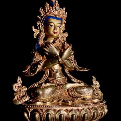 The Holder of the Thunderbolt, Vajradhara, represents the ultimate Buddha nature and embodies the essence of Tantric Buddhism. Vajradhara, seated in intense meditation, represents the unchanging, indestructible attributes of wisdom and compassion. This statue connects believers to the primal essence of Buddhism, making it an important element for thought and meditation.