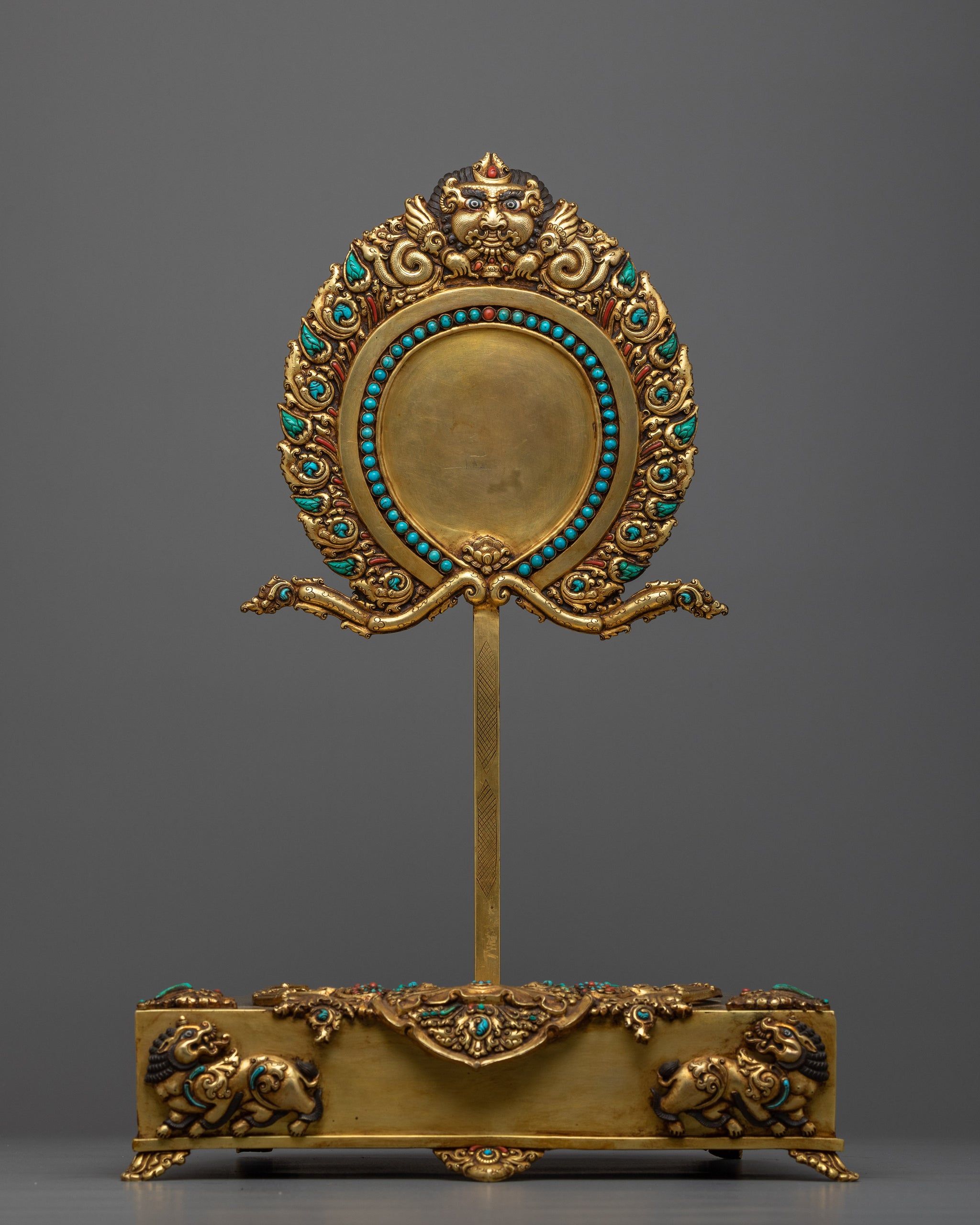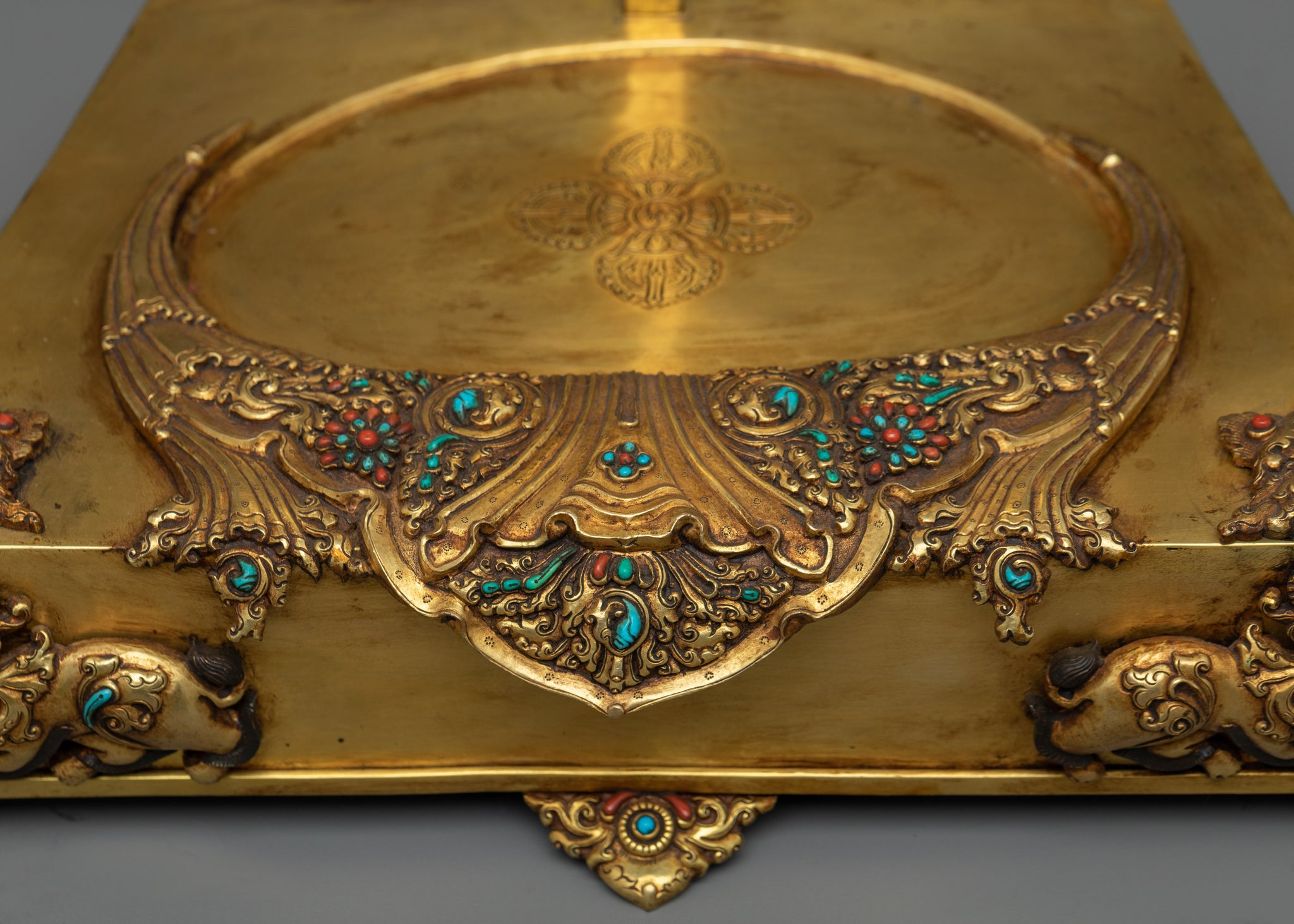Material: 24k Gold Gilded, 24k Gold and acrylic Paintings, Hand Carved Gemstone, Copper Body, Antique Finished