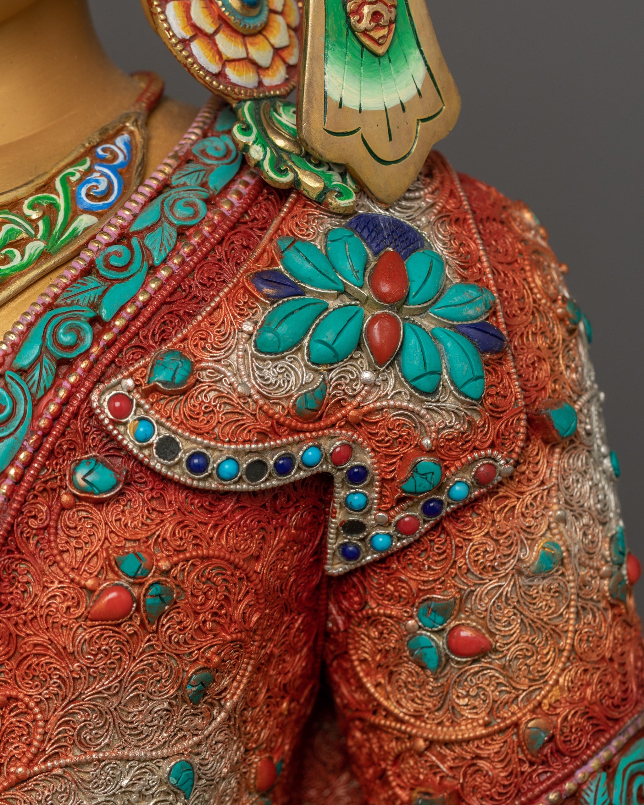 The statue is very beautiful. The craftsman who crafted it clearly shows the care and heart he put into it. It is a true dharma jewel on the altar. Shipping was quick, considering the recent events in Nepal. It was carefully packed and filled in a wooden box. If you're buying for shipping to the European Union, please note that customs duties on items from outside the EU are as high as 23 percent of the value.