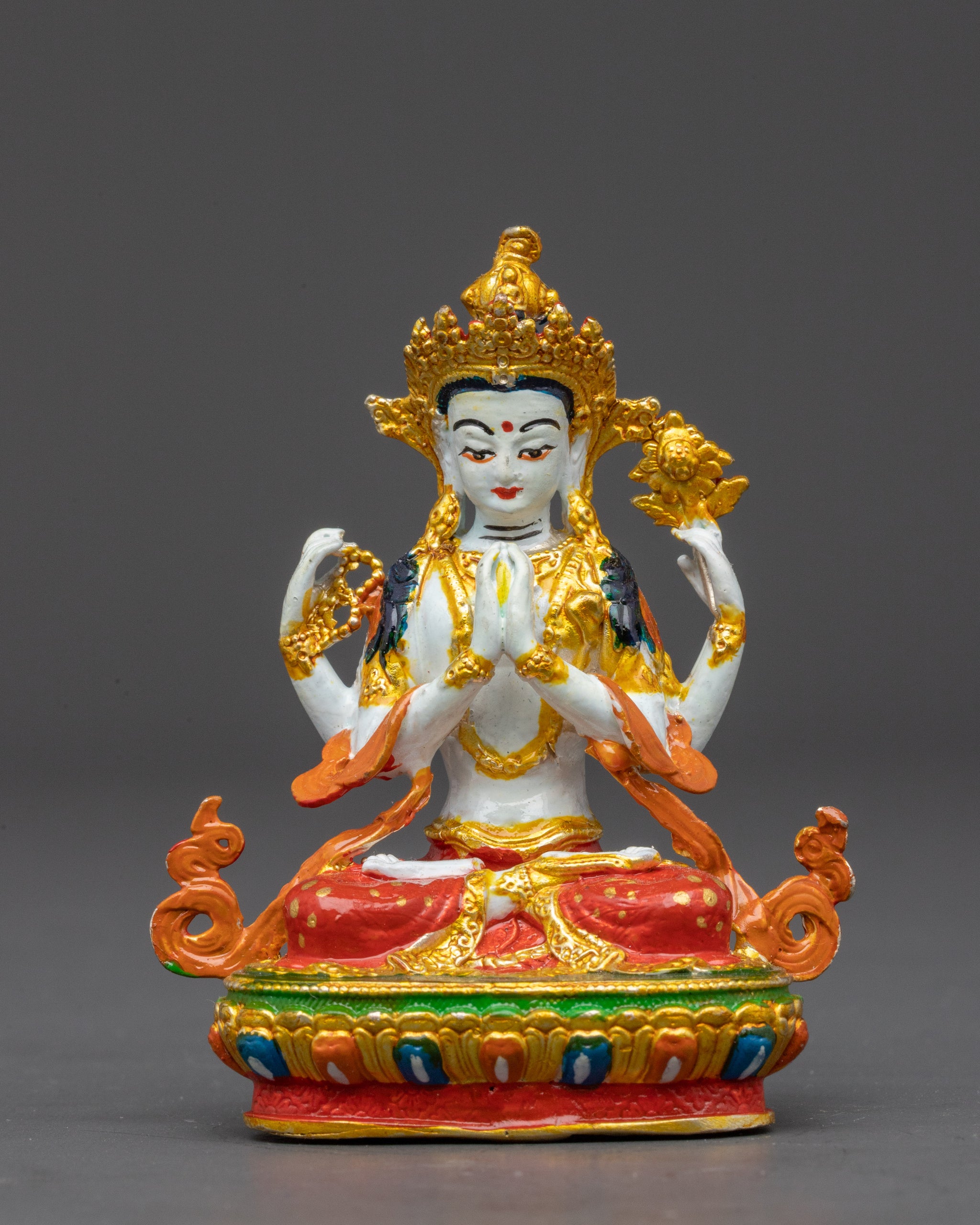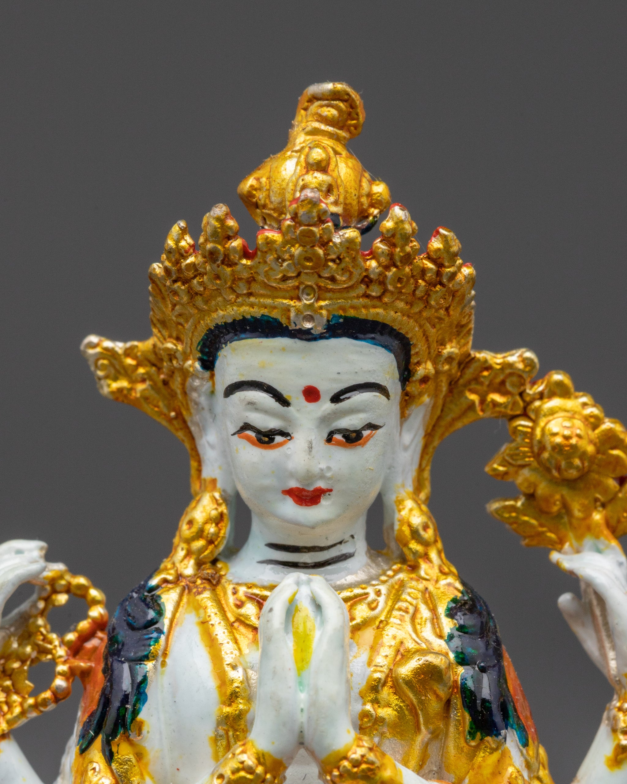 Compassionate Sacred Chenrezig Figurine | 2.8 Inches Gold Electroplated Statue