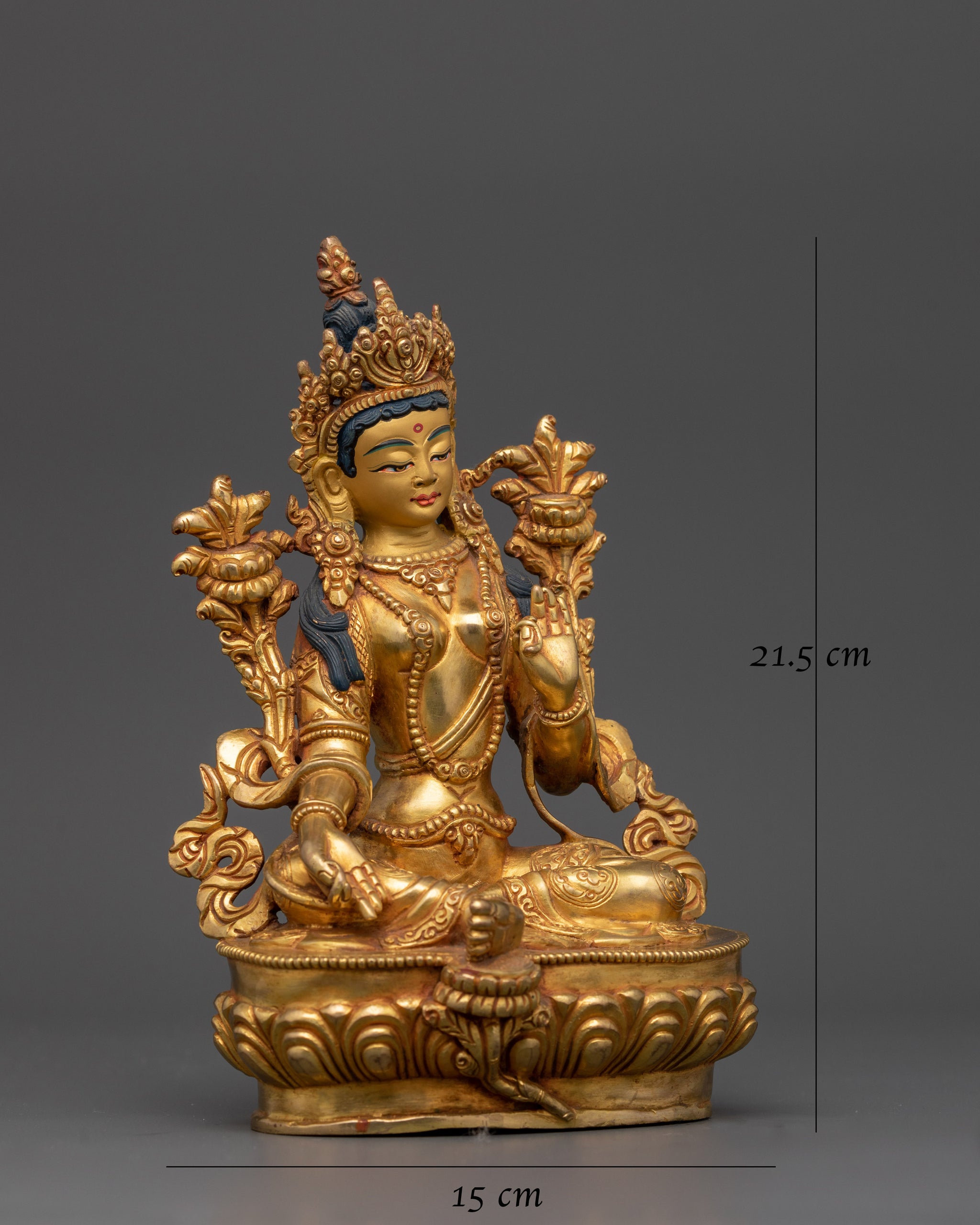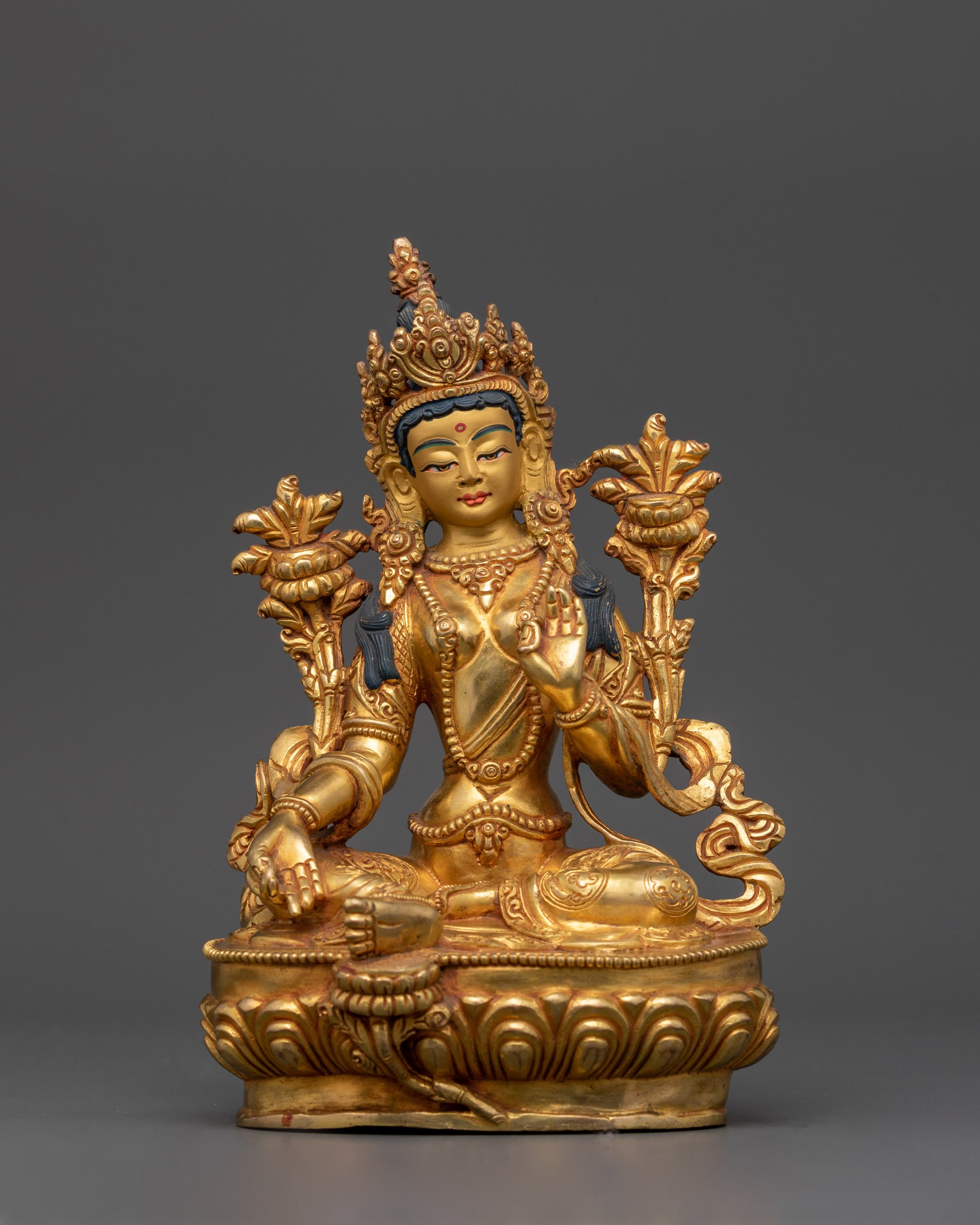 Sacred Green Tara Statue | Handcrafted 24K Gold Gilded Copper Sculpture