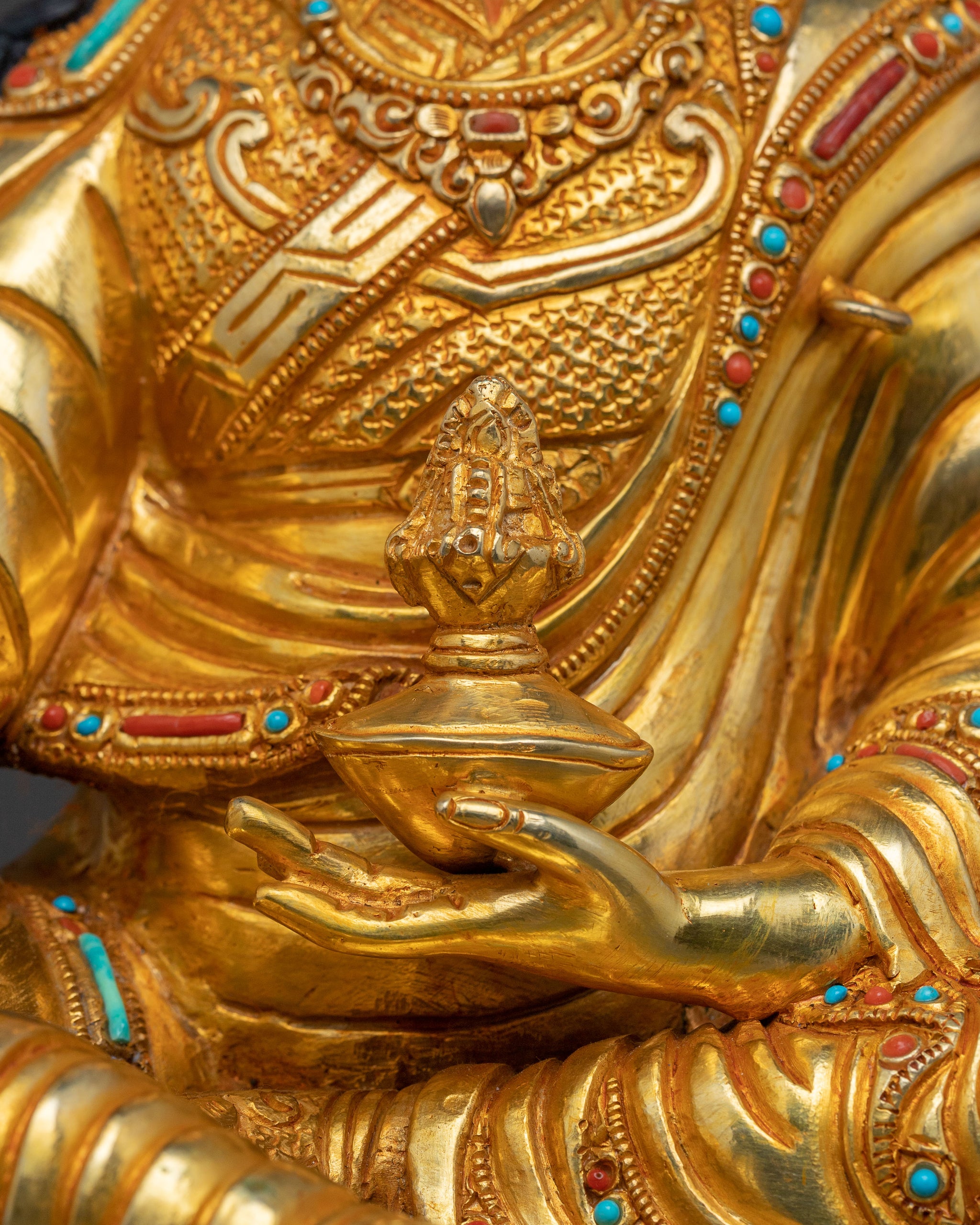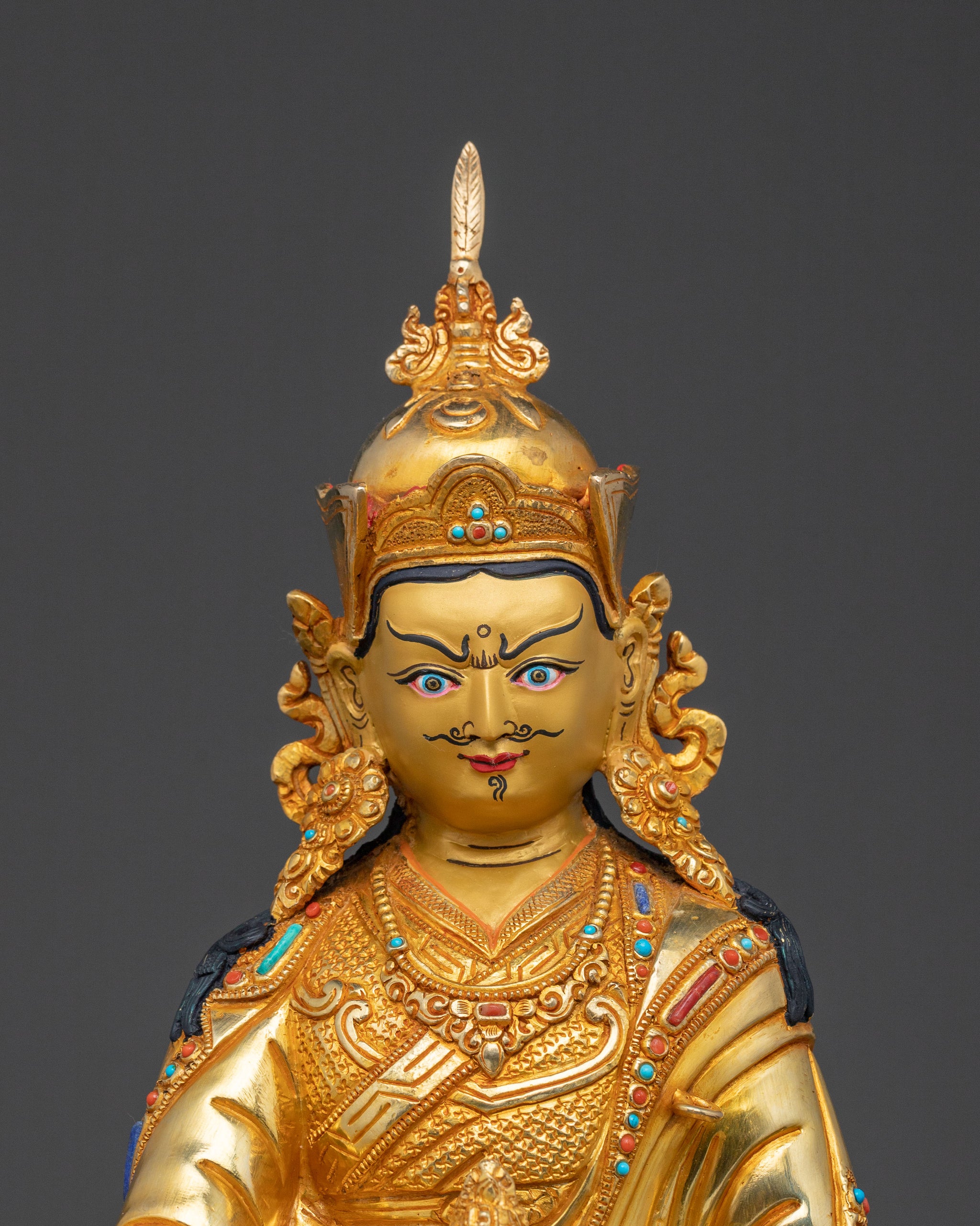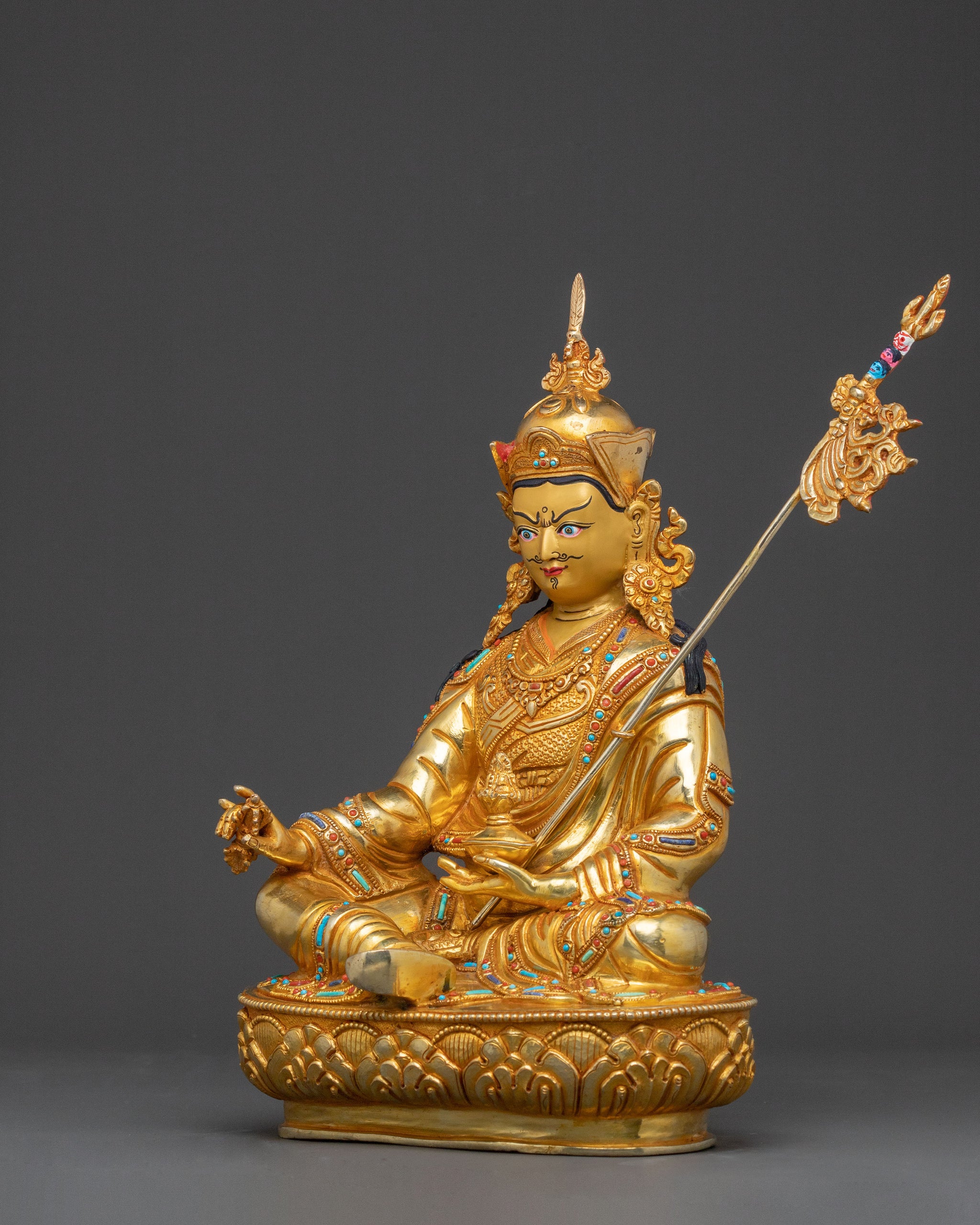 Sacred Guru Rinpoche Statue of Wisdom, Gilded Copper