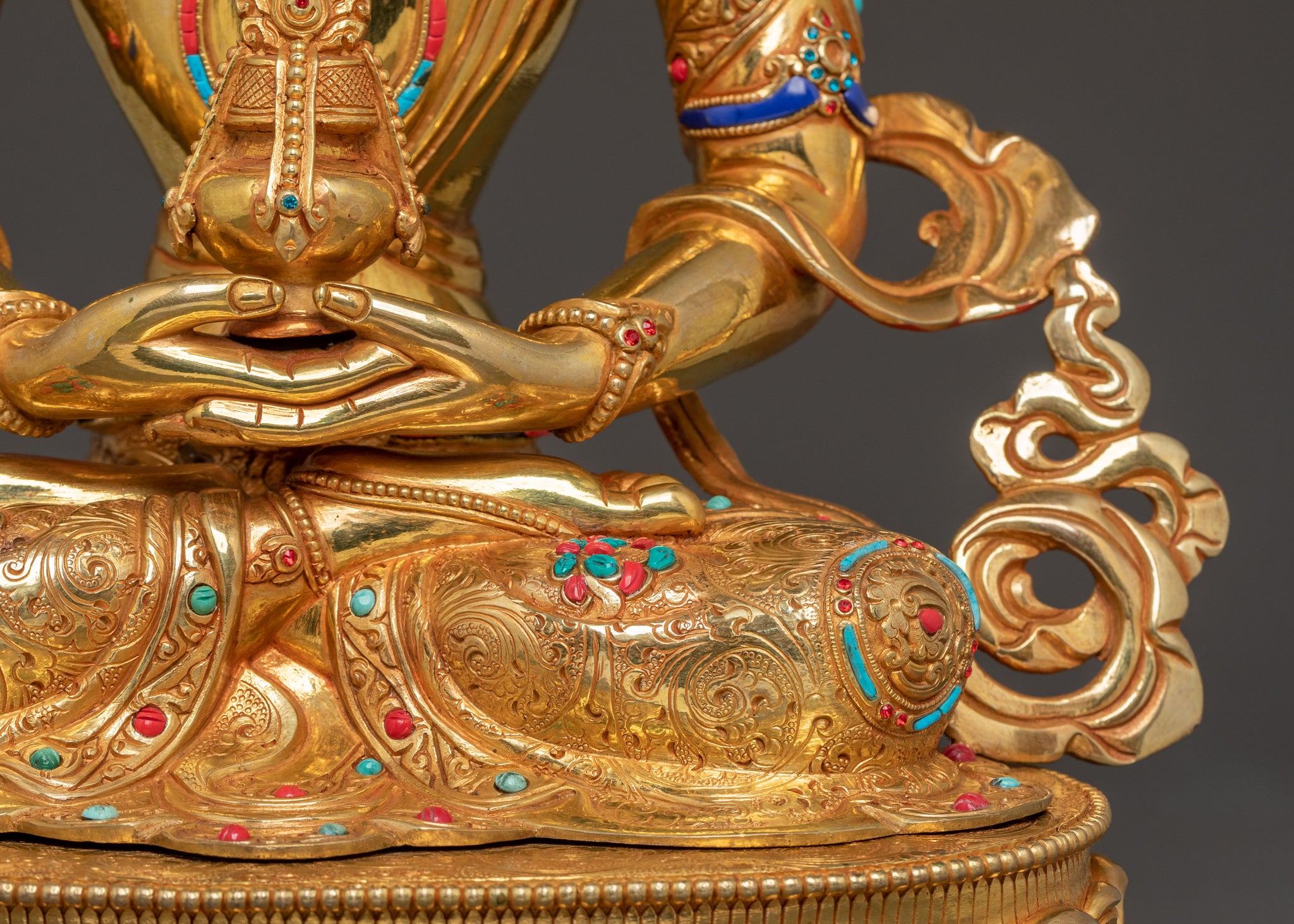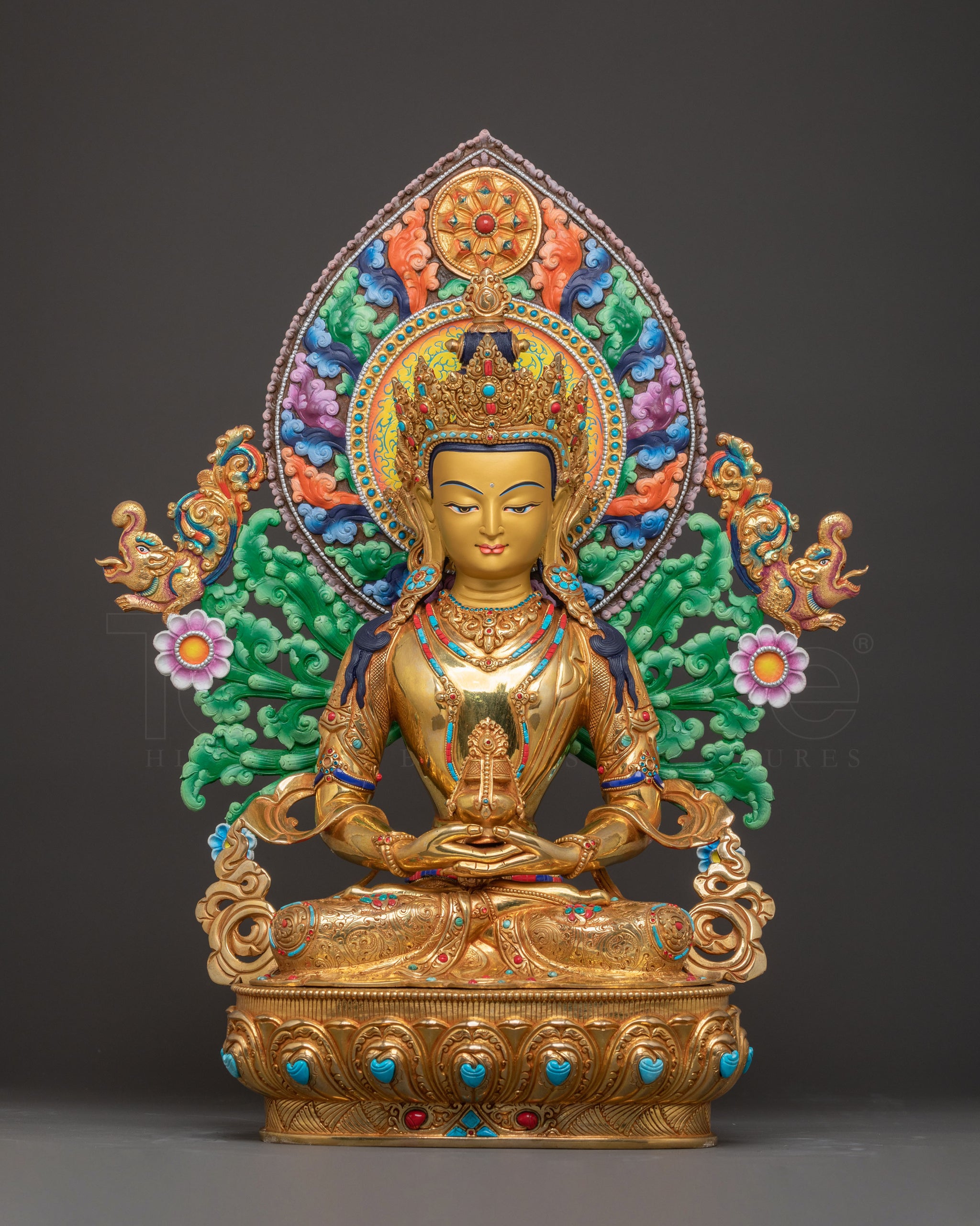Sacred Long Life Deity Amitayus – Exquisite 24K Gold Gilded Statue