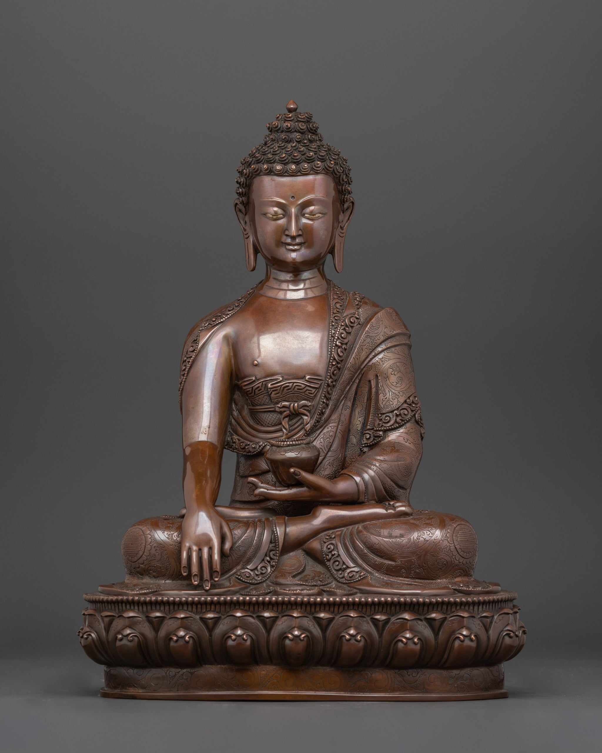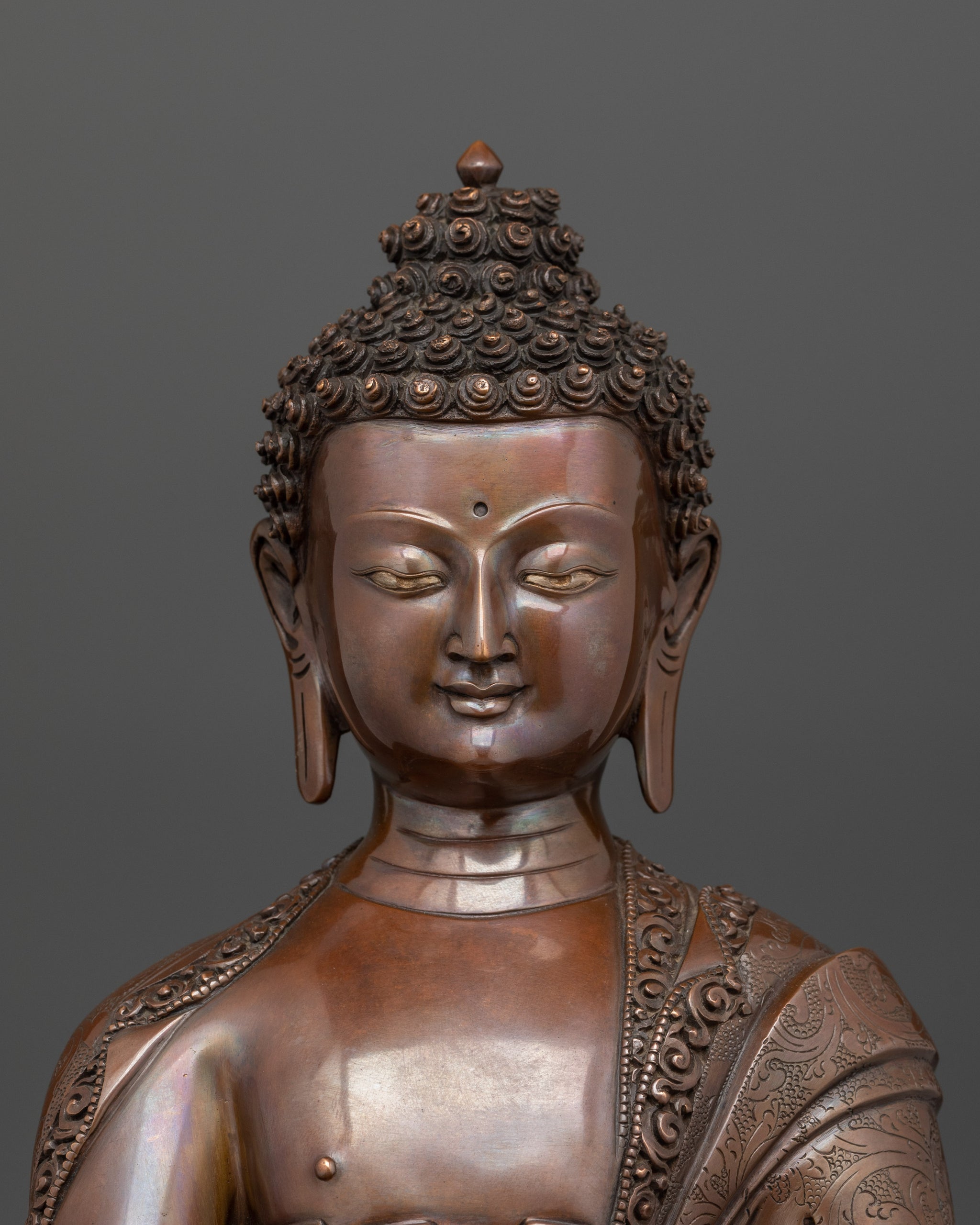 Sacred Shakyamuni Buddha Figurine | Oxidized Copper Buddhist Statue