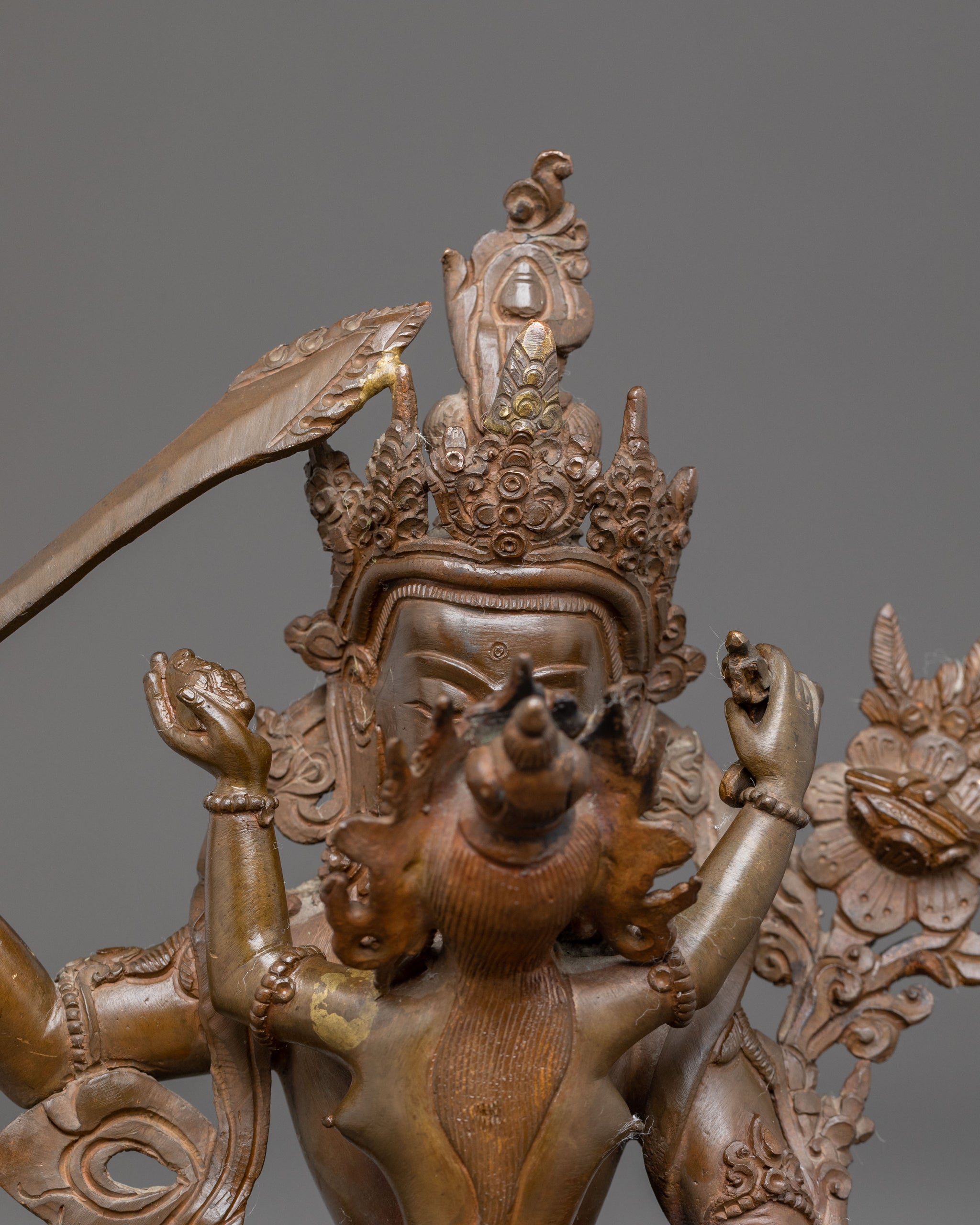 Sacred Statue of Manjushri with Consort | Antique Oxidized Copper