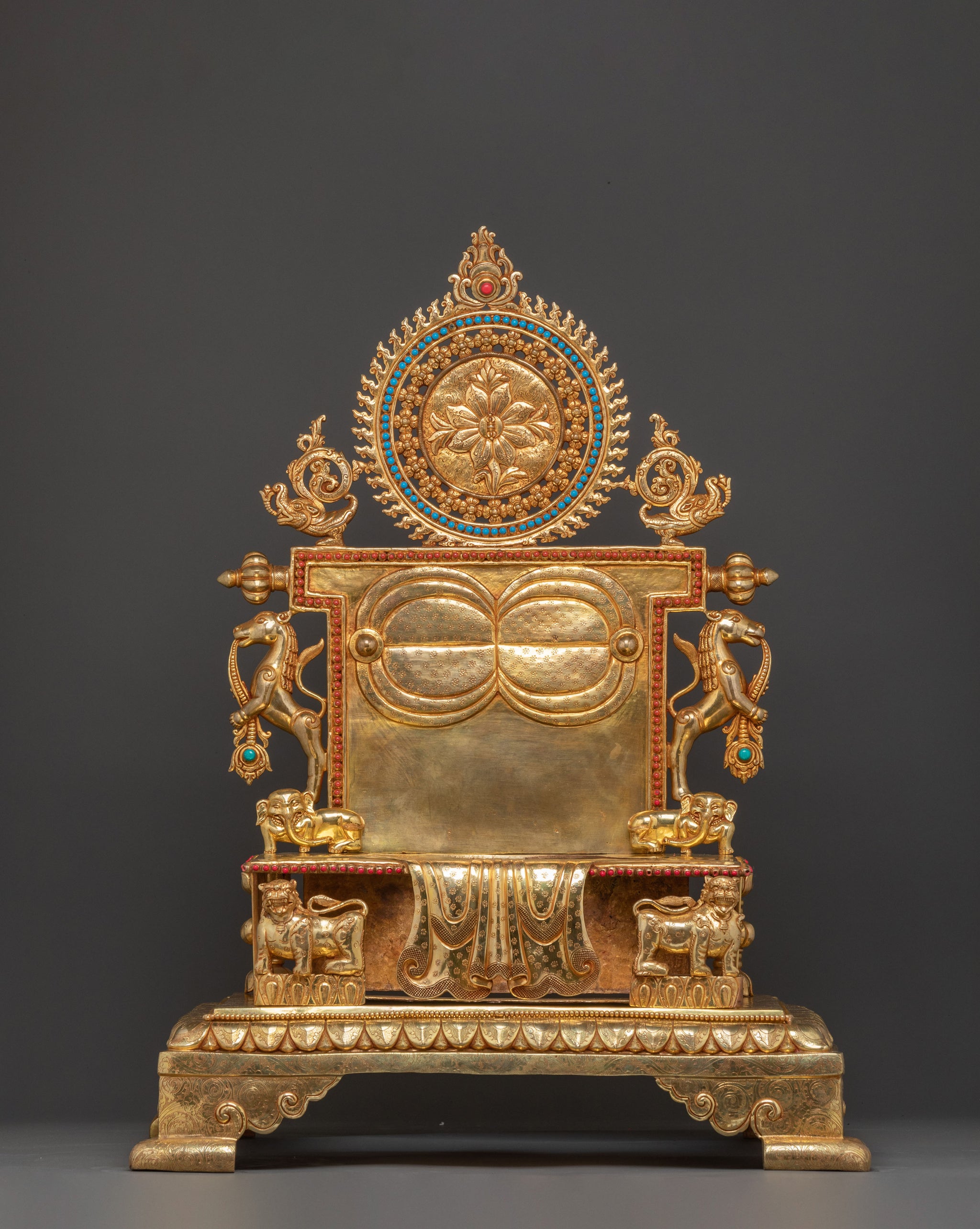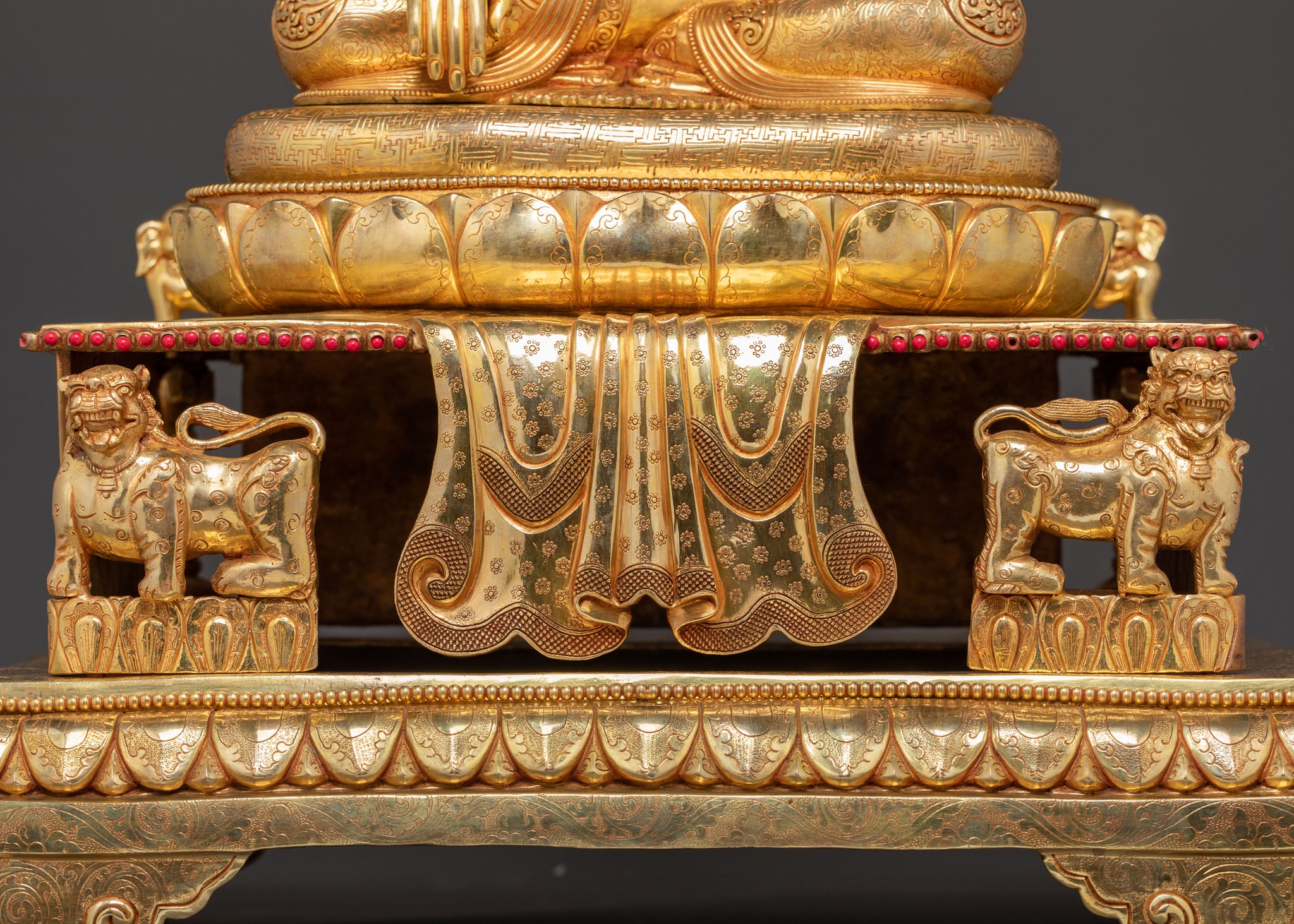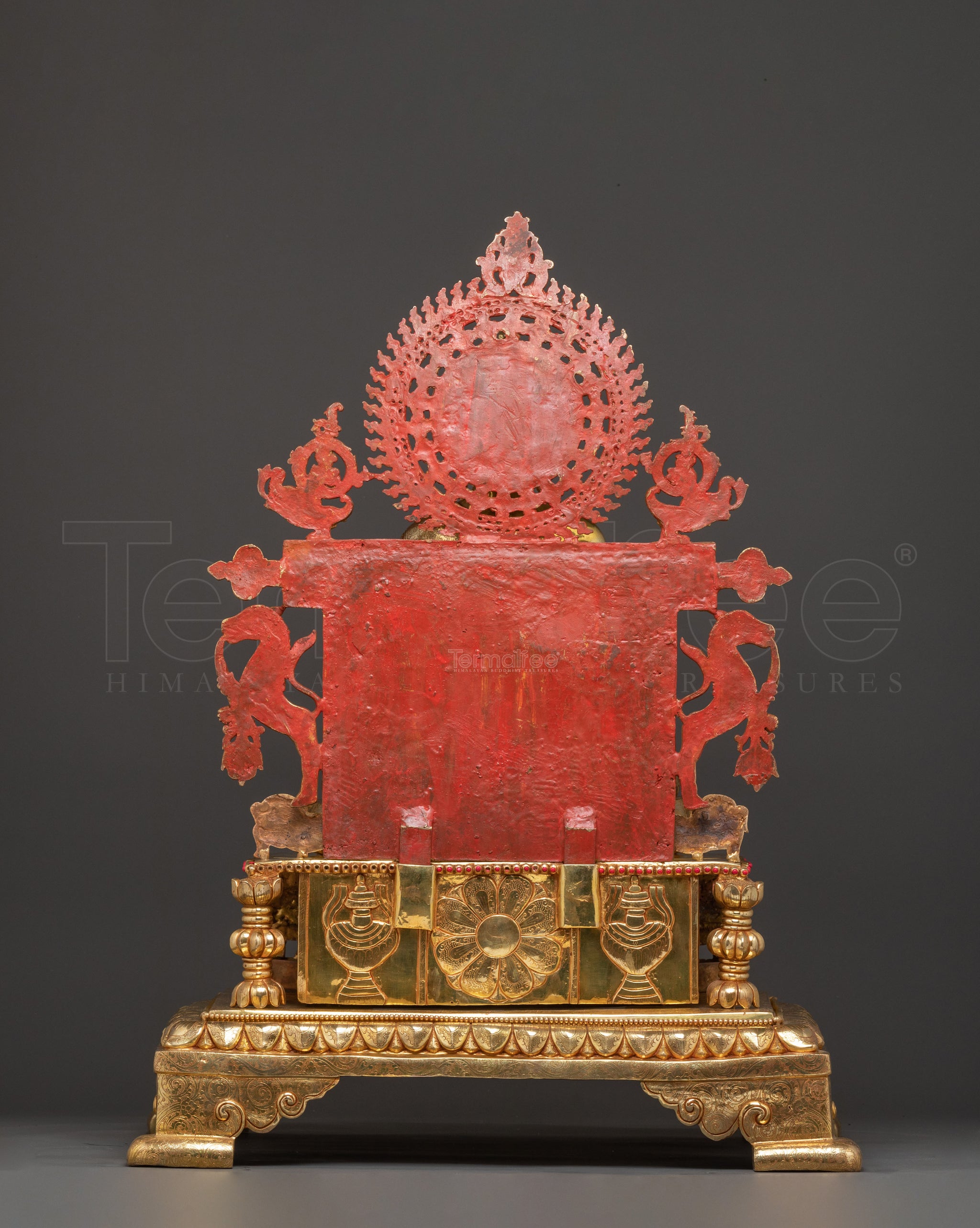 Sacred Statue of Shakyamuni Buddha in Throne – 24K Gold Gilded Artistry