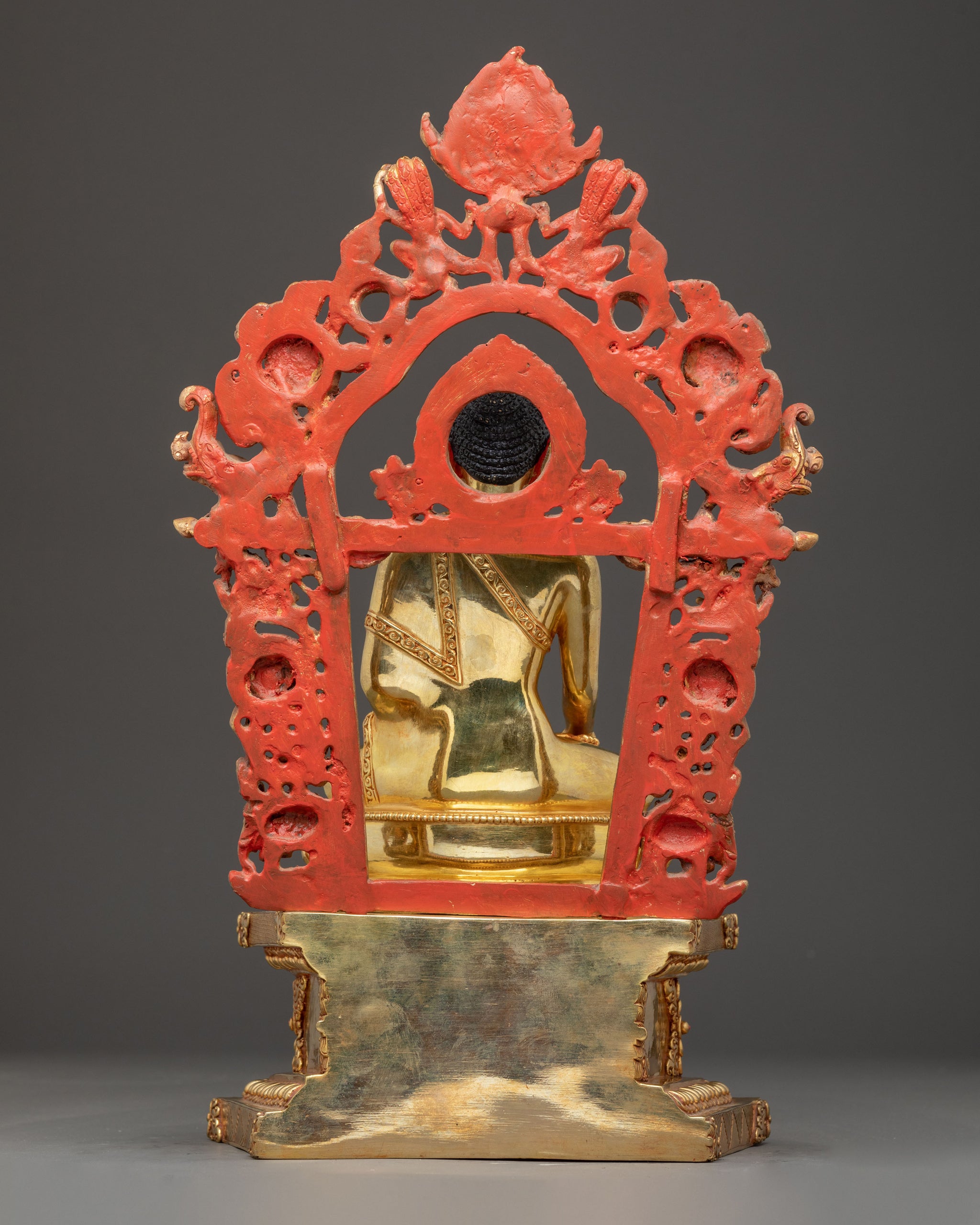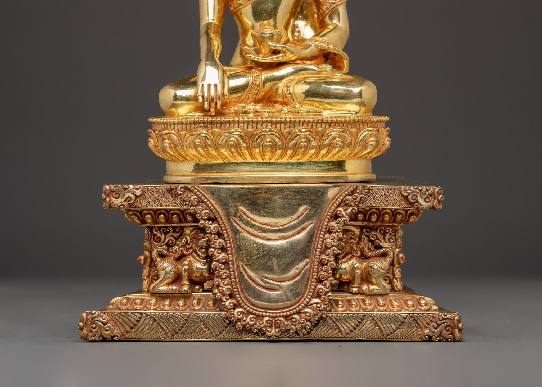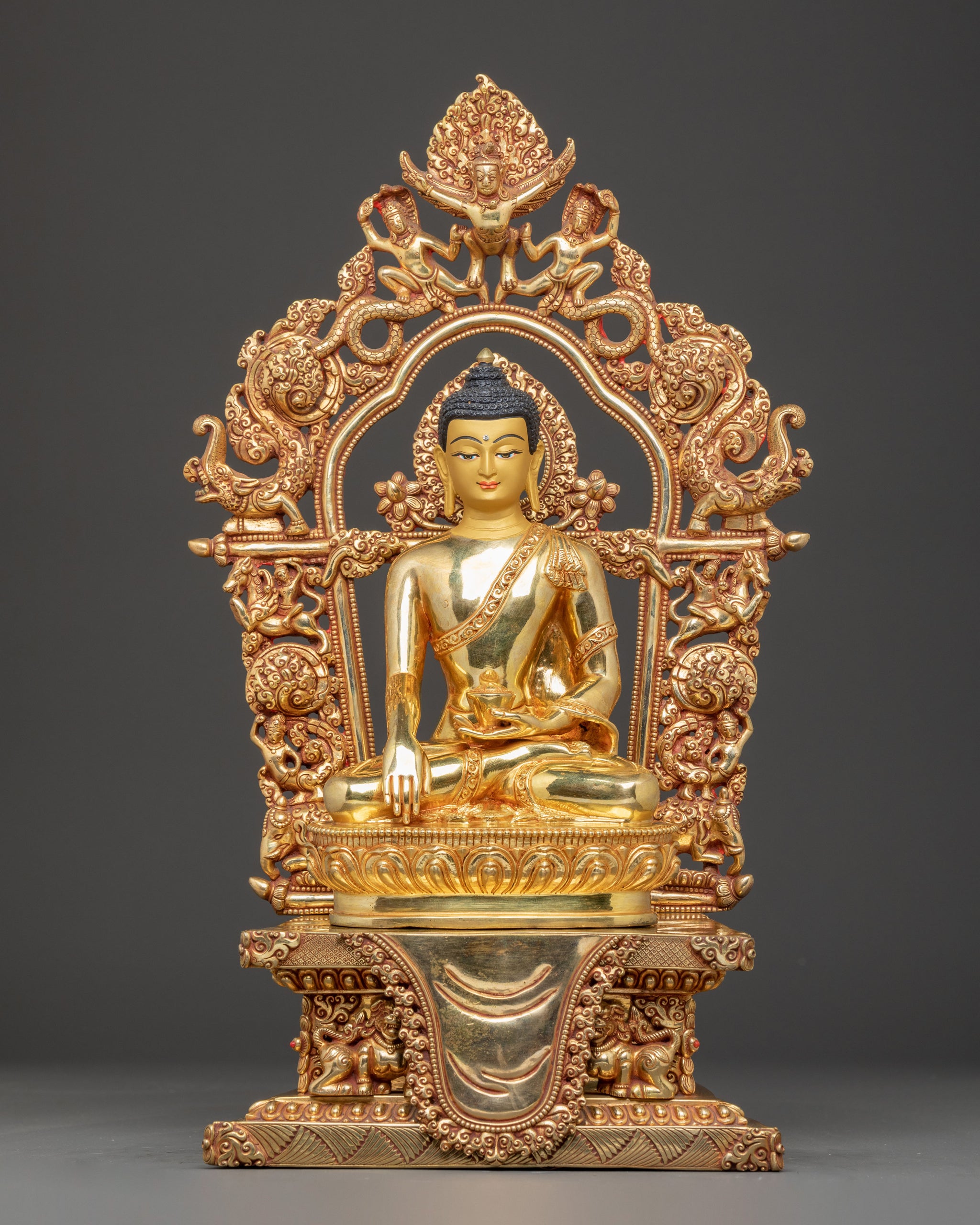 Handcrafted Sacred Statue of Shakyamuni Buddha on Throne | Peaceful Deity