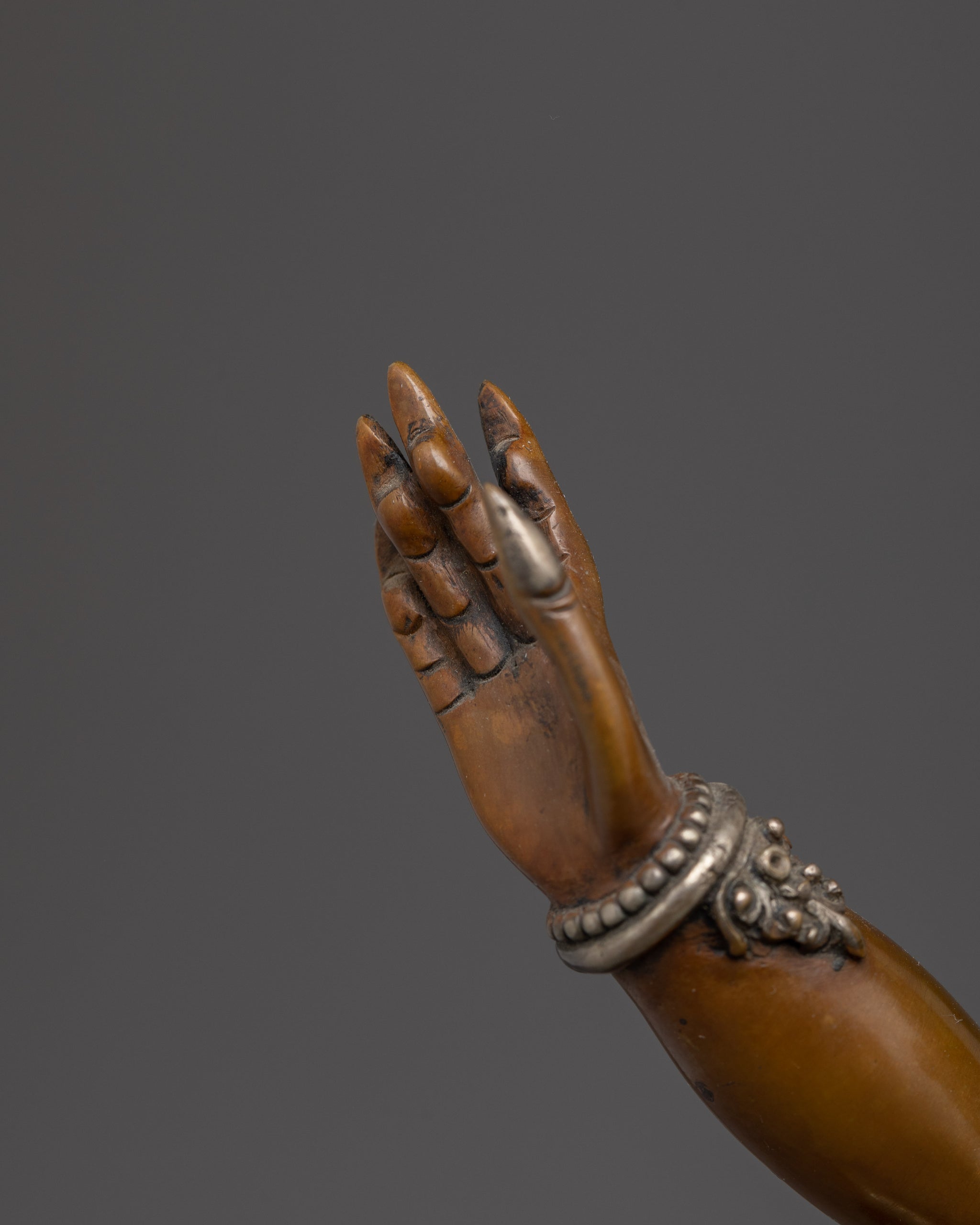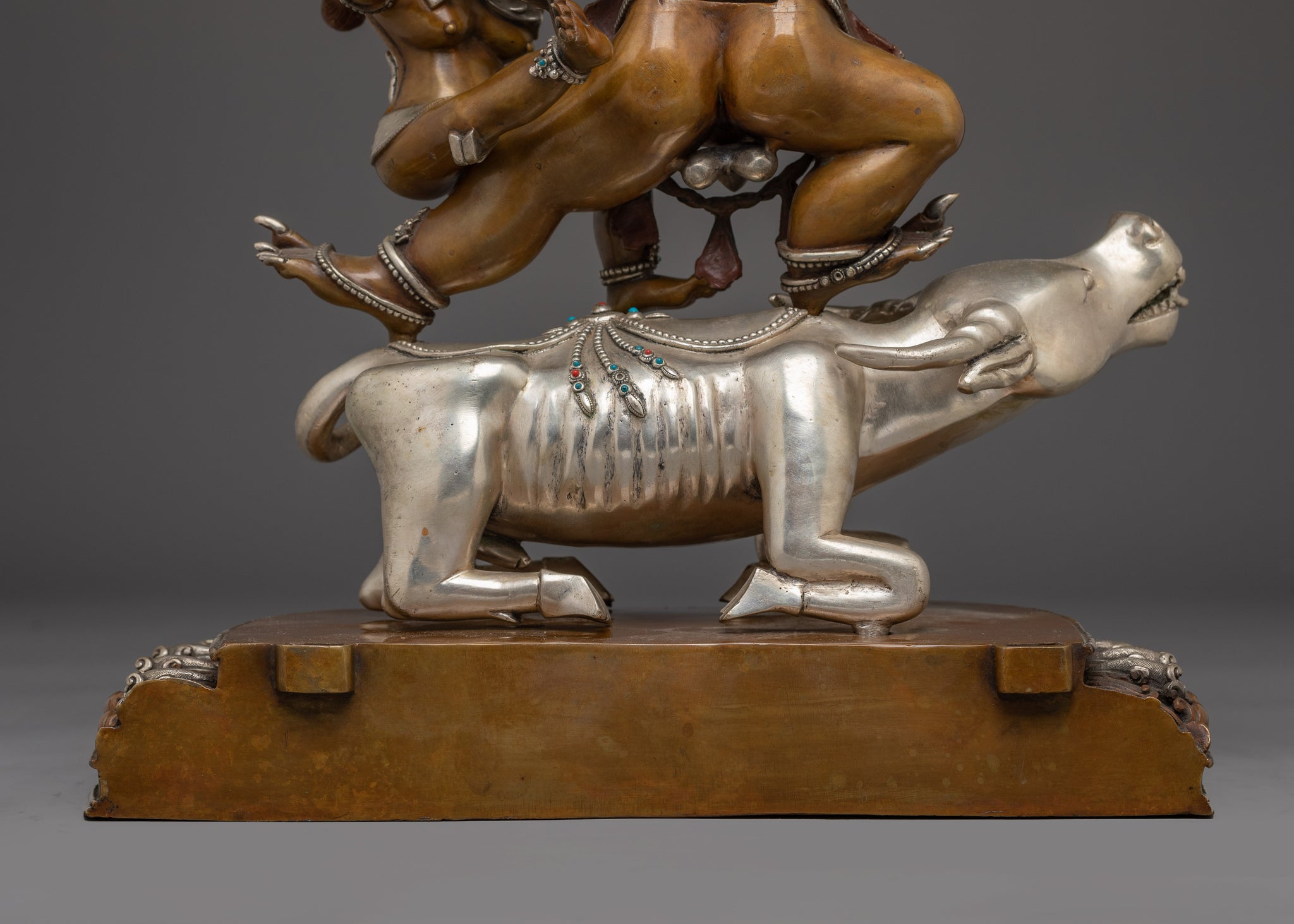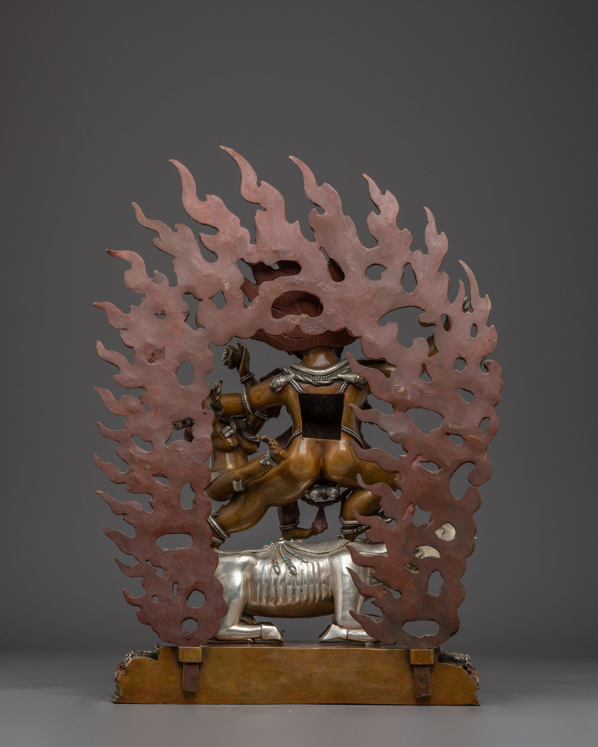 Vajrayogini is stunning. The details are amazing. It's easy to make out her facial expressions, skulls, feet, and the ring of fire around her. You can tell she's handmade. There is a consecration hole in her back.