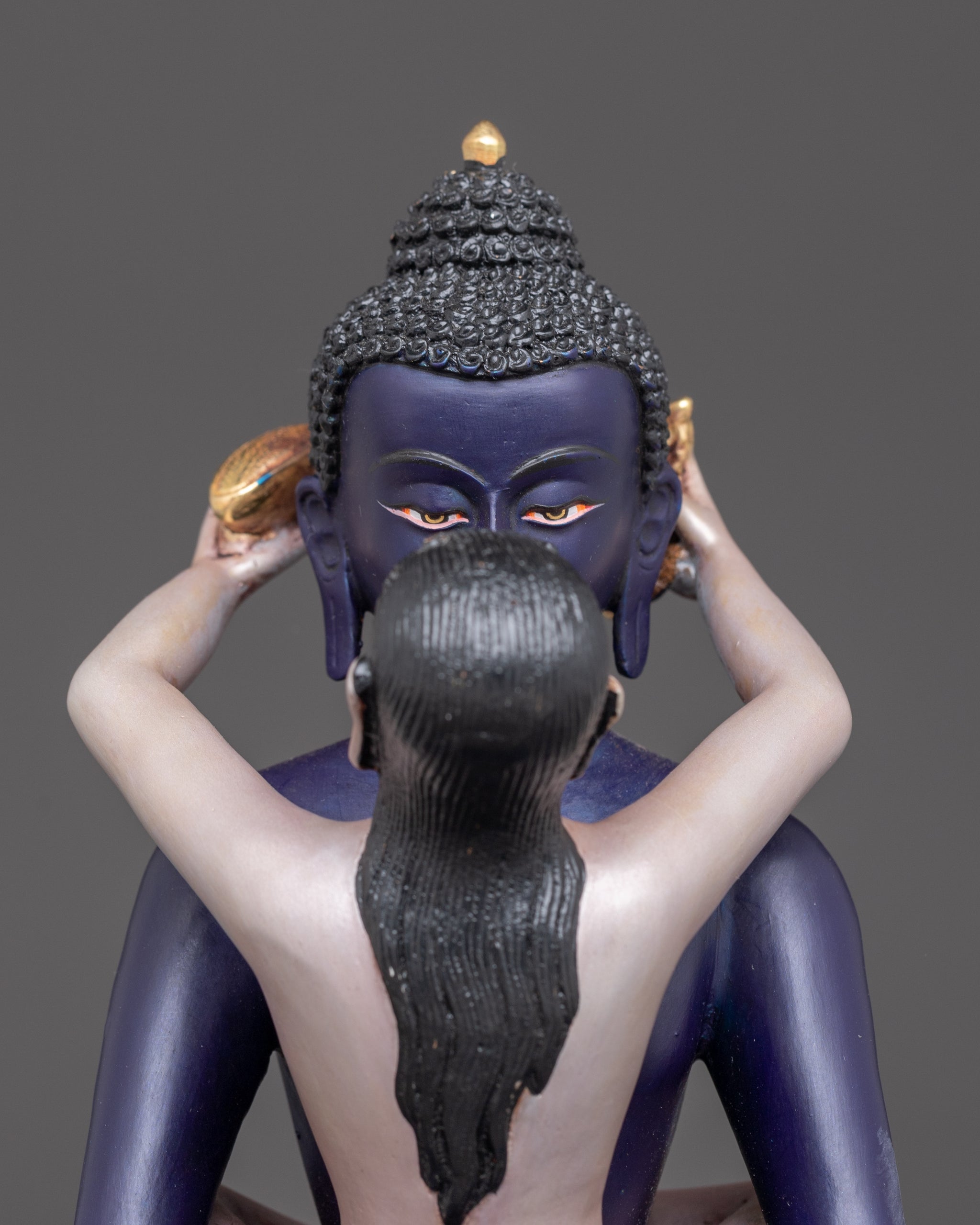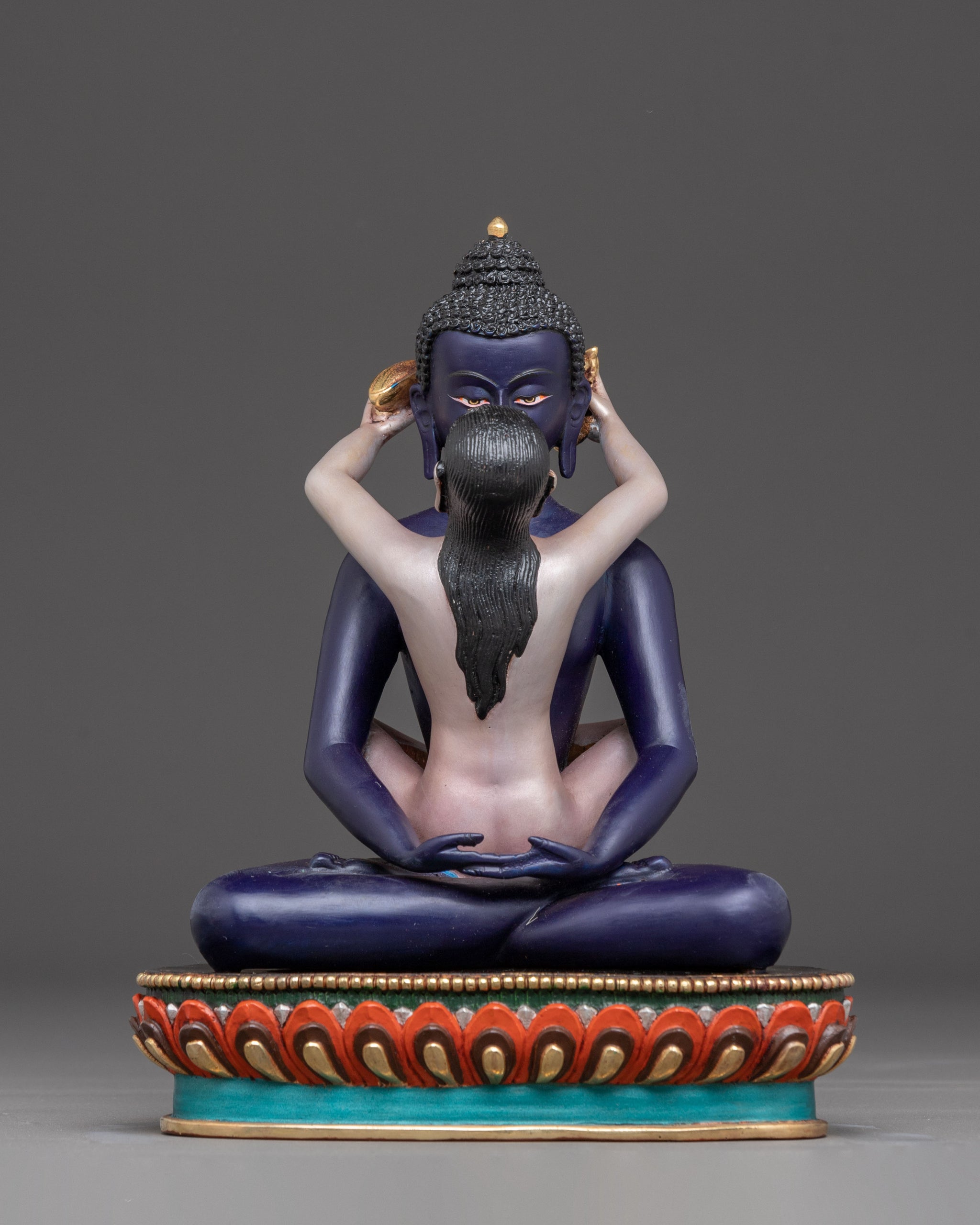 He holds his consort in his arms in a loving embrace, signifying the inseparable nature of wisdom and compassion. His tranquil visage and regal stance represent his role as a Dhyani Buddha, radiating clarity and inner peace. He sits atop a lotus throne, symbolizing purity and spiritual enlightenment. This statue is ideal for meditation rooms, altars, or holy collections since it serves as a reminder of the road to ultimate enlightenment.