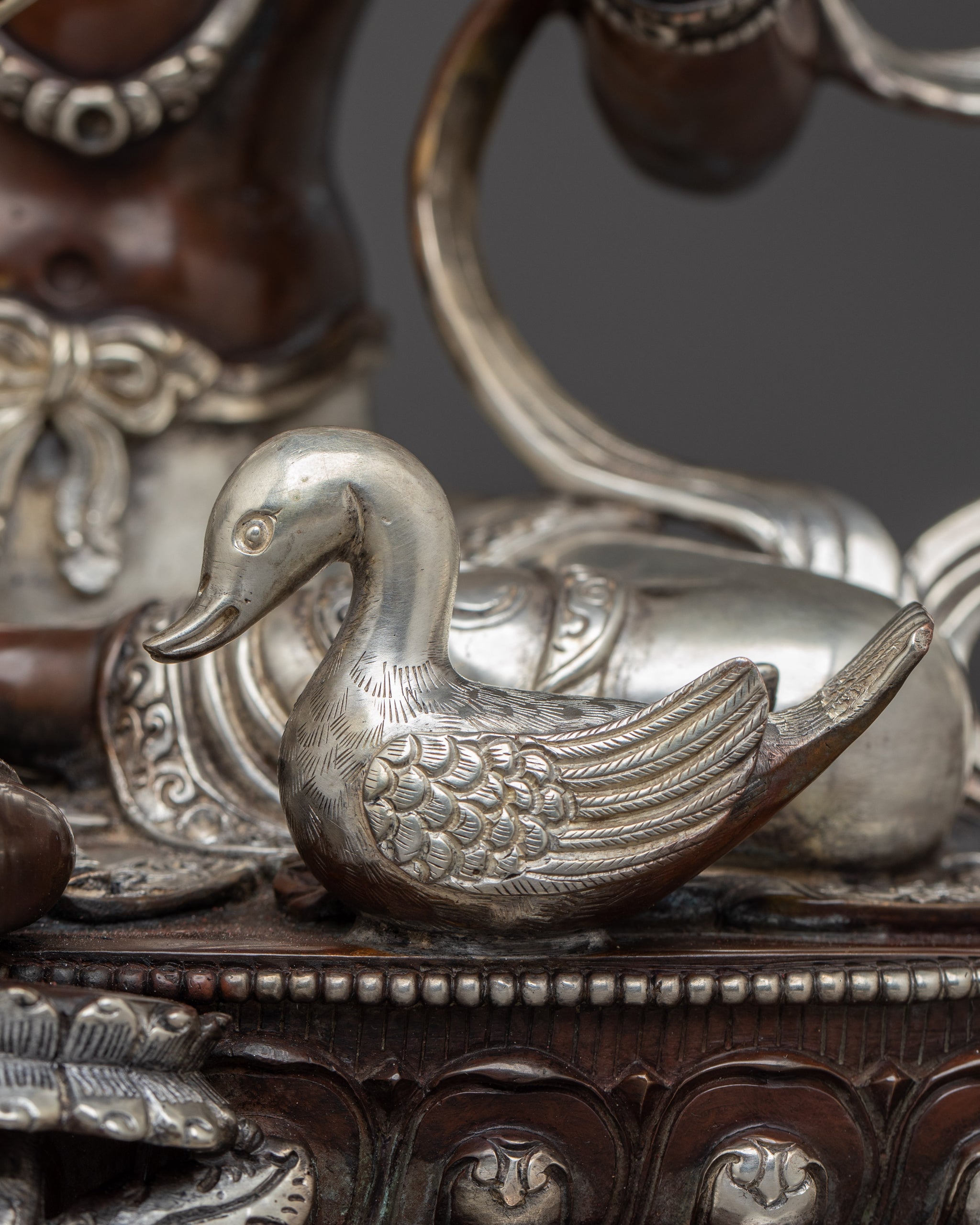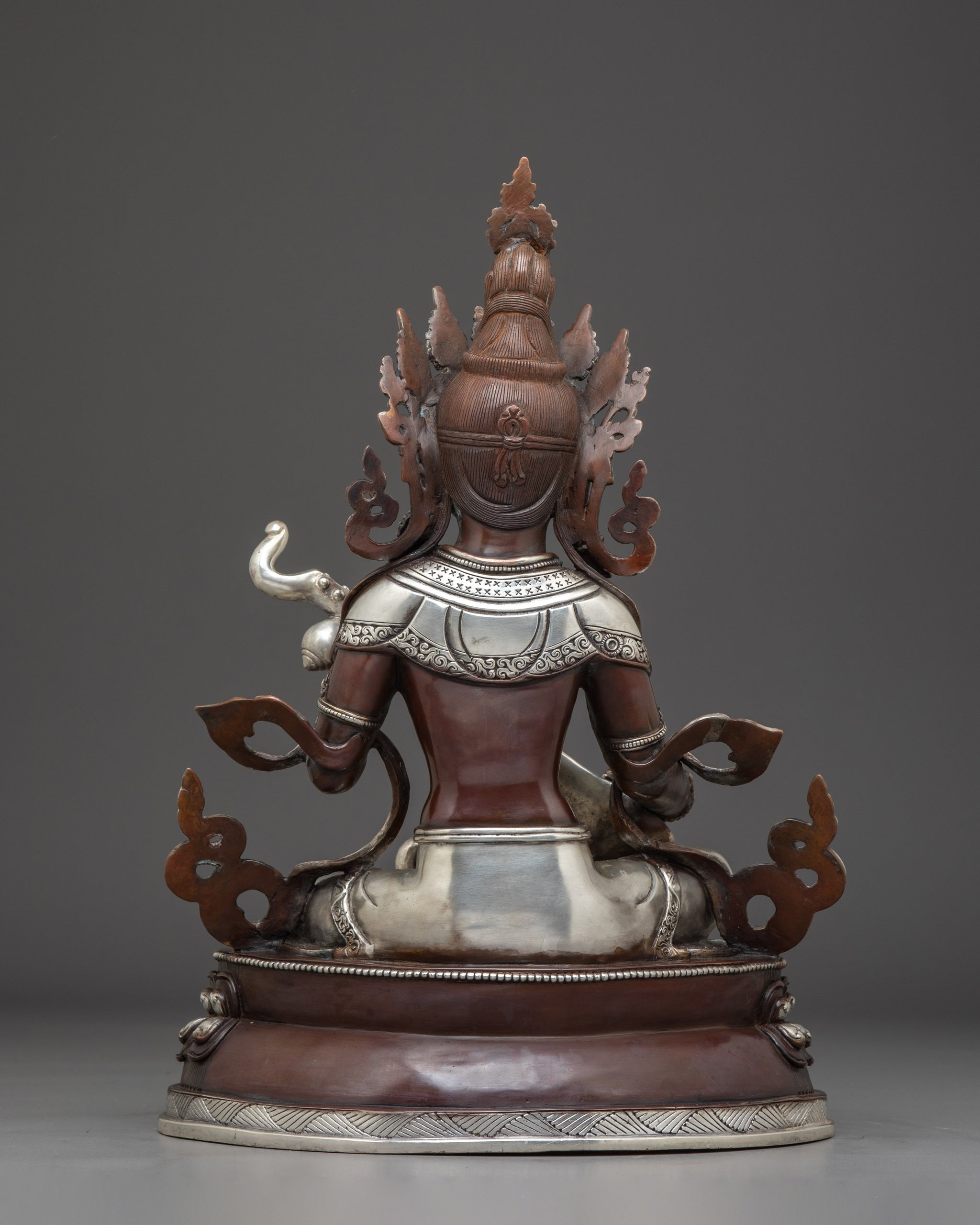 Size: 13.6”/34.5cm (Height) x 9.4”/24cm (Base)Weight: 4.63 kgMaterial: Silver Plated, Oxidized Copper Body