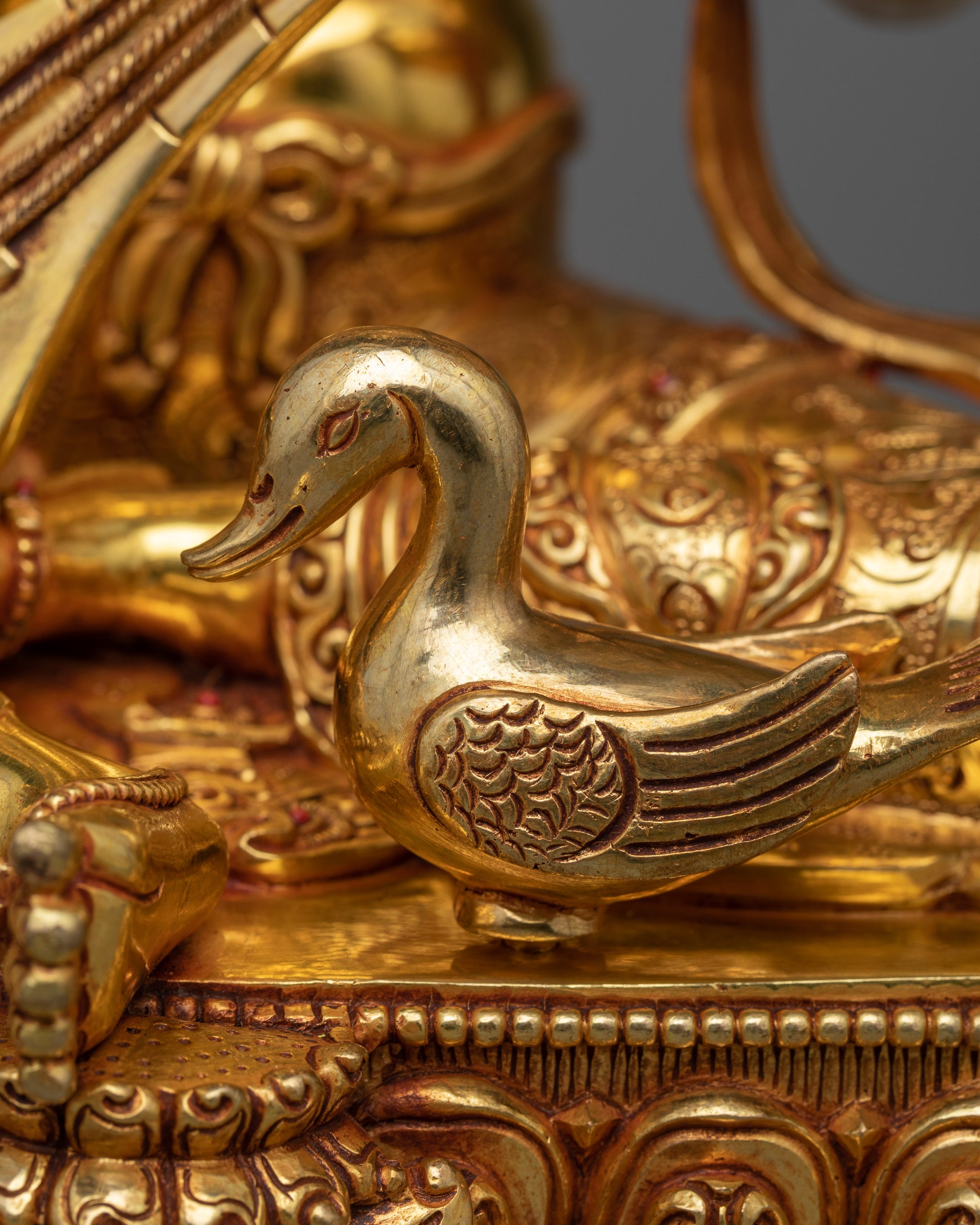 Traditionally handcrafted 24k Gold Gilded Statue of Saraswati Hindu Goddess