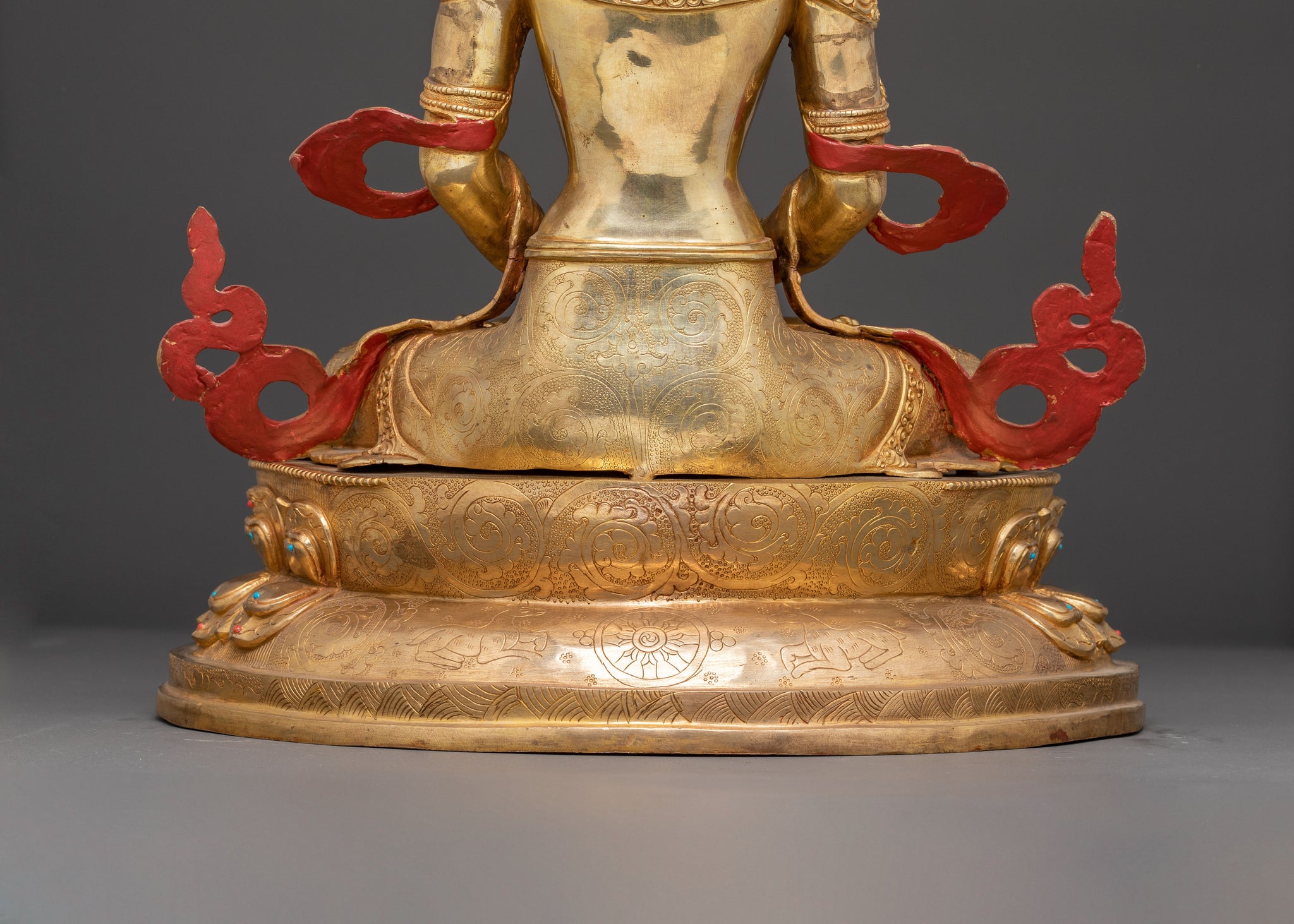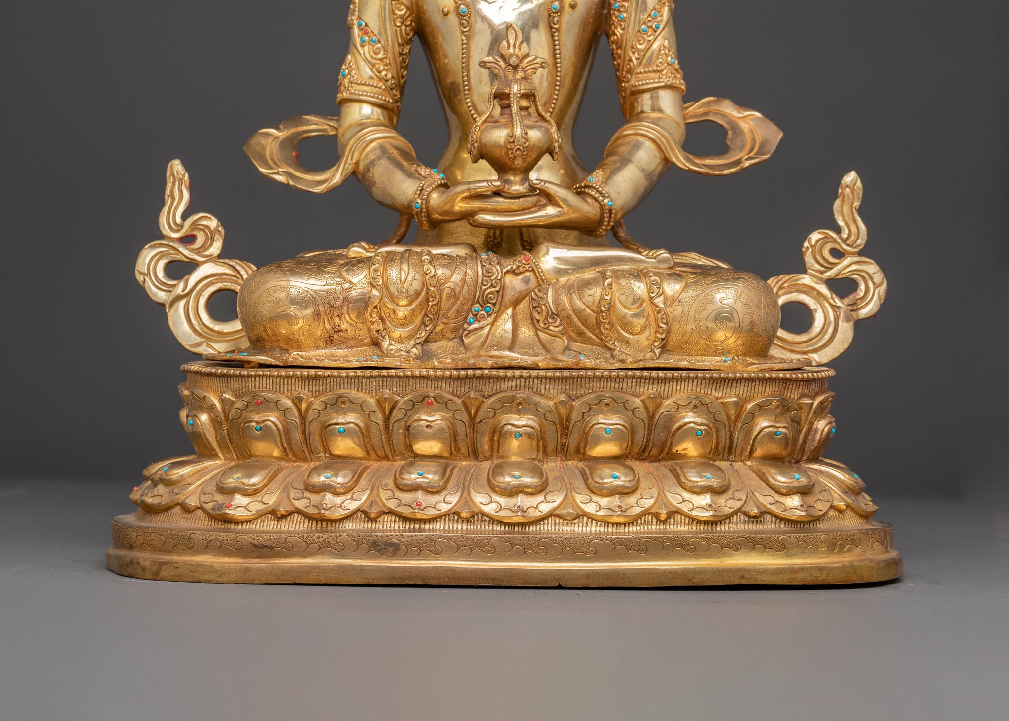 Golden Handcrafted Statue of Longevity Buddha Amitayus | Buddhist Spiritual Decor