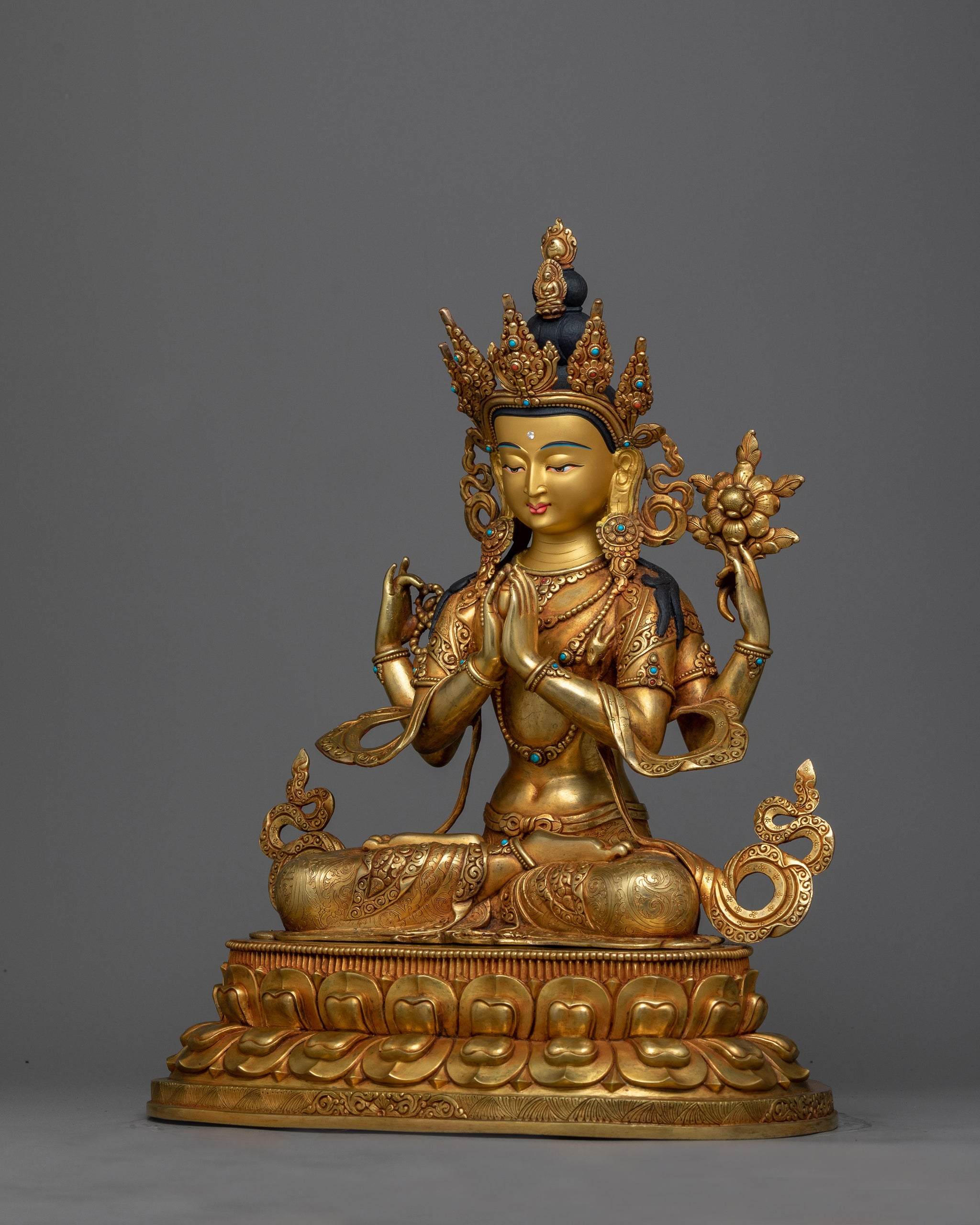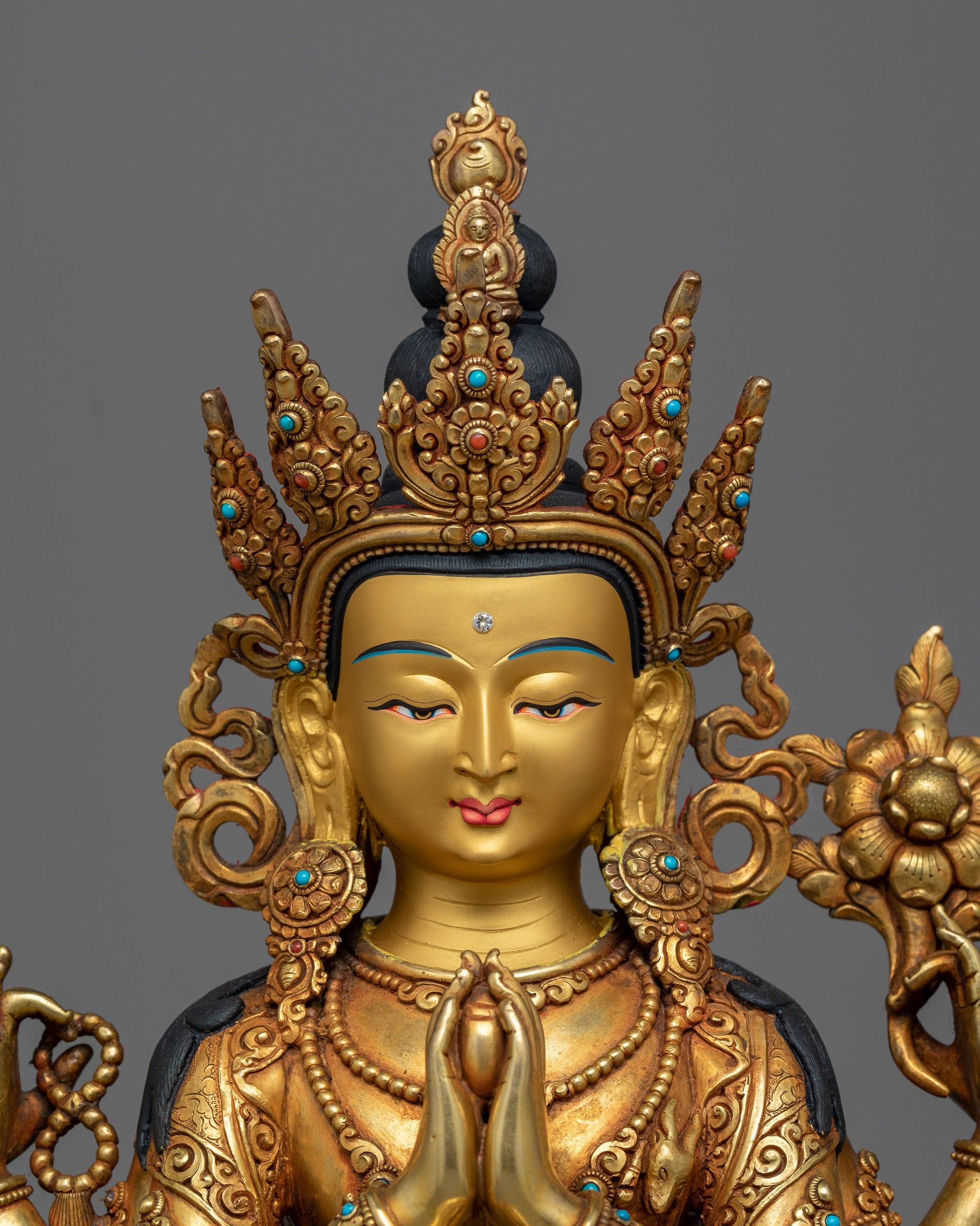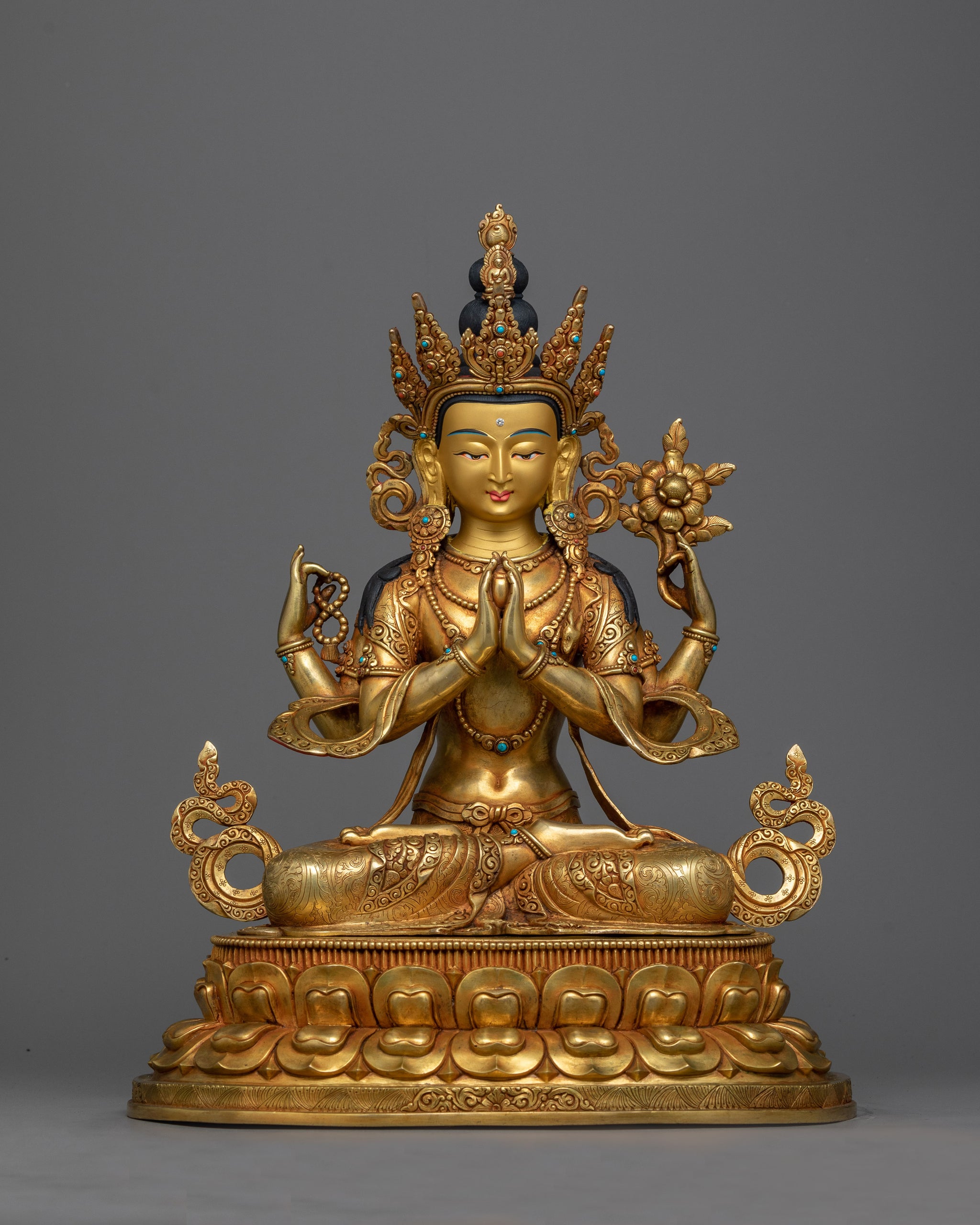 Serene Chenrezig Sculpture | Magnificent Handcrafted Copper Statue