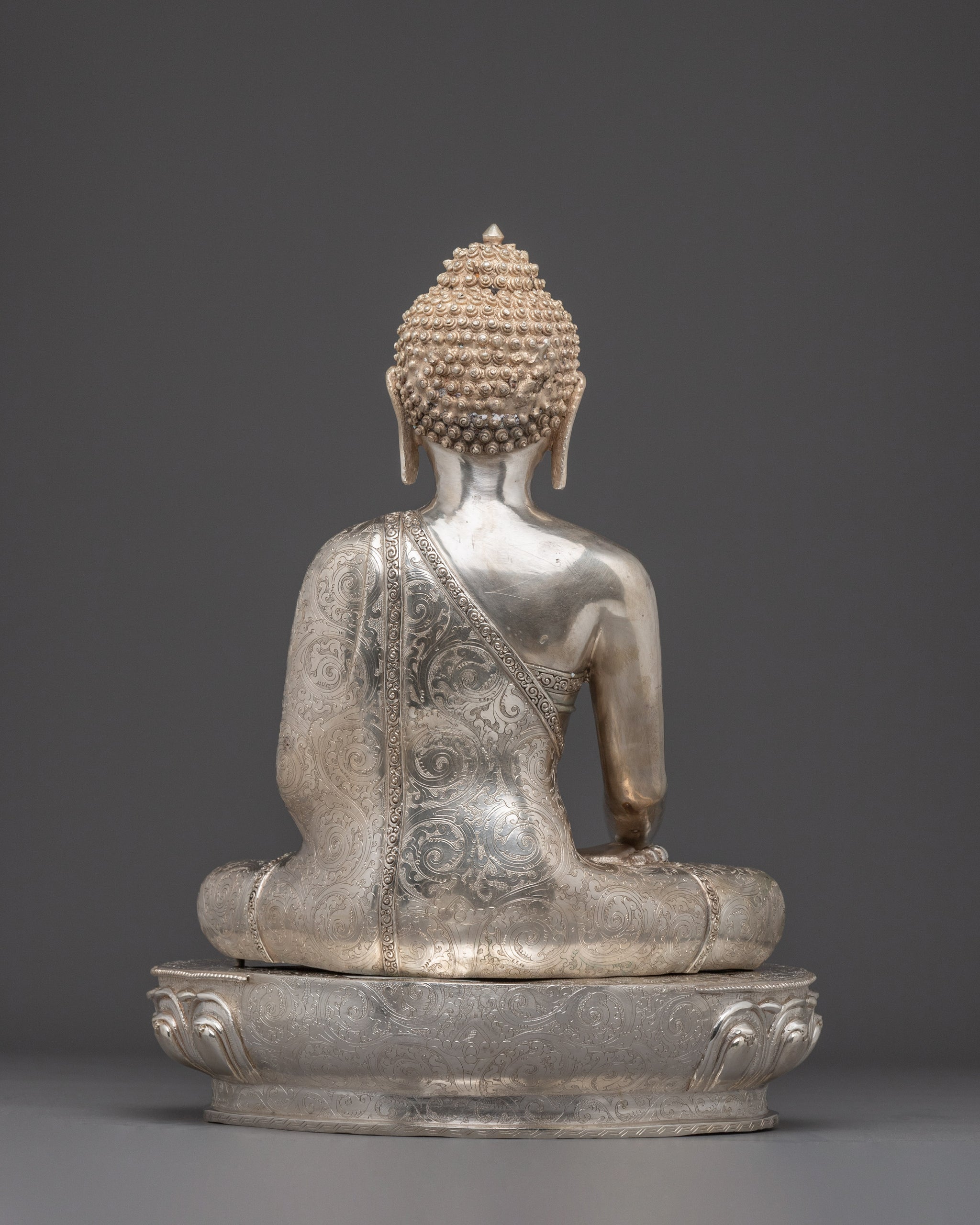 Serene Silver Shakyamuni Buddha Artwork | Enlightenment Symbol